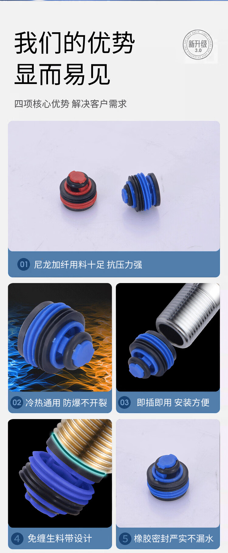Jeonestan红蓝装免生料带止水垫角阀龙头管件拆卸安装自动关闭密封抗压防爆 止水垫配扳手【红蓝各一】