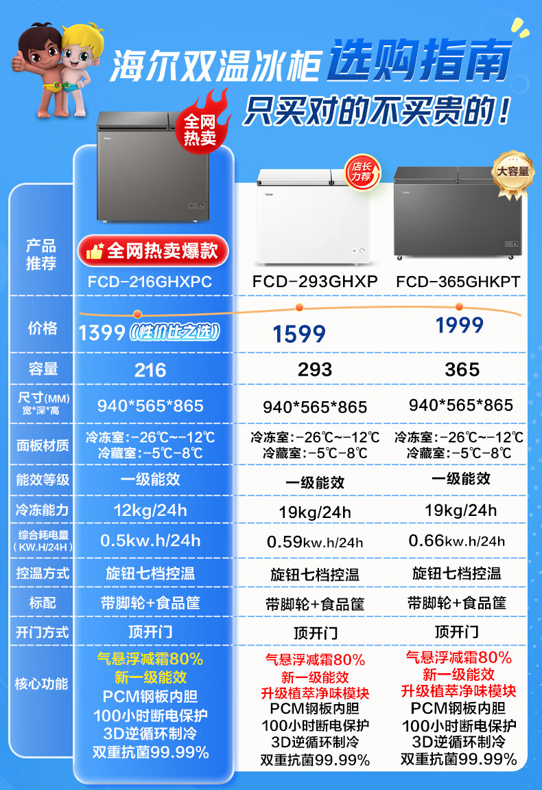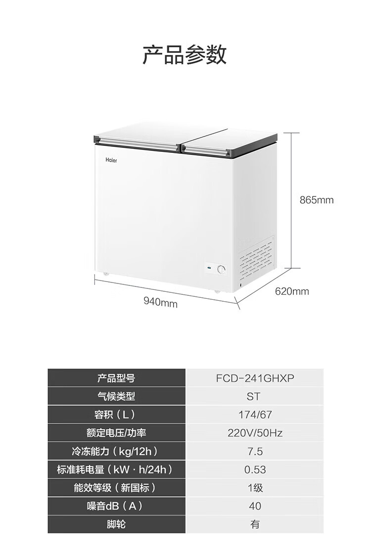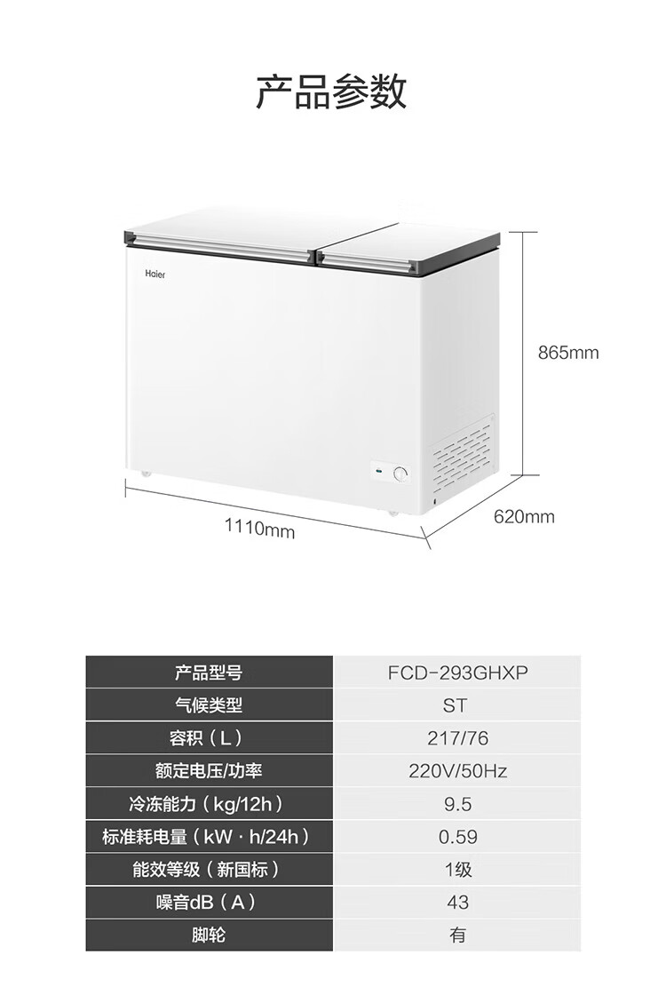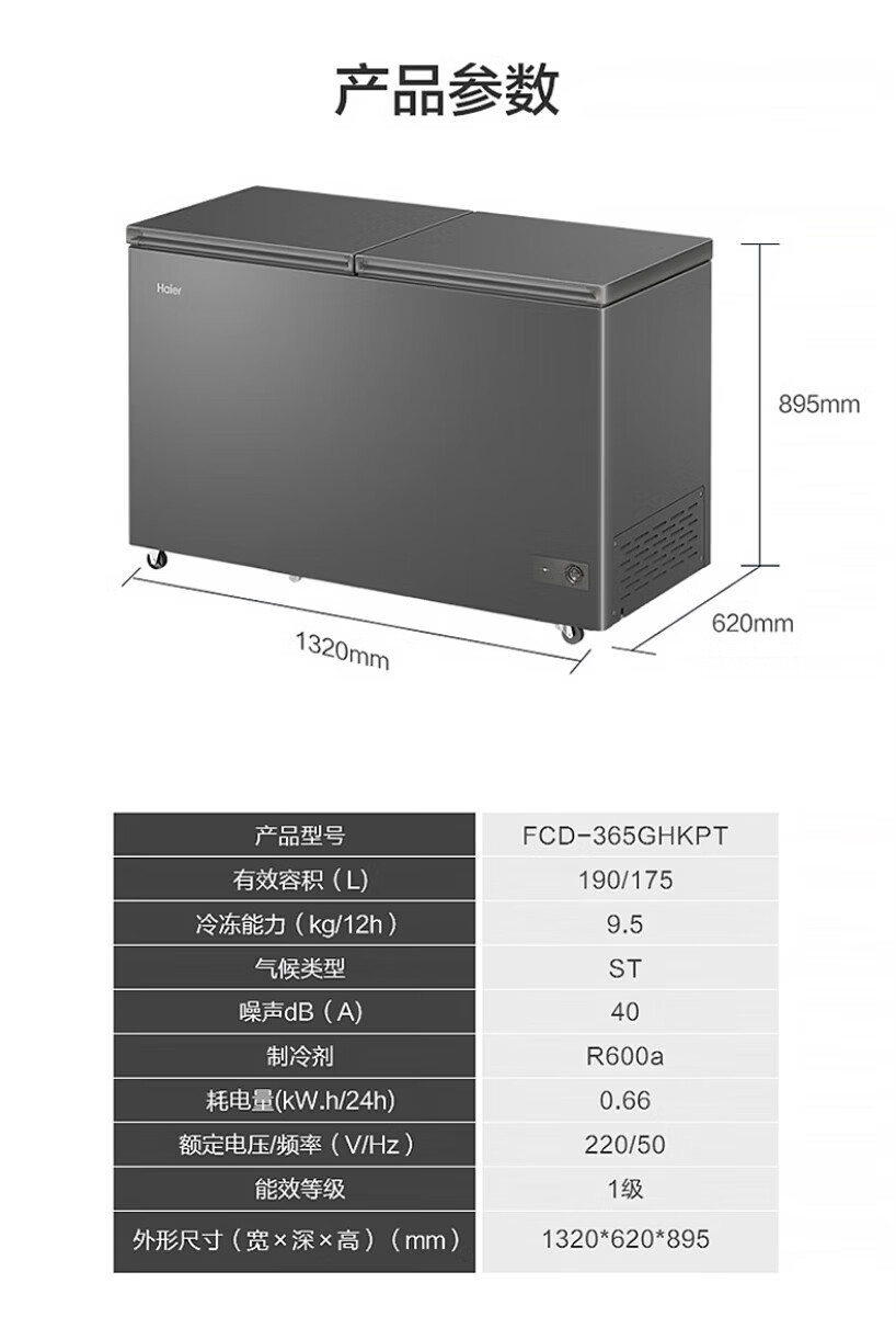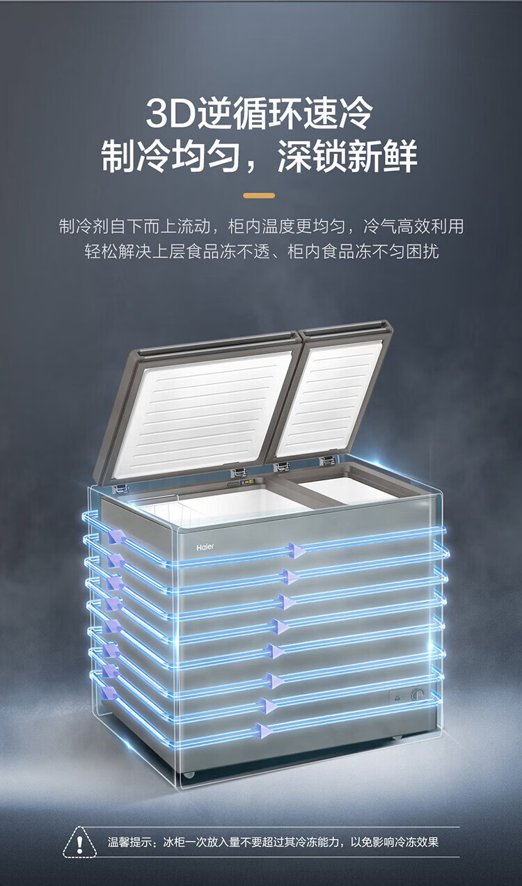 海尔(Haier)双温冰柜家用冰柜商用大容量冷藏冷冻两用冷冻柜一级能效节能卧式双箱冷柜以旧换新 钛金灰|冷冻156升|冷藏60升|一级能效 216L