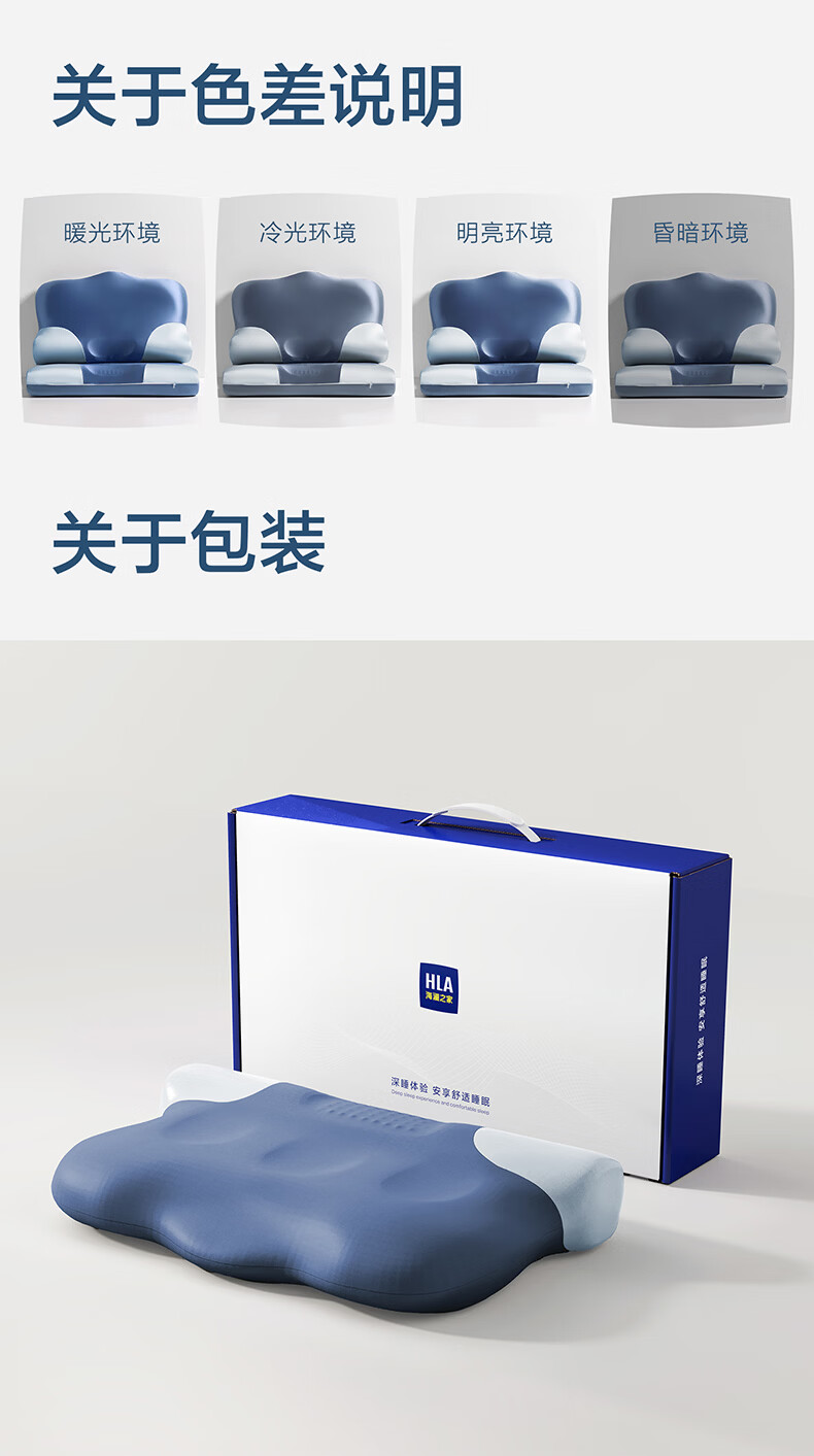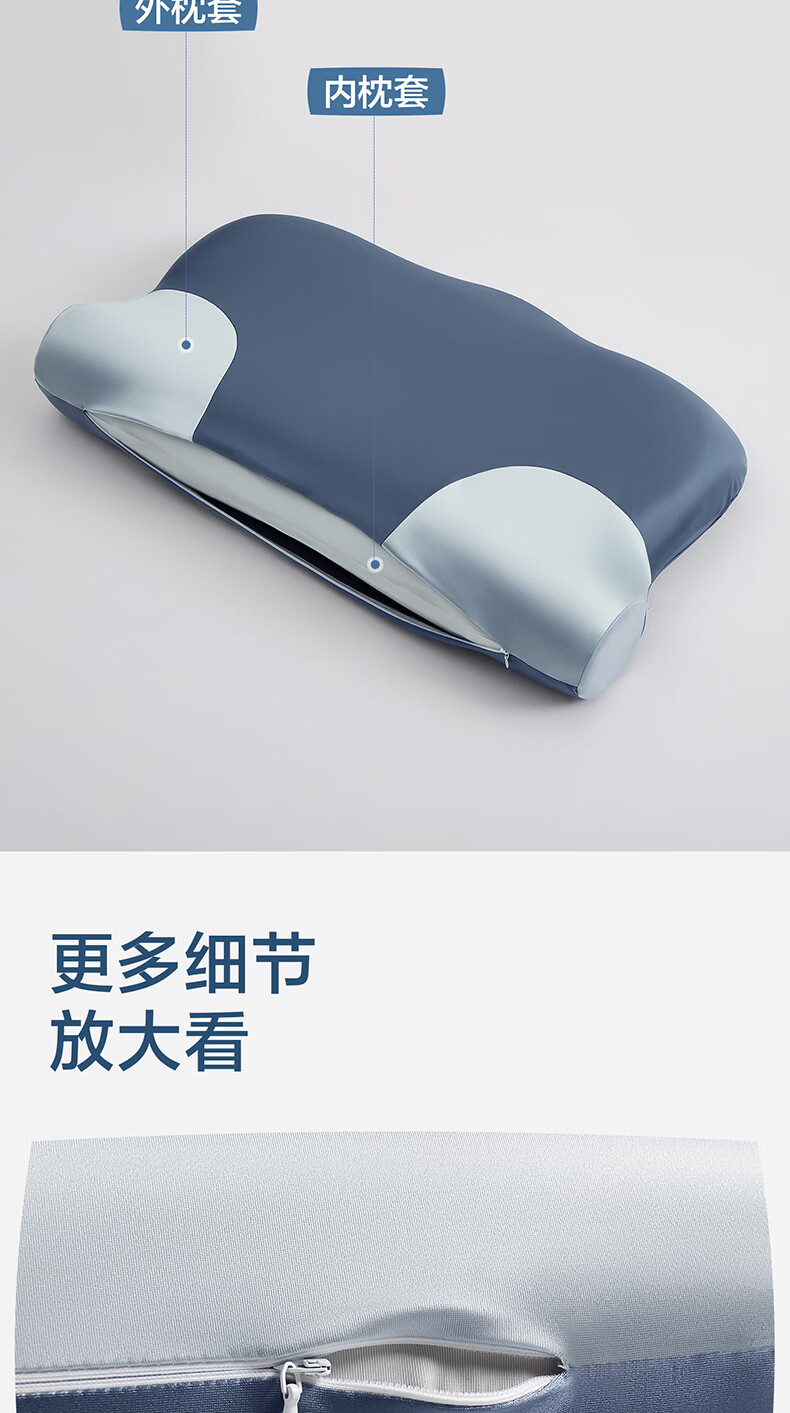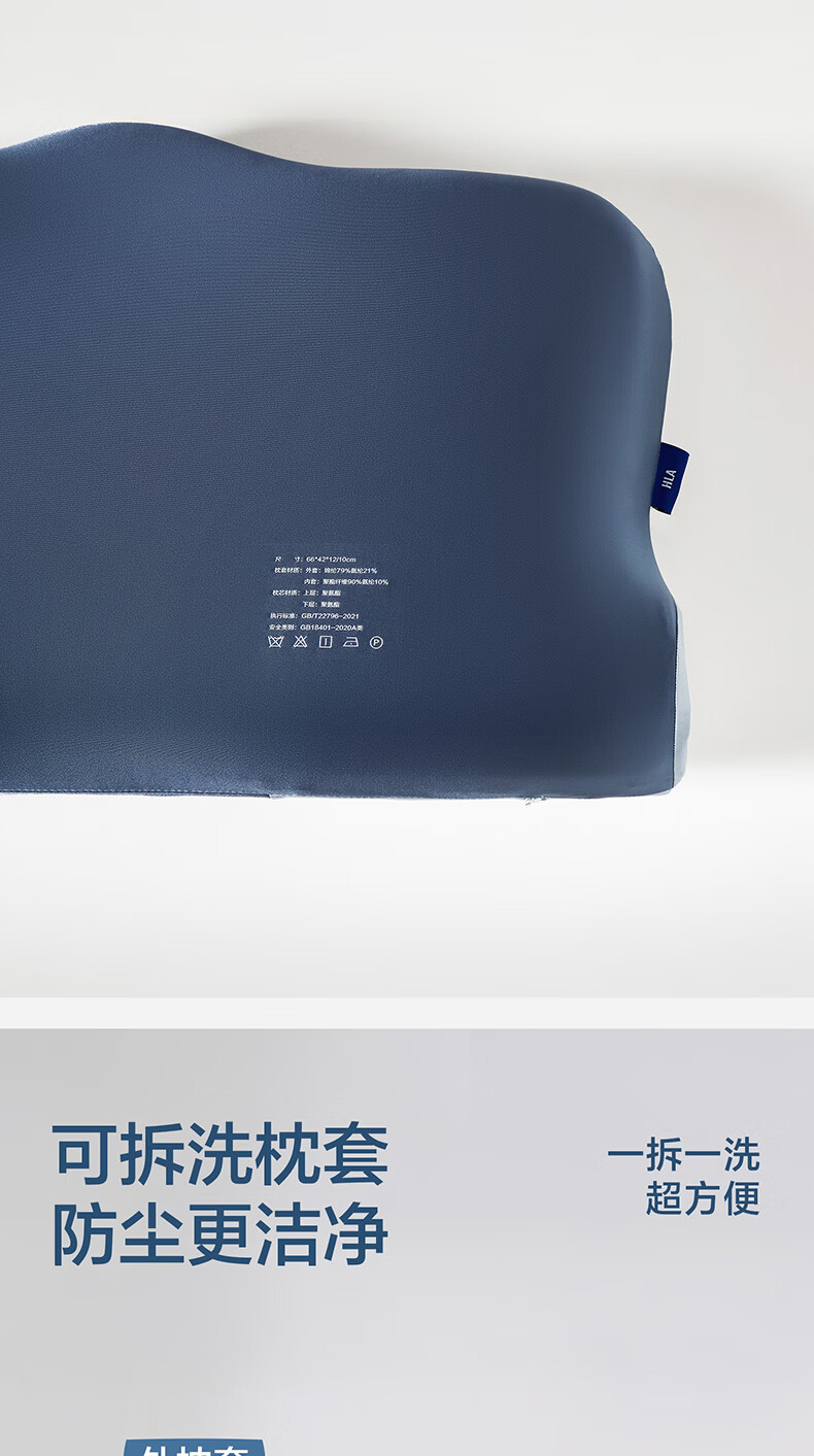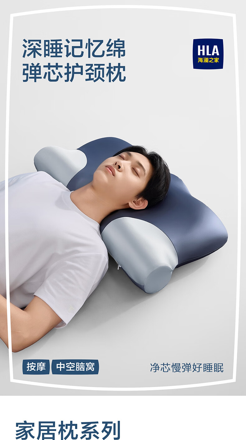 海澜之家(HLA)枕头记忆枕护颈枕颈椎病深度睡眠男士专用反牵引枕成人单一只枕芯 灰屿蓝 【颈部按摩点 轻柔按摩头颈】 66*42【高度约12/10cm】