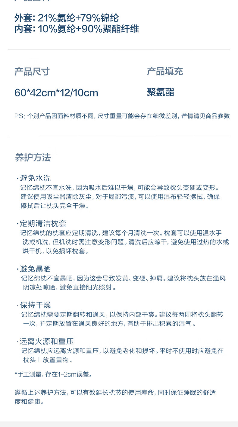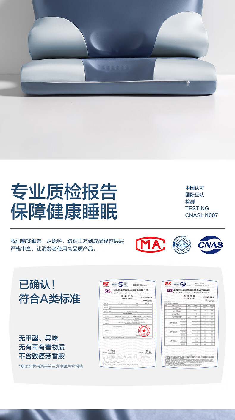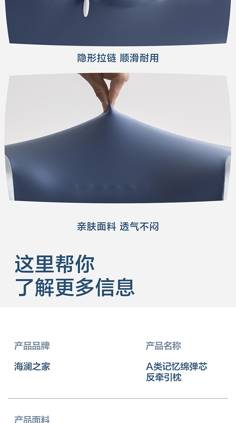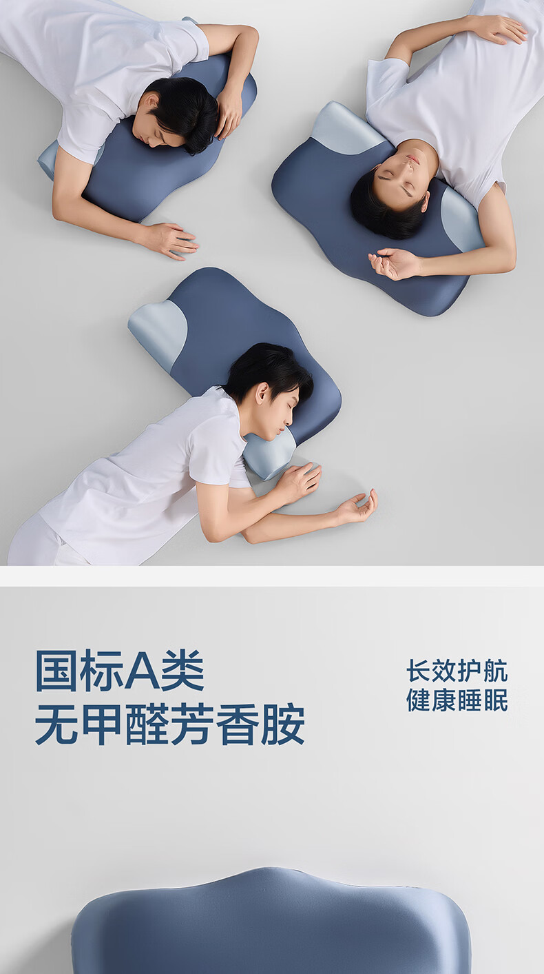 海澜之家(HLA)枕头记忆枕护颈枕颈椎病深度睡眠男士专用反牵引枕成人单一只枕芯 灰屿蓝 【颈部按摩点 轻柔按摩头颈】 66*42【高度约12/10cm】