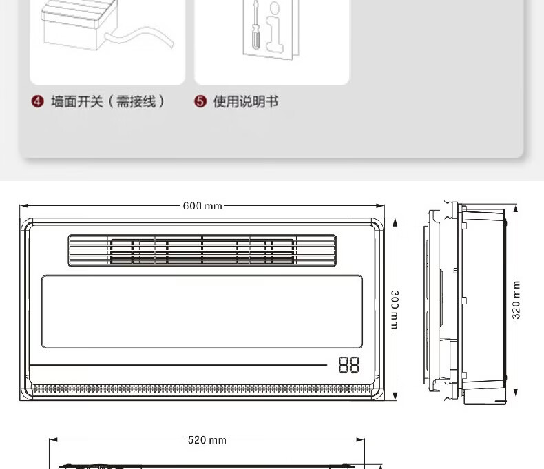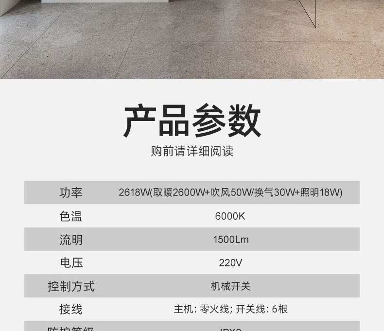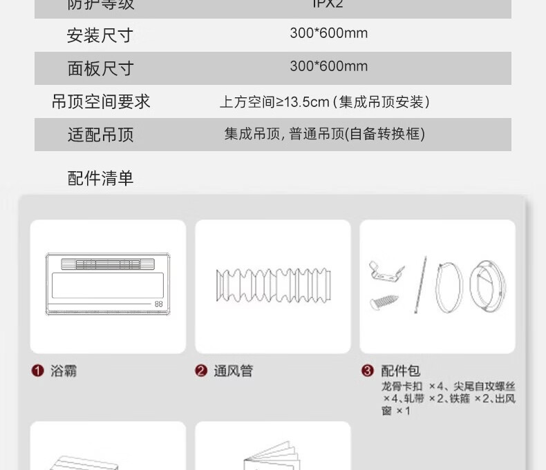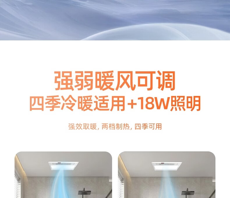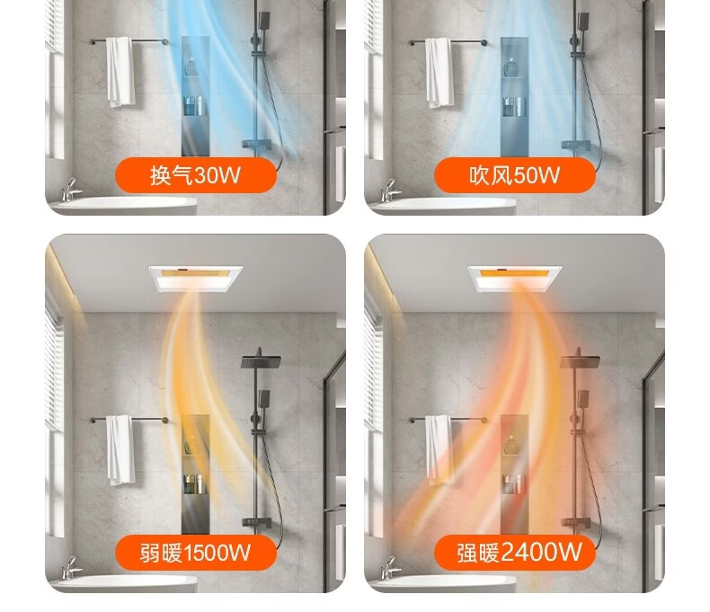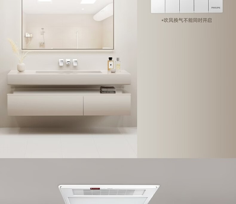 飞利浦B51集成吊顶灯照明吹风风暖排气五合一300x600mm铝扣浴霸灯 B51浴霸2600W【五合一+双核】