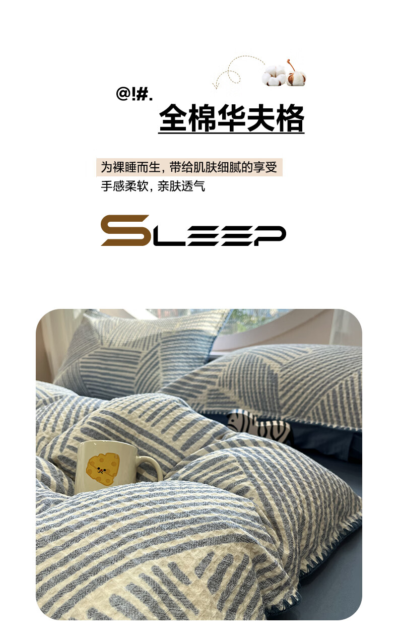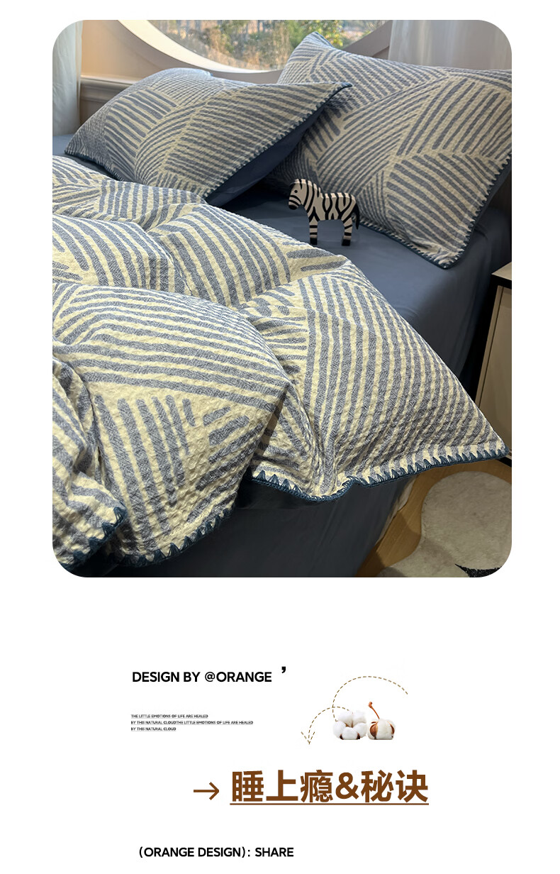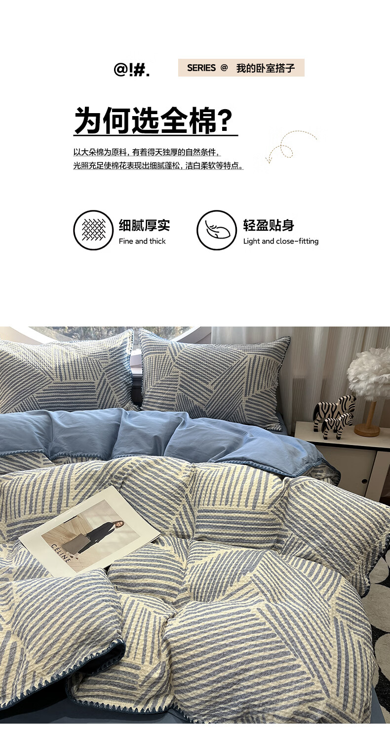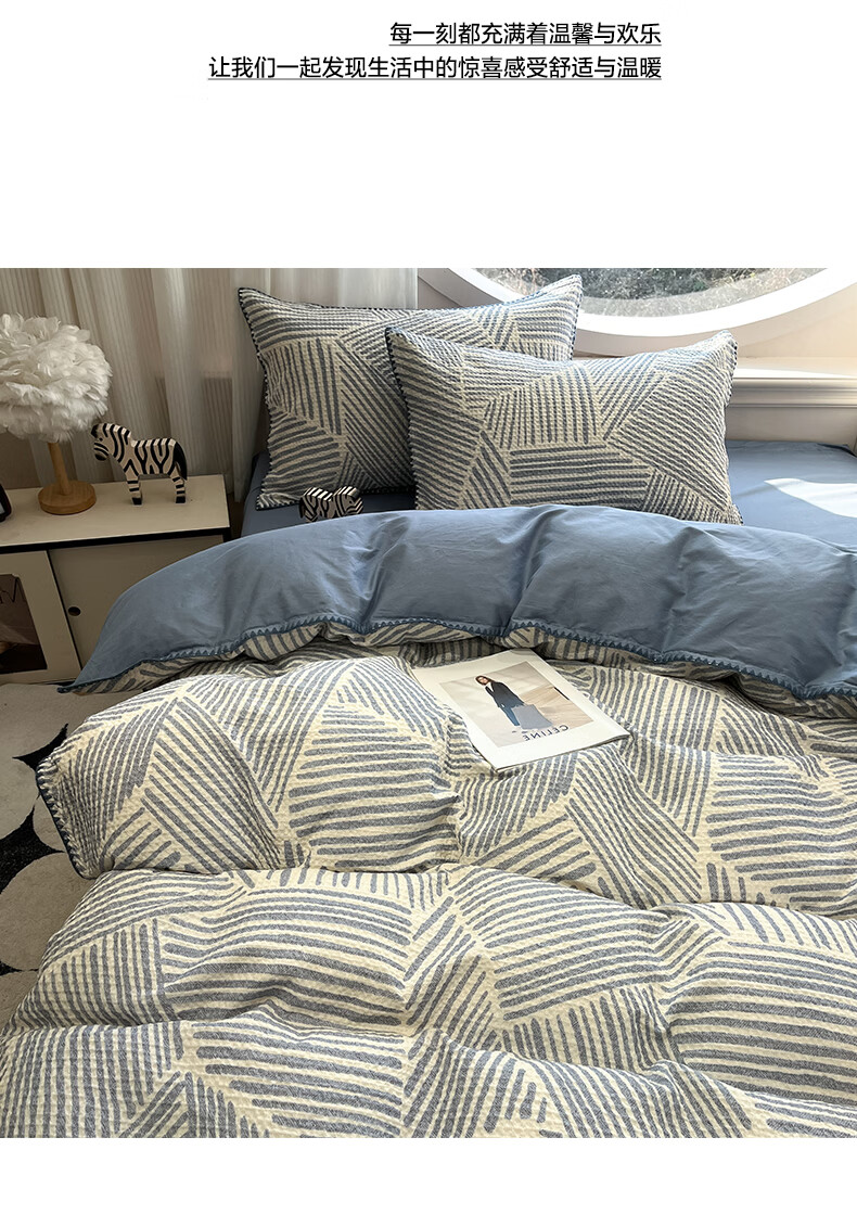 无印良品全棉华夫格四件套纯棉床单被套裸睡床笠款宿舍单人三件套床上用品 流光-蓝 【A类全棉面料 可裸睡】 1.8m 床单款 四件套-被套200x230cm