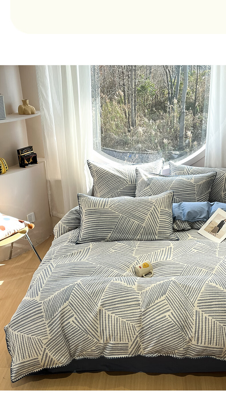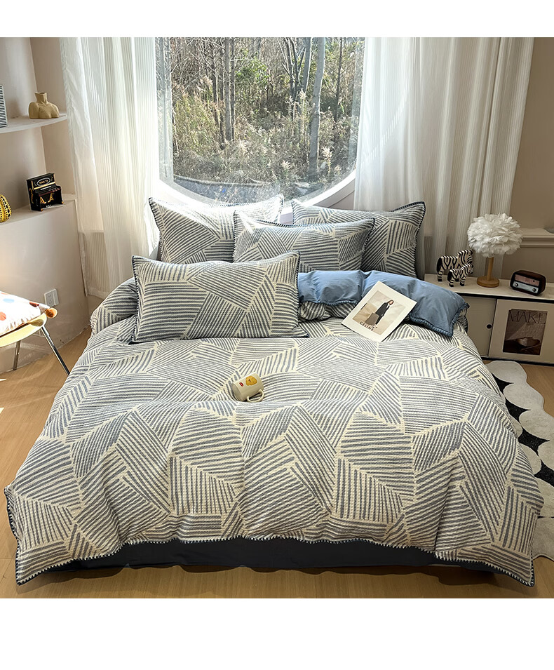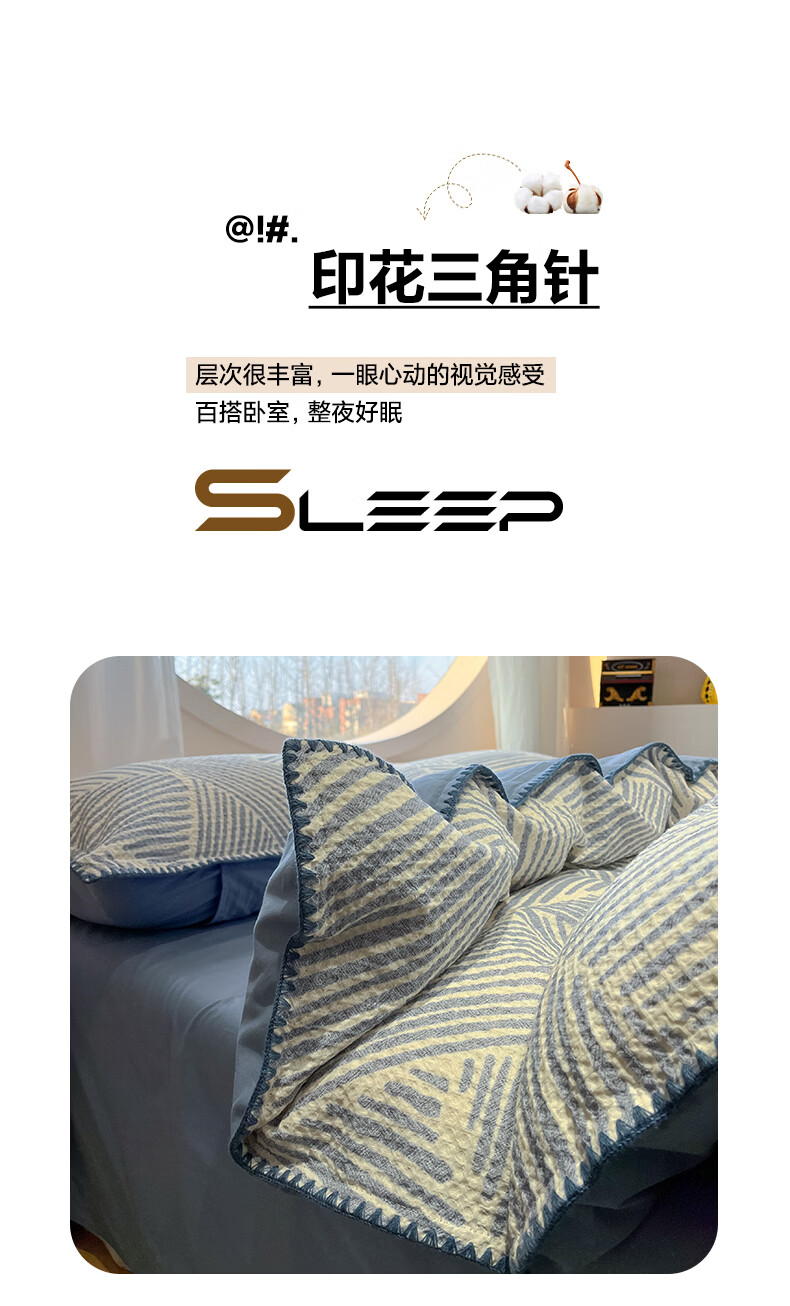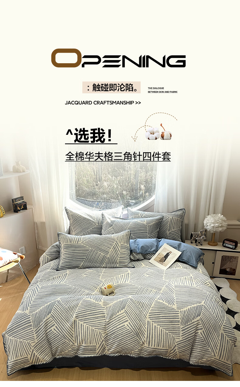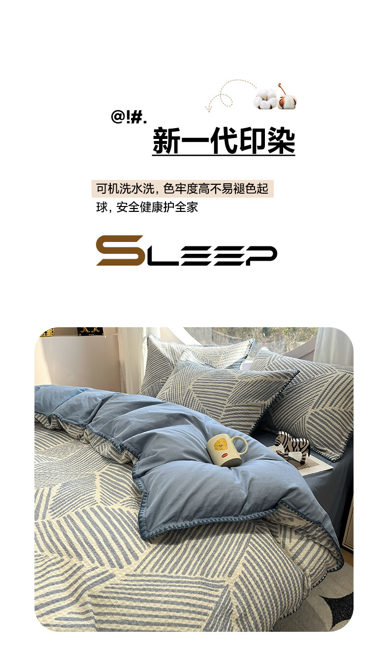 无印良品全棉华夫格四件套纯棉床单被套裸睡床笠款宿舍单人三件套床上用品 流光-蓝 【A类全棉面料 可裸睡】 1.8m 床单款 四件套-被套200x230cm
