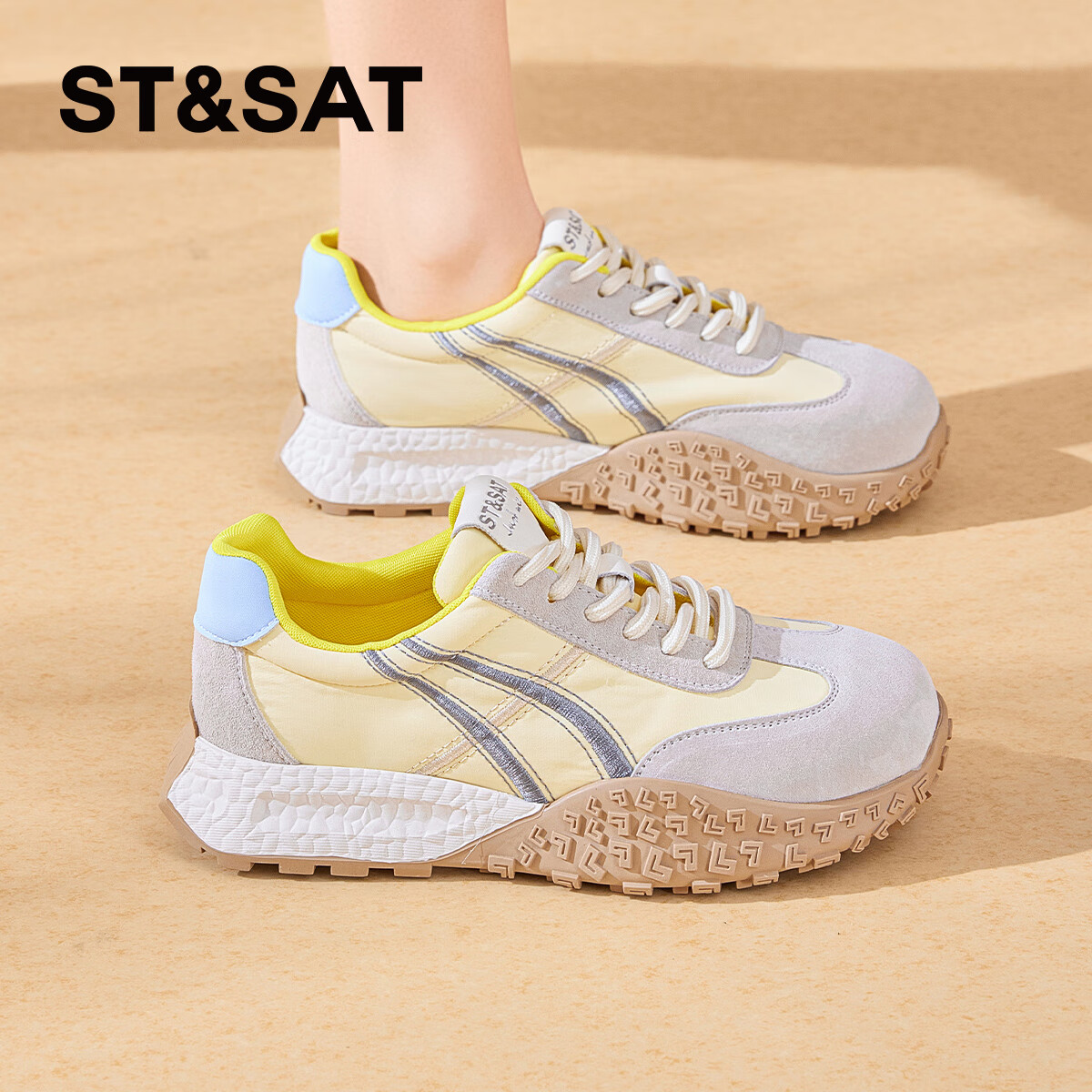 星期六爆款厚底阿甘鞋女款2025秋冬季新款复古德训鞋运动跑步休闲鞋 黄蓝色 37