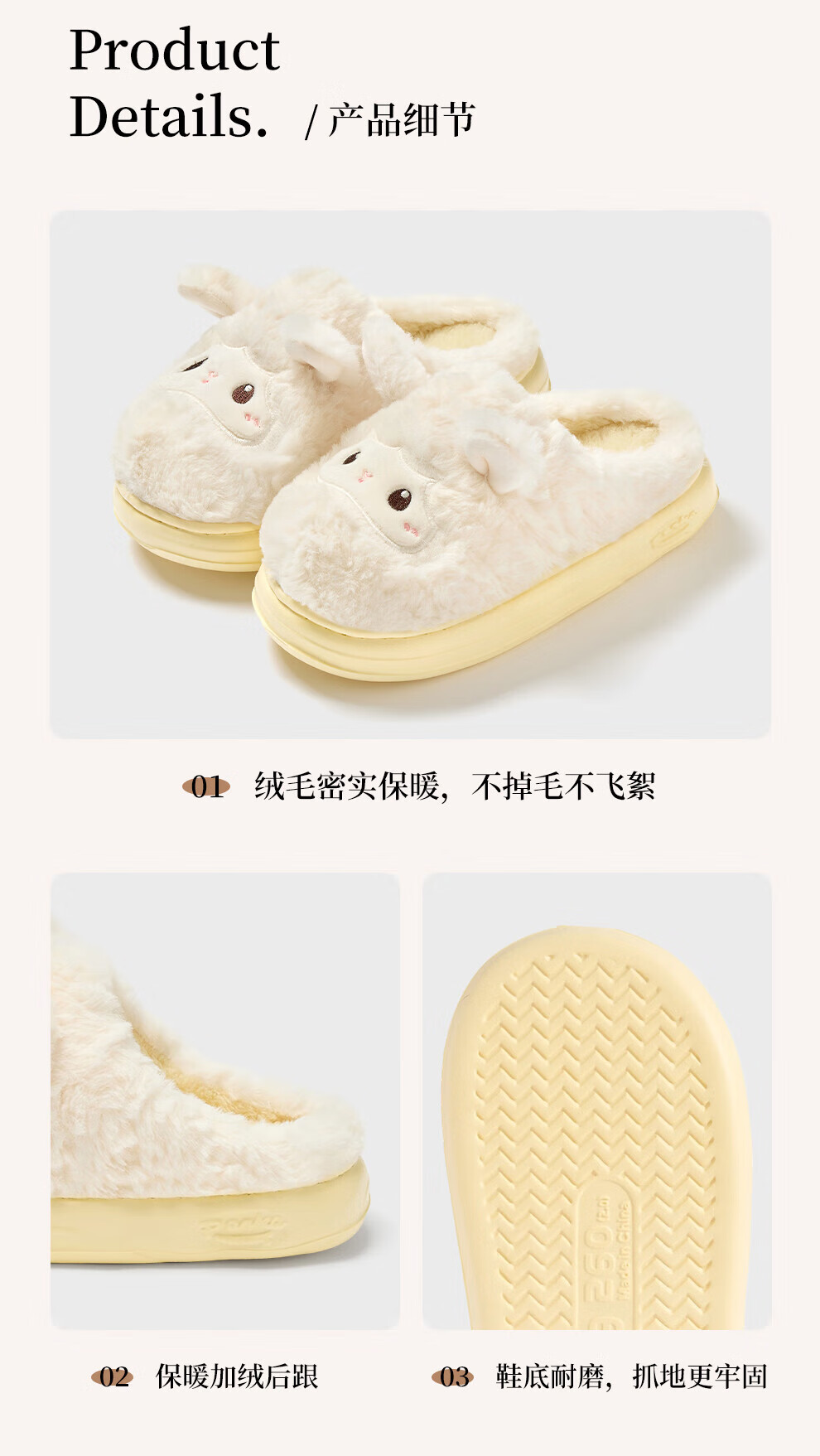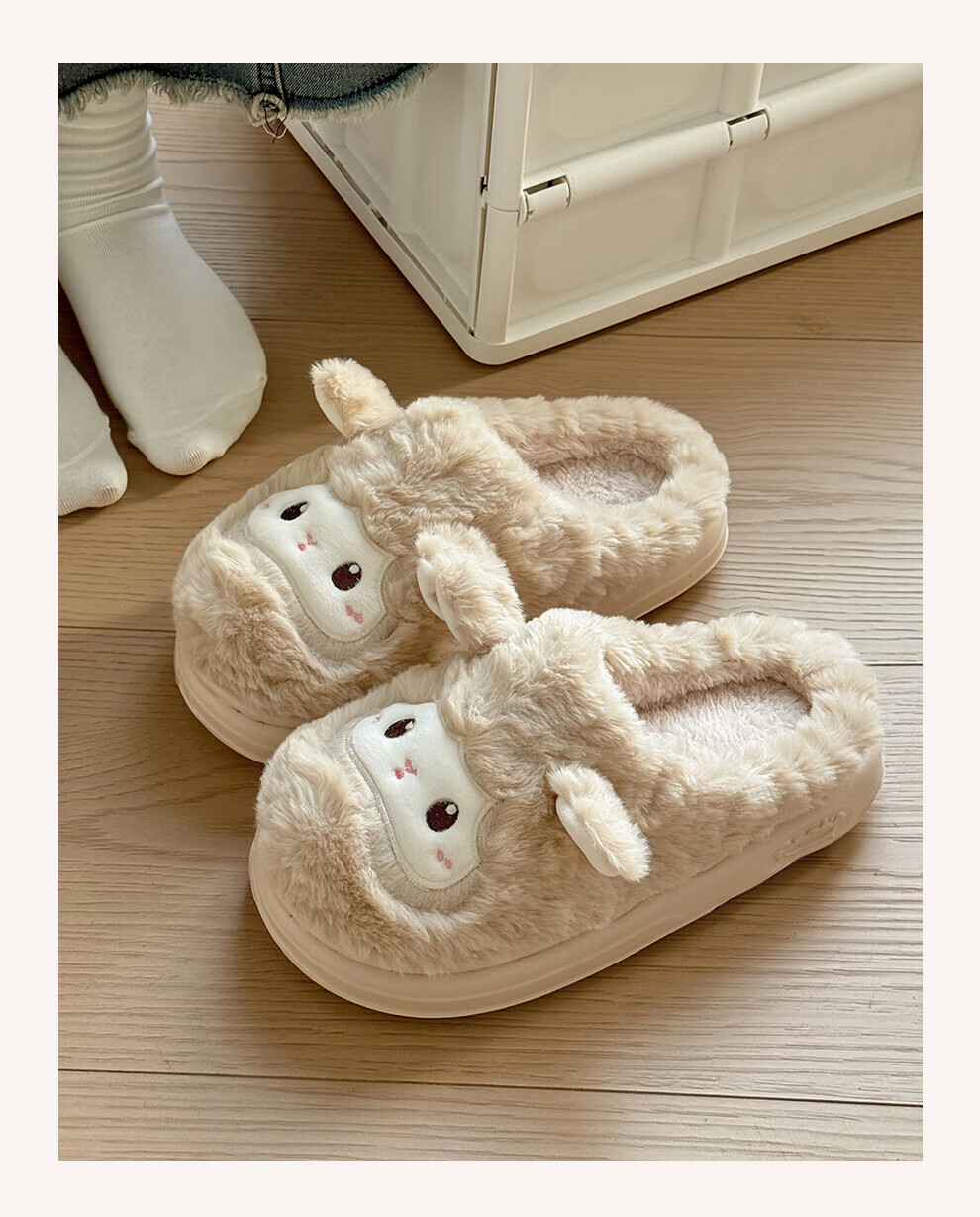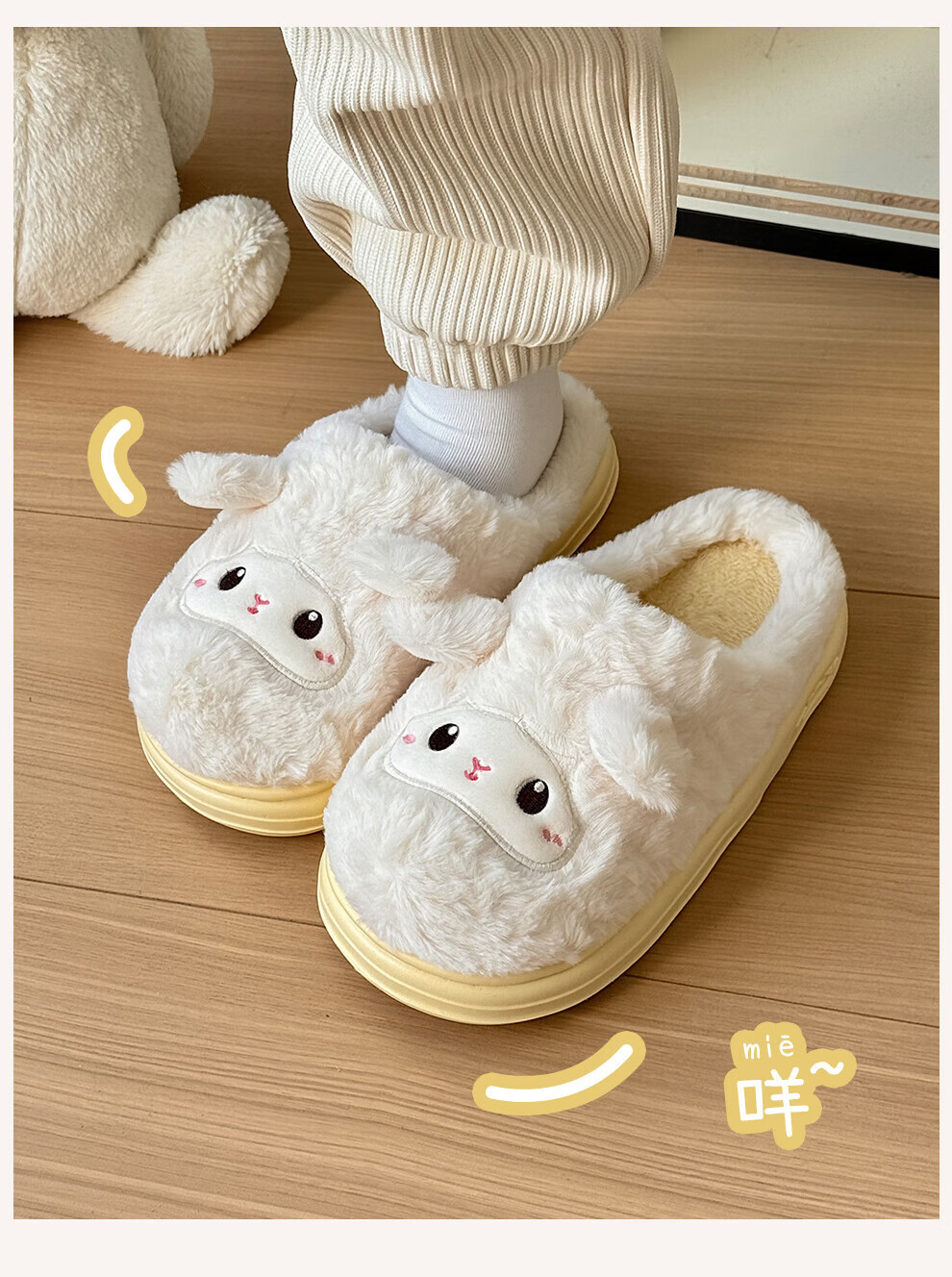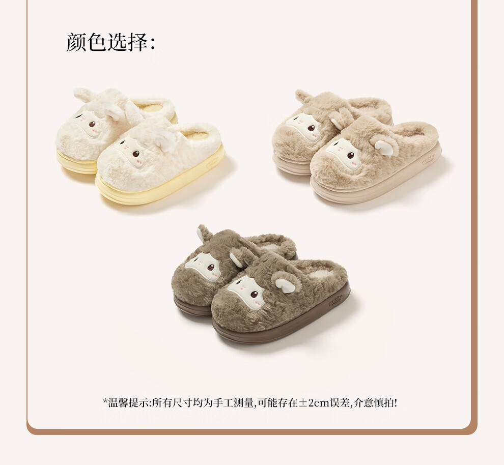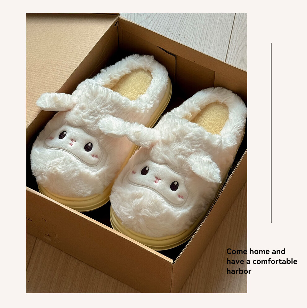 FZT可爱棉拖鞋女款冬季2025新款居家厚底毛绒绒防滑卡通小羊保暖棉拖 奶黄 36-37 标准码