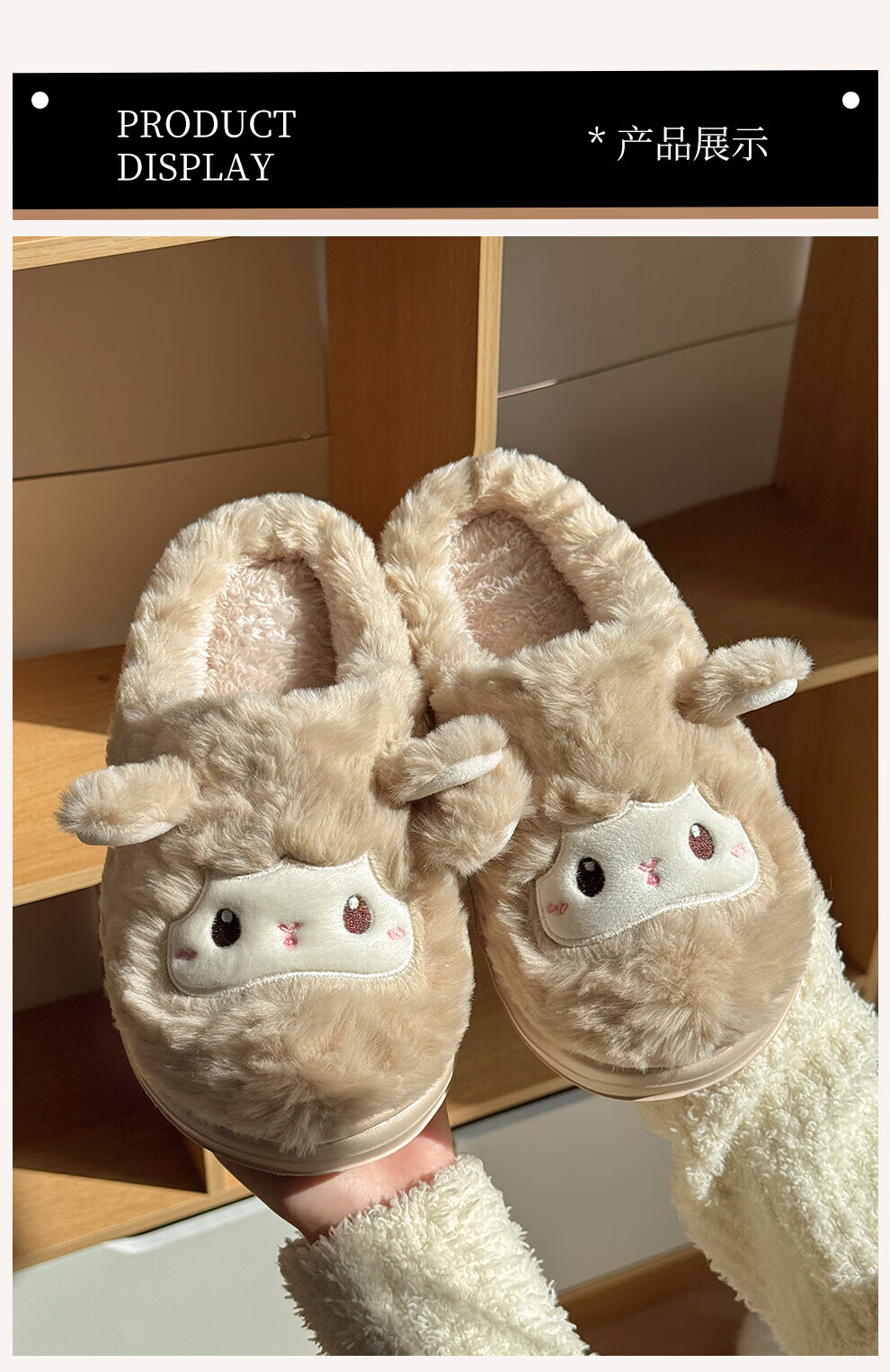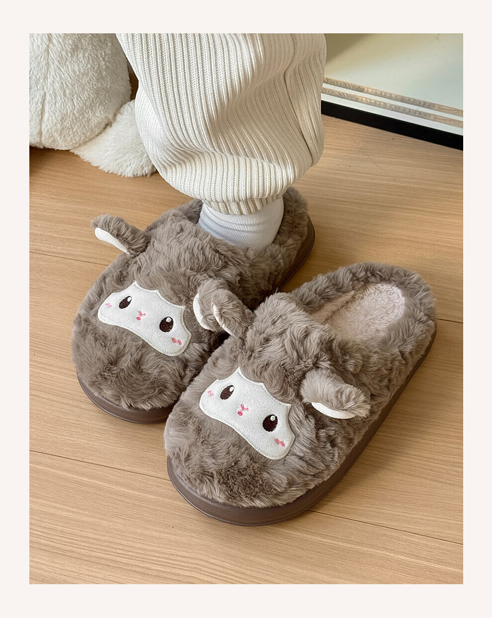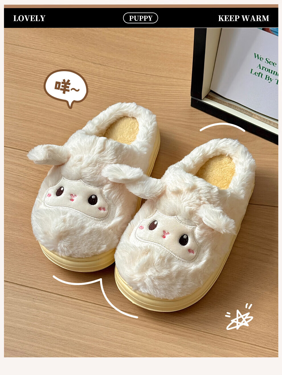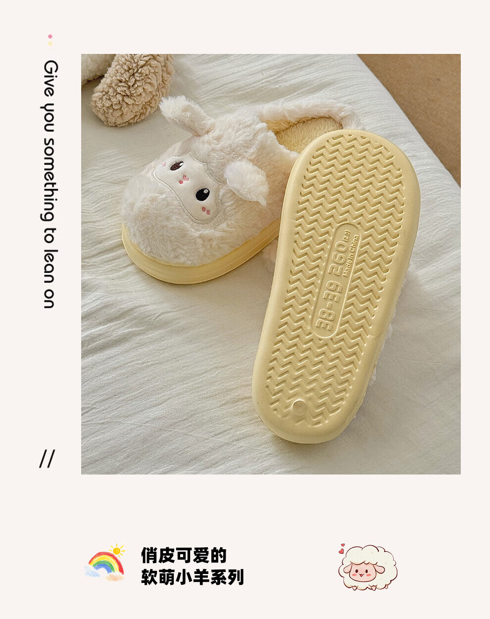 FZT可爱棉拖鞋女款冬季2025新款居家厚底毛绒绒防滑卡通小羊保暖棉拖 奶黄 36-37 标准码