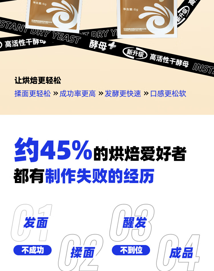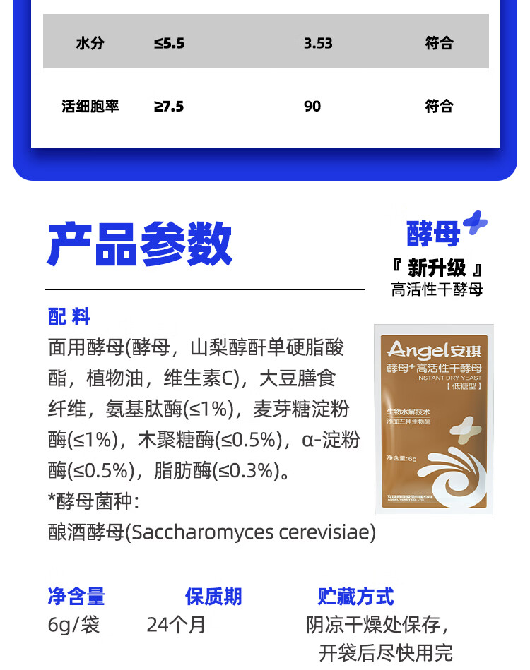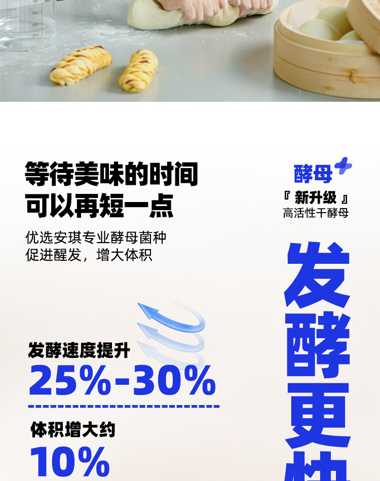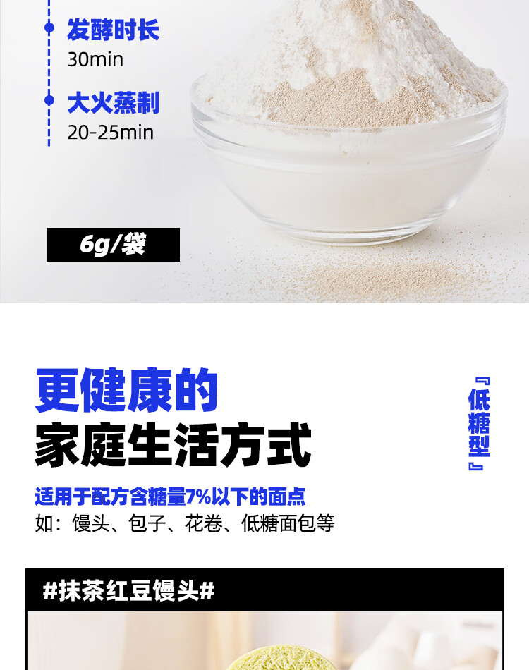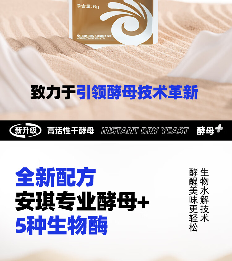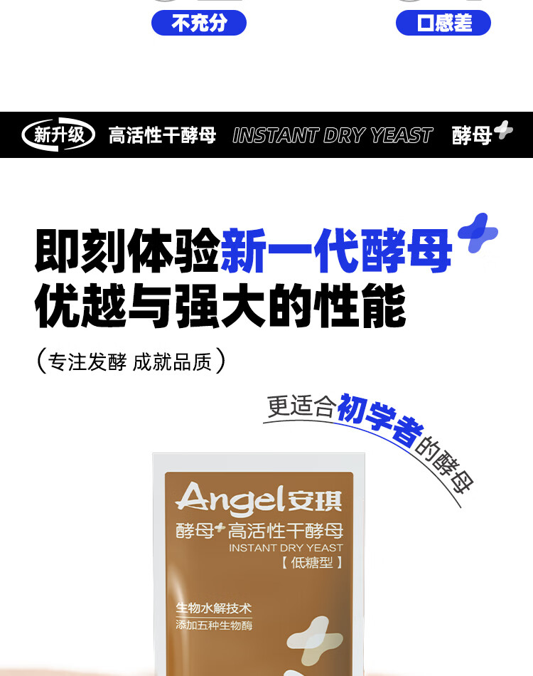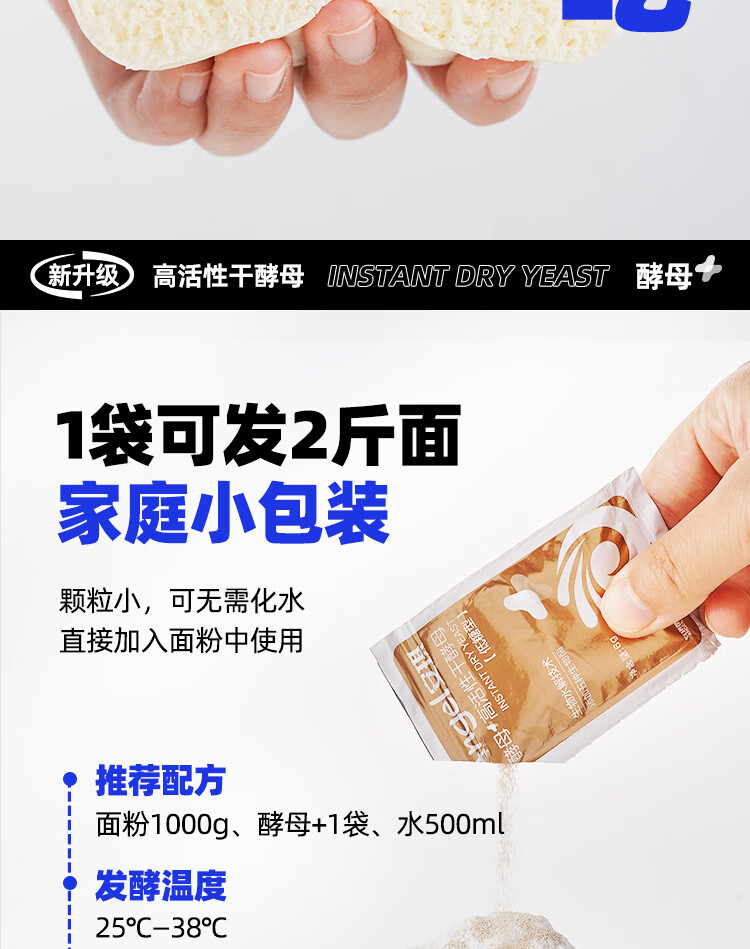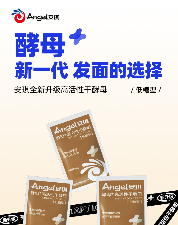 安琪(Angel)新一代酵母 低糖型高活性干酵母粉发面家用做包子馒头专用发酵粉 【袋装】6g*8袋+面粉450g