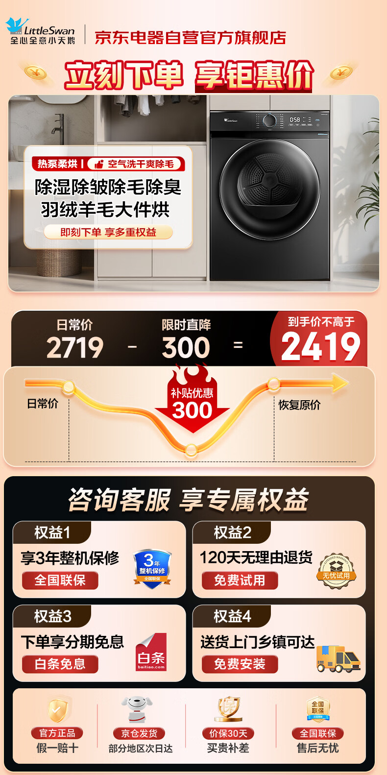 小天鹅(LittleSwan)10KG热泵烘干机家用大容量干衣机 AI正反转超薄节能省电祛味除潮家电以旧换新TH100-HL02T