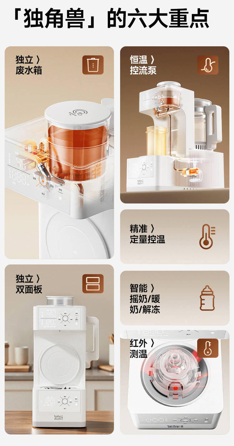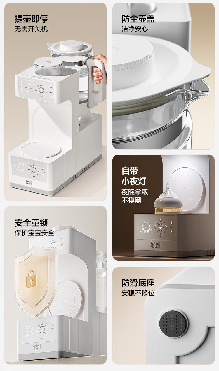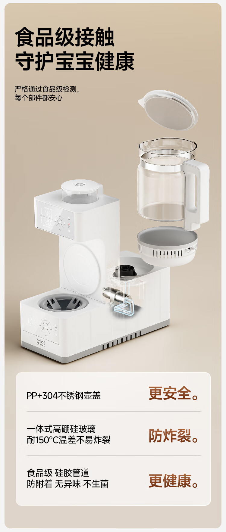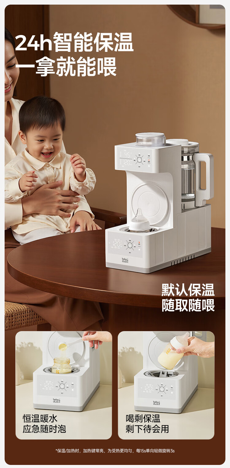 boboduck大嘴鸭全玻璃恒温壶 定量泡奶机三合一泡奶摇奶一体机多功能喂养台 6296