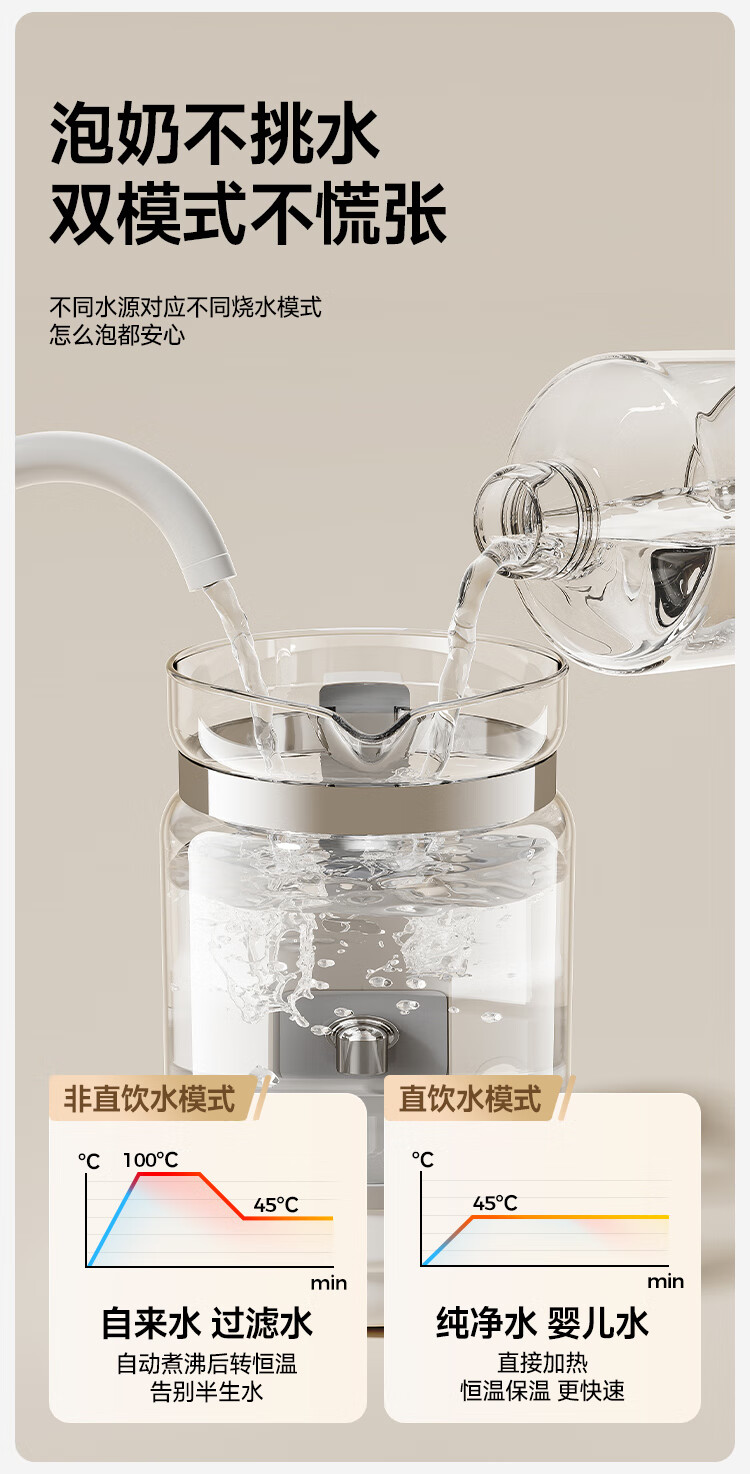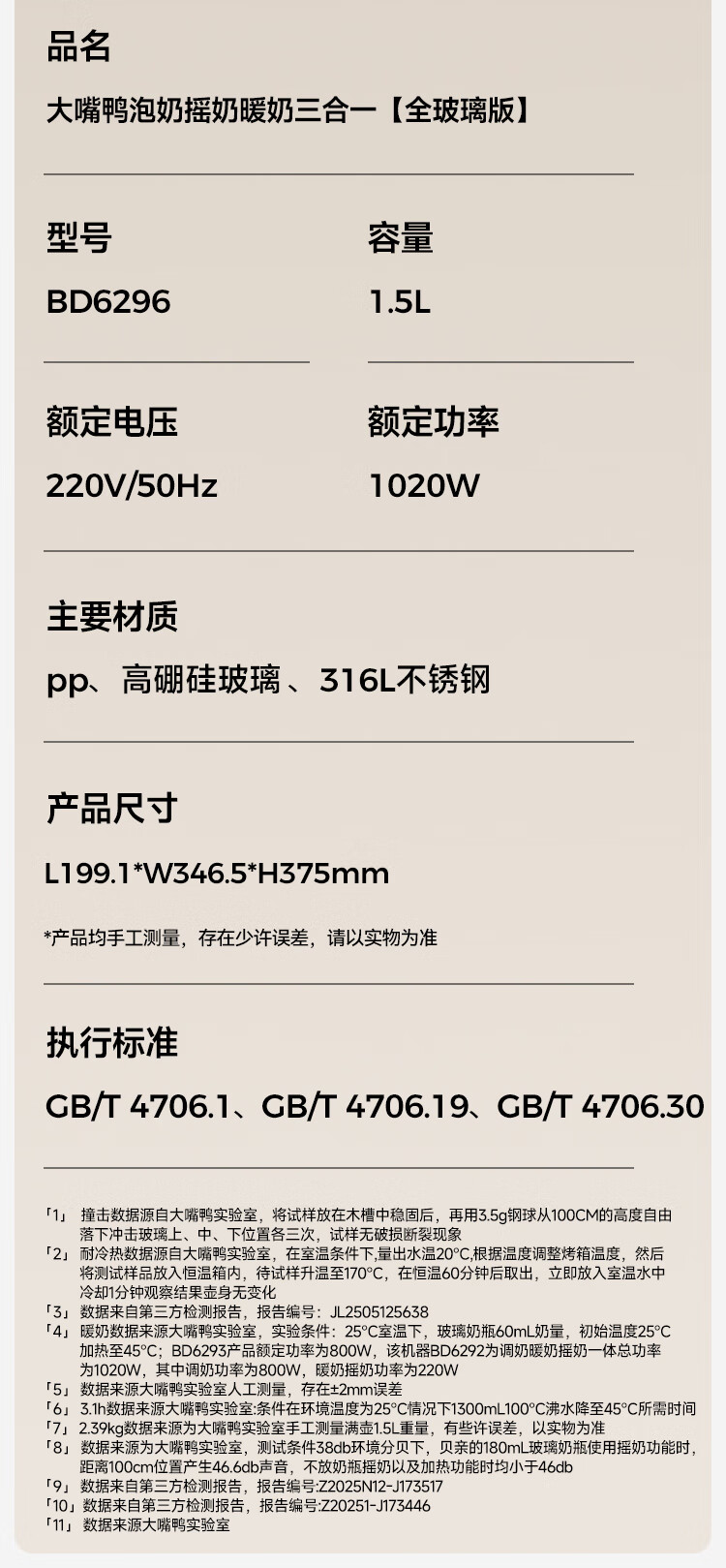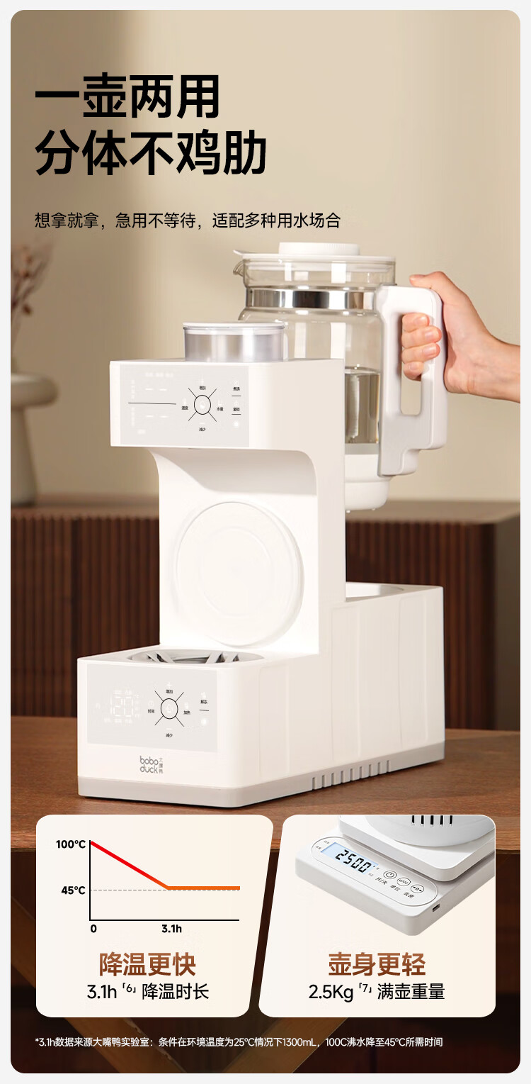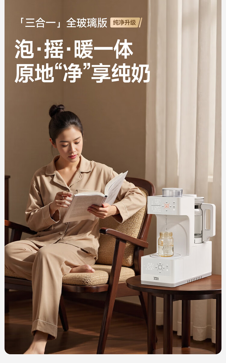 boboduck大嘴鸭全玻璃恒温壶 定量泡奶机三合一泡奶摇奶一体机多功能喂养台 6296
