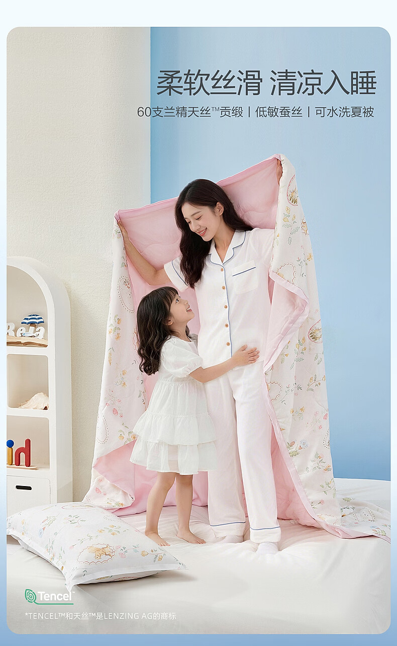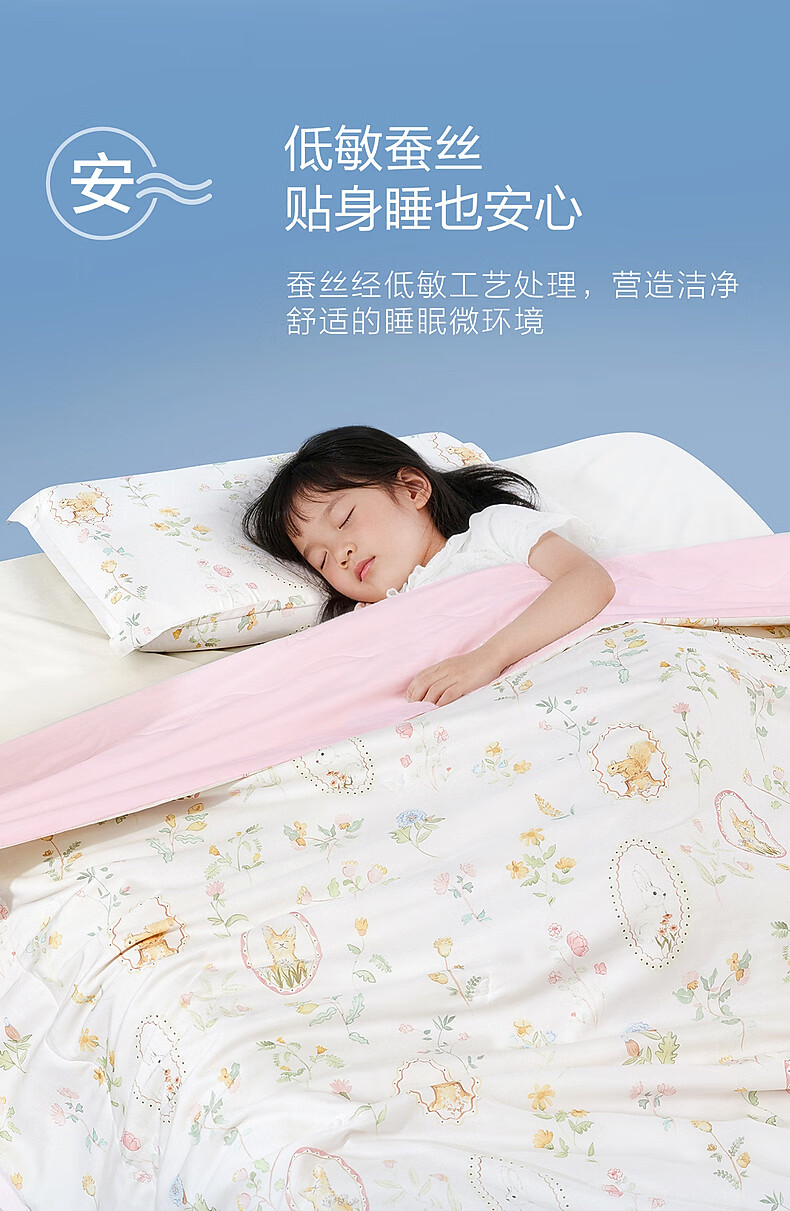水星家纺儿童蚕丝被100%蚕丝A类天丝夏凉被空调被夏薄被子学生宿舍可水洗 野趣夏日画框天丝蚕丝夏被 野趣夏日画框天丝蚕丝夏被 100cm*120cm