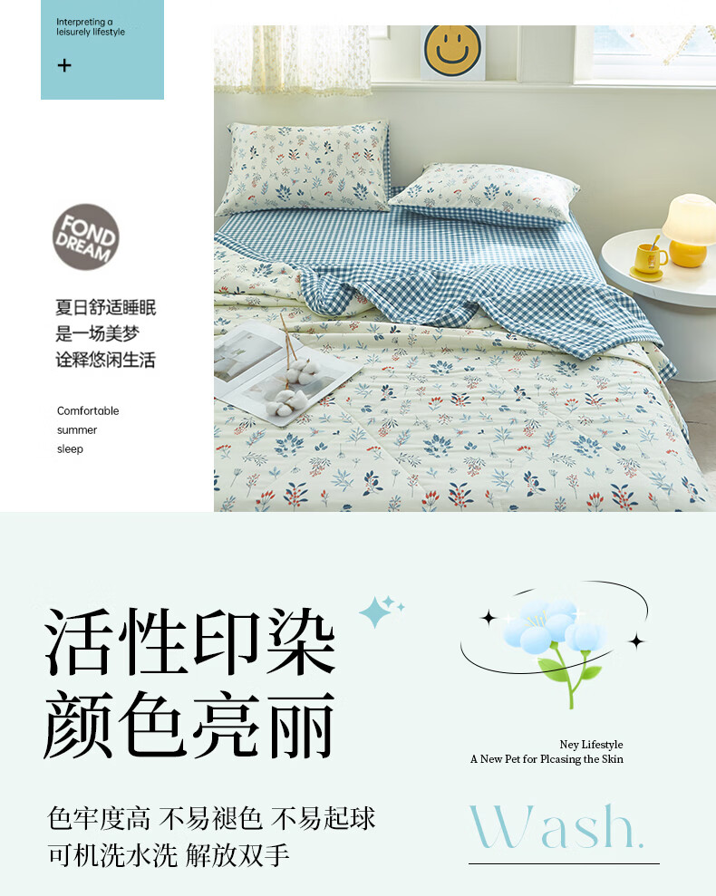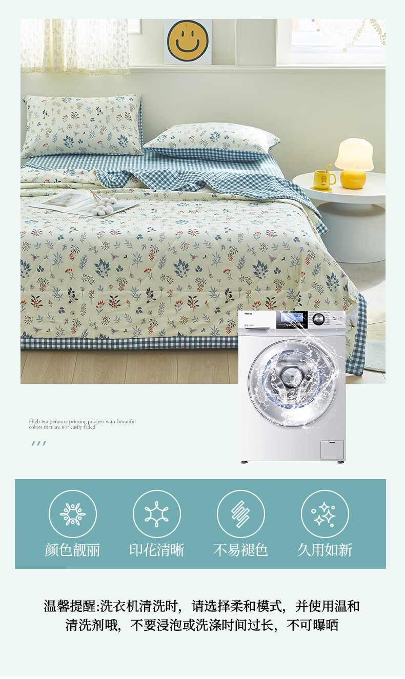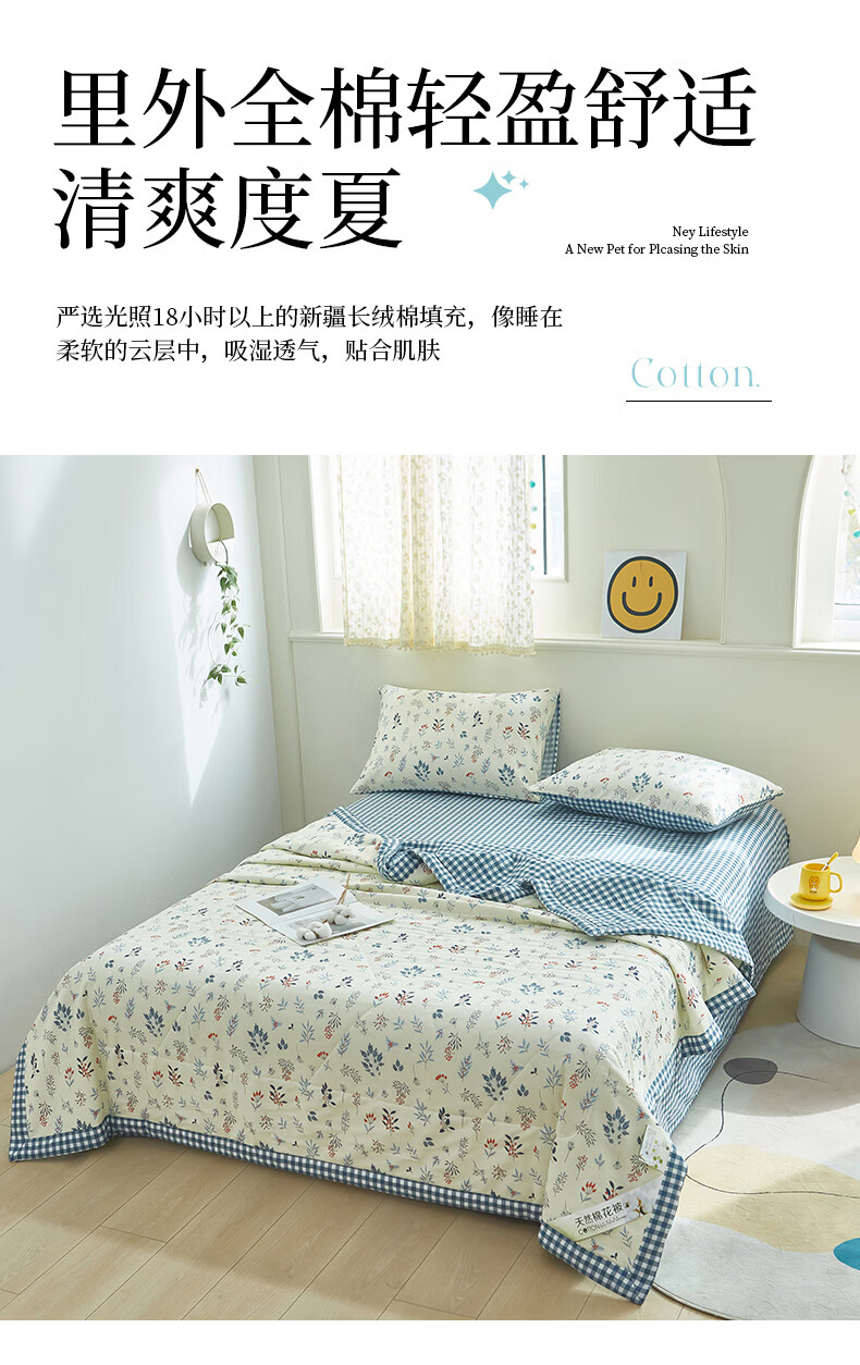 恒源祥被子空调被 新疆纯棉A类可机洗夏凉被双面AB版学生宿舍卧室夏凉被 【全棉夏被】-叶舞轻扬 150cm*200cm【单被】