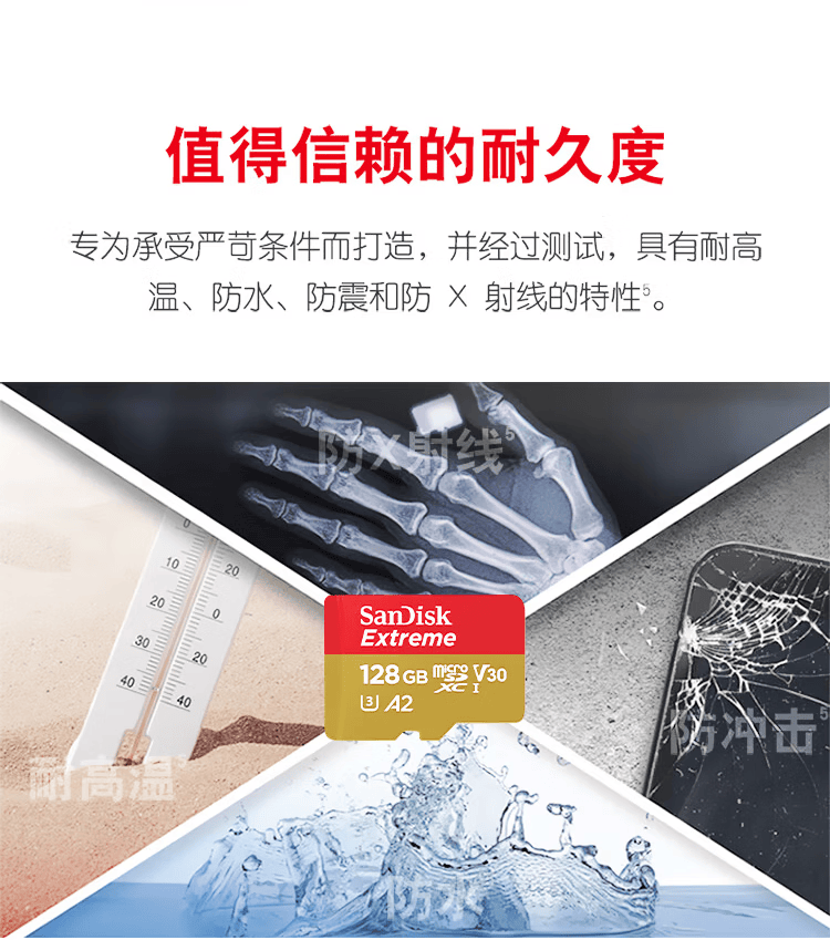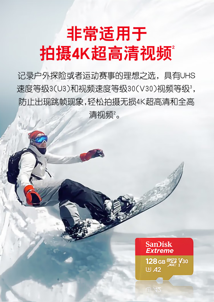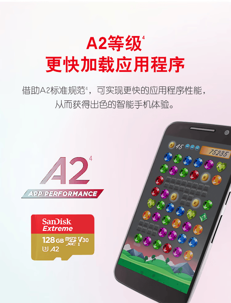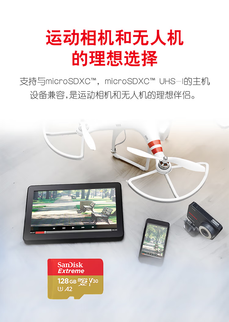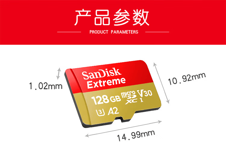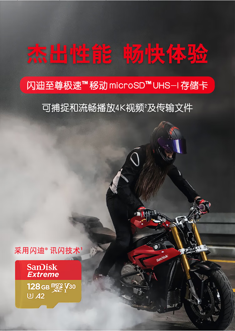 闪迪(SanDisk)高速TF(MicroSD)内存卡 4K极速金卡A2 V30 U3运动相机无人机游戏机数码相机存储卡 128G极速金卡 读速高达190mb/s