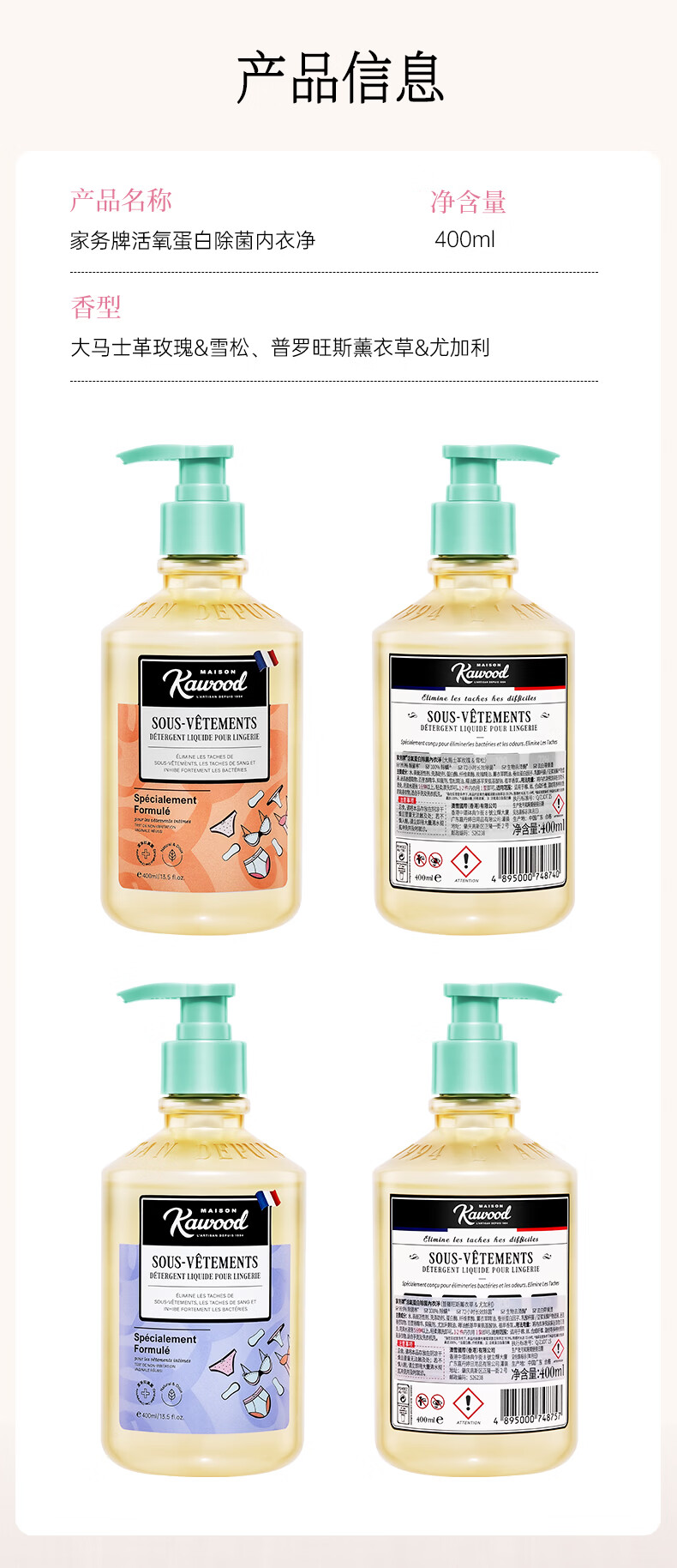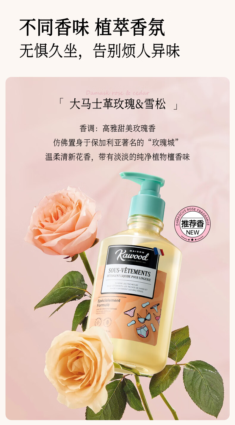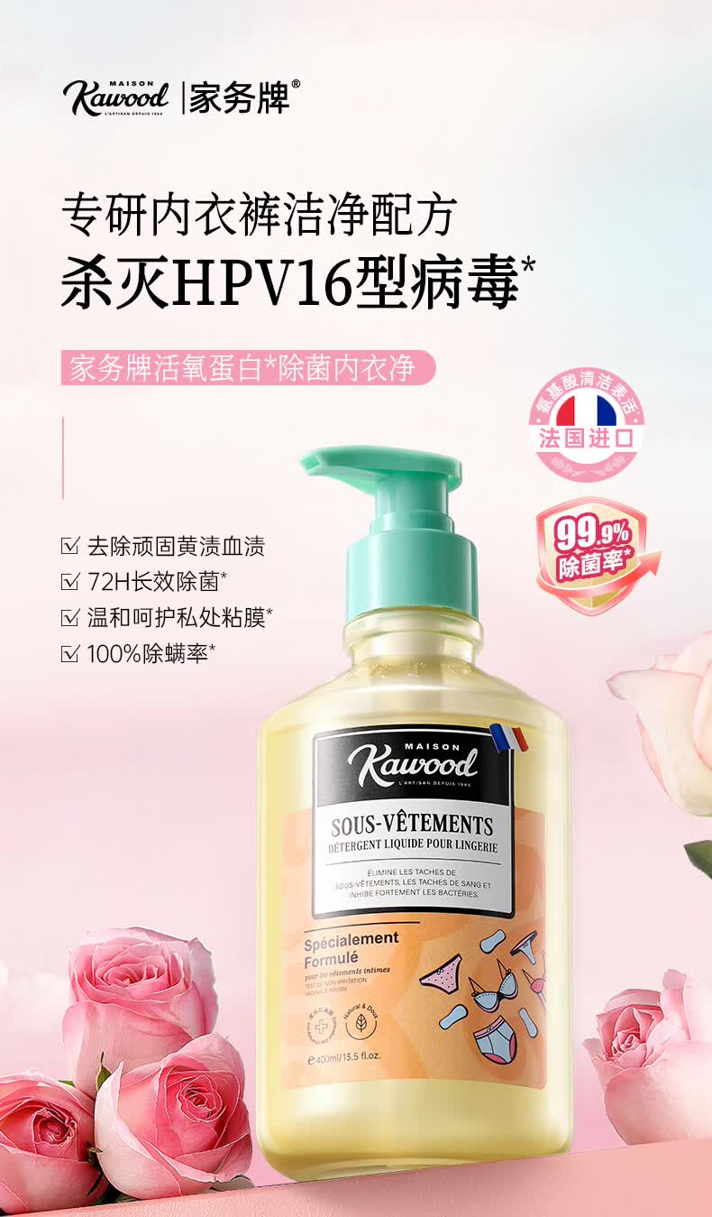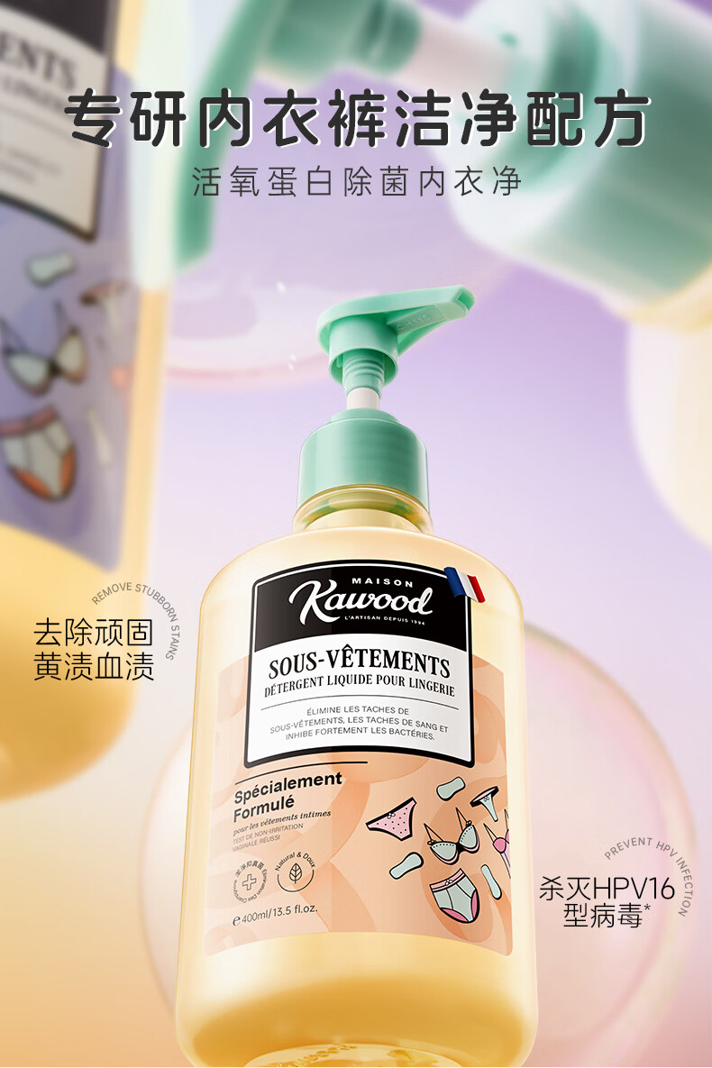 家务KAWOOD内衣裤洗衣液有效除菌去黄去白带持久留香易清洗不伤衣 200ml*3内衣洗衣液
