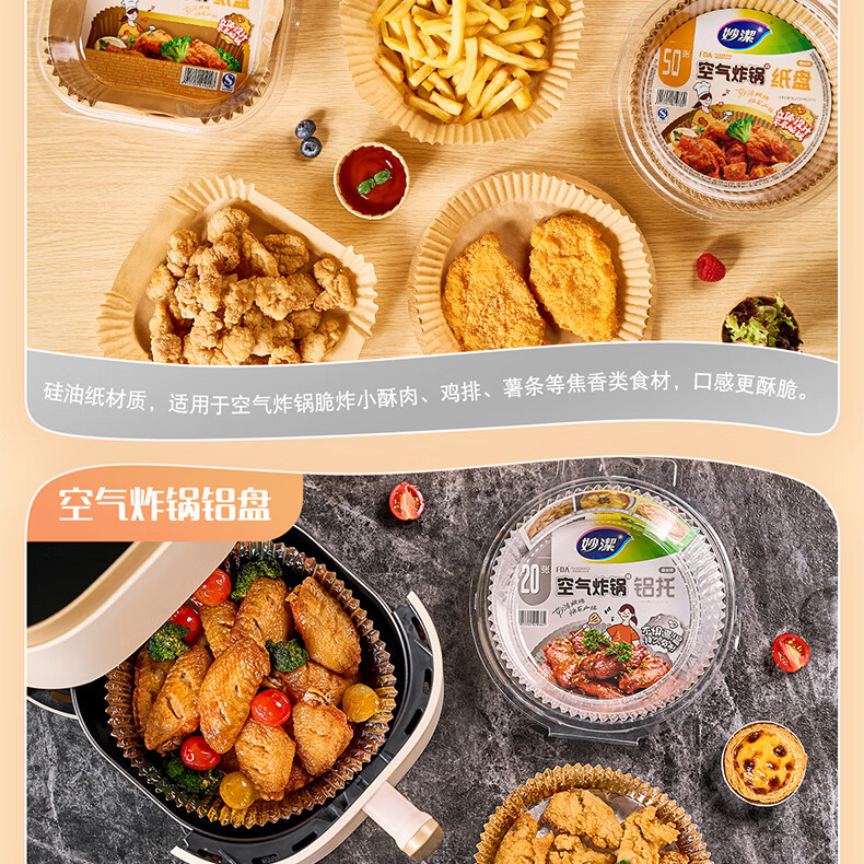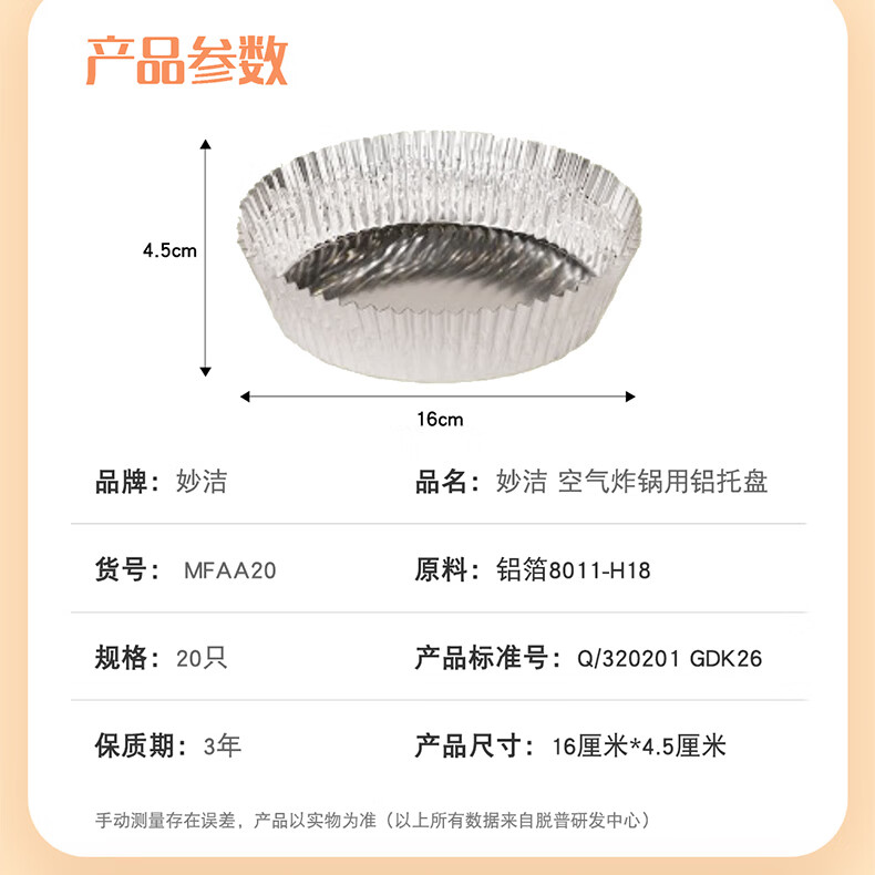 妙洁 空气炸锅专用锡纸碗盘 20只 不惧高温 持久有形 烘培烧烤箱