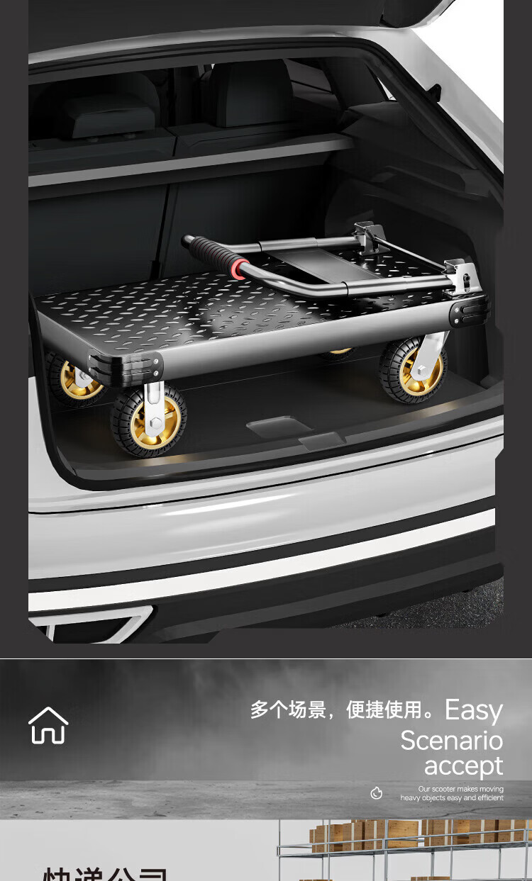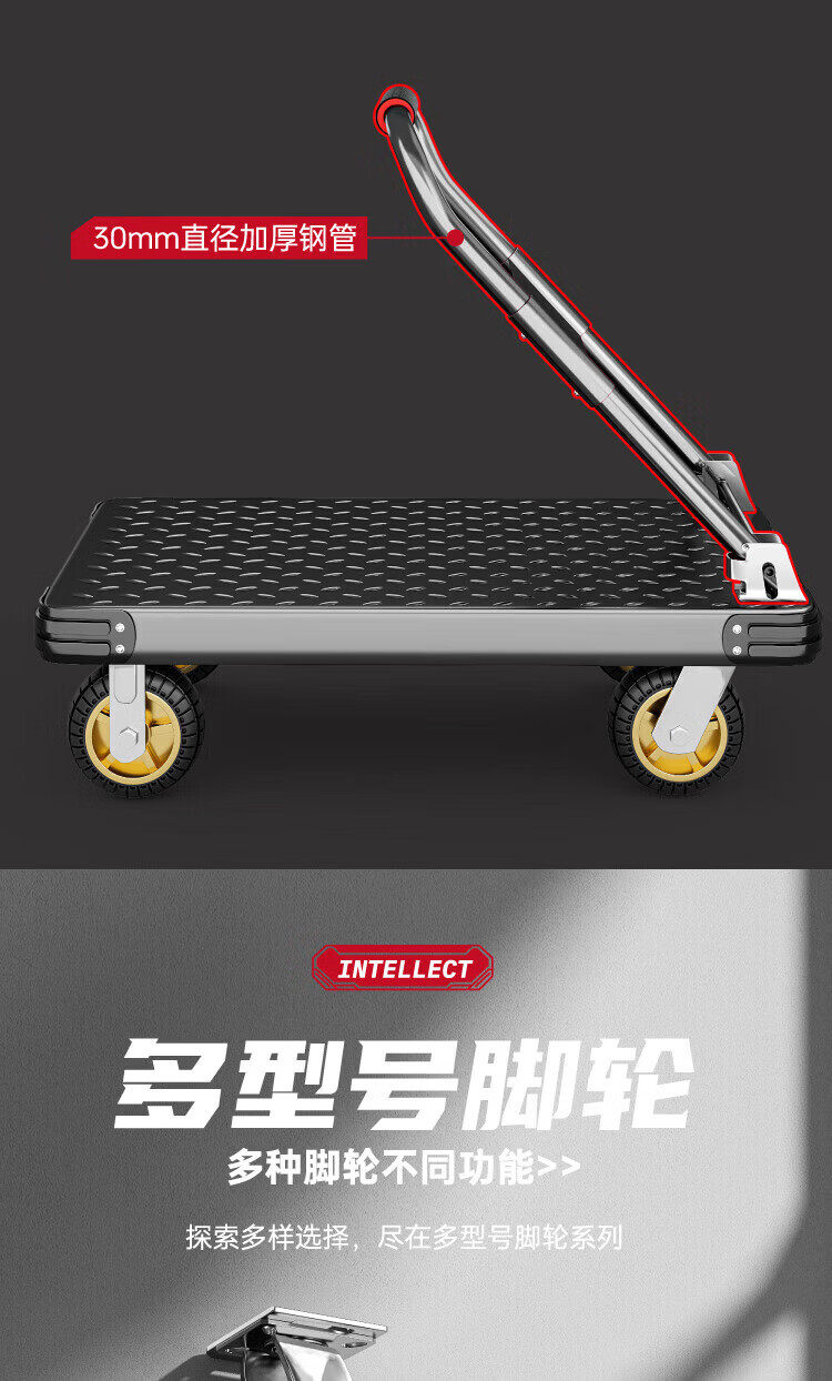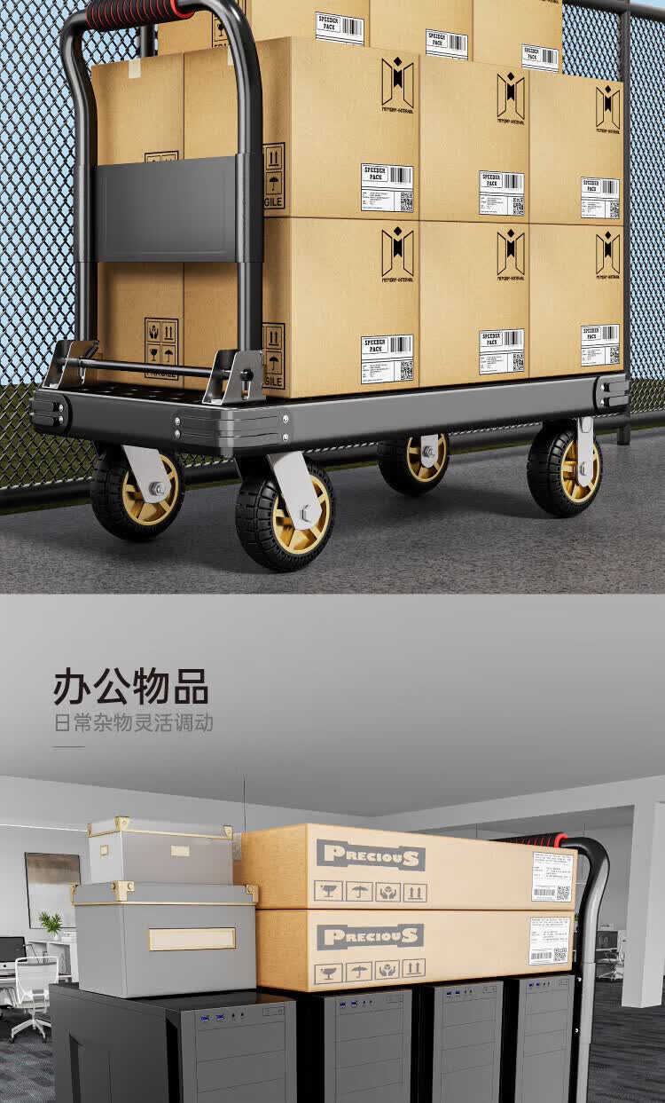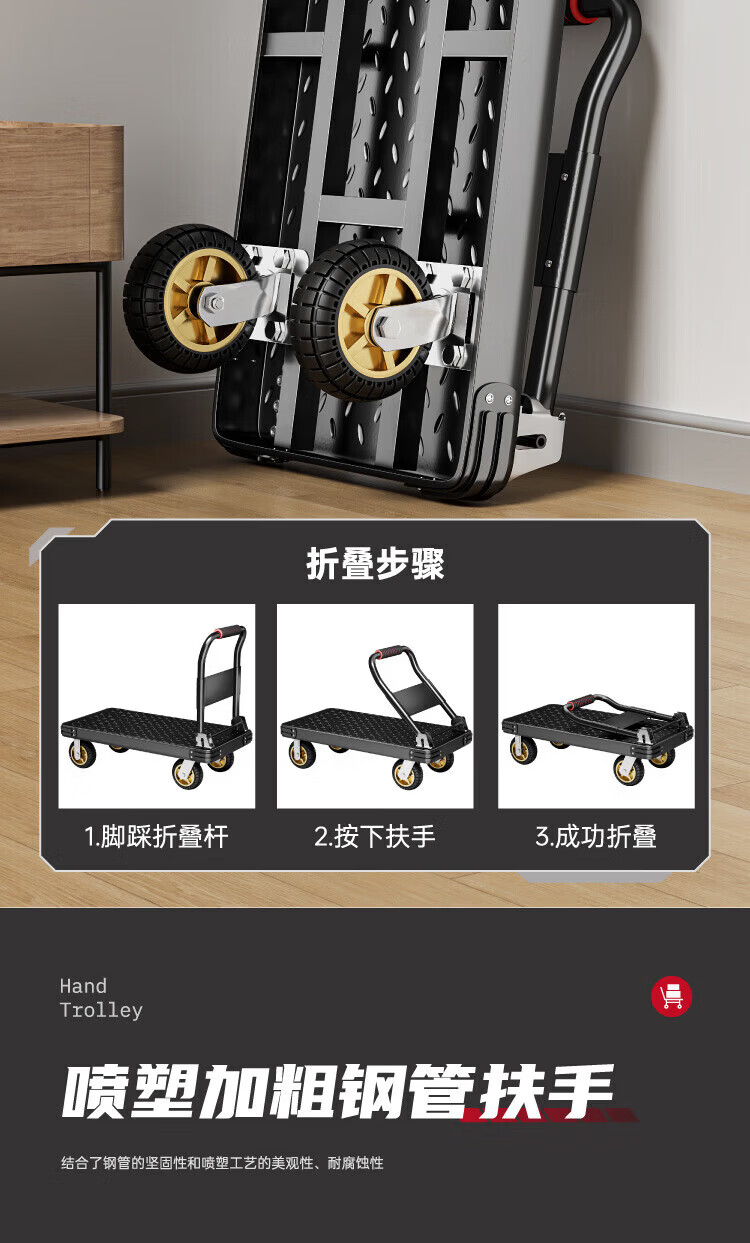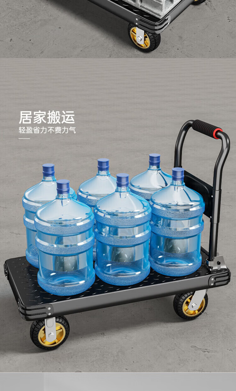 亚伦大力士小手推车平板车拉货家用搬运车折叠拖车仓库商用拉车快递搬运工具 加厚黑板【90*60】5寸烽火轮+承重1750斤
