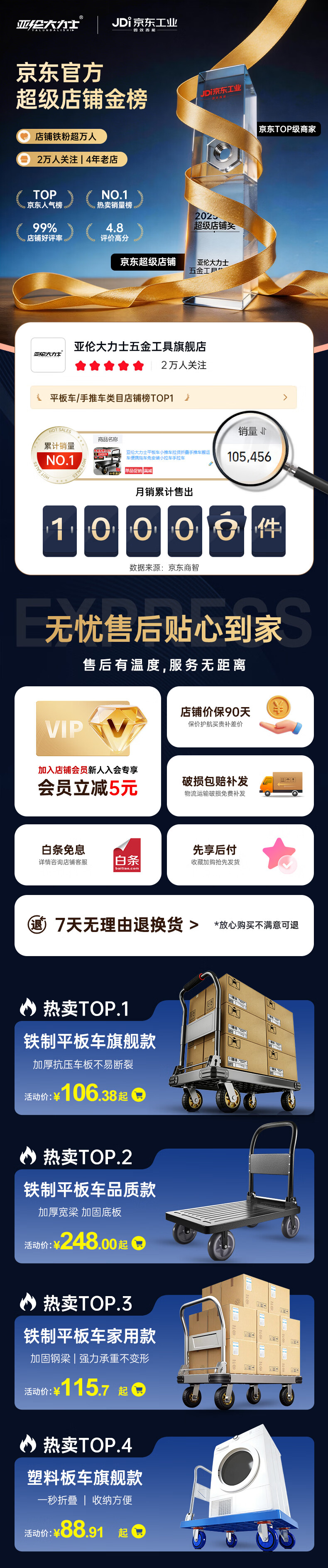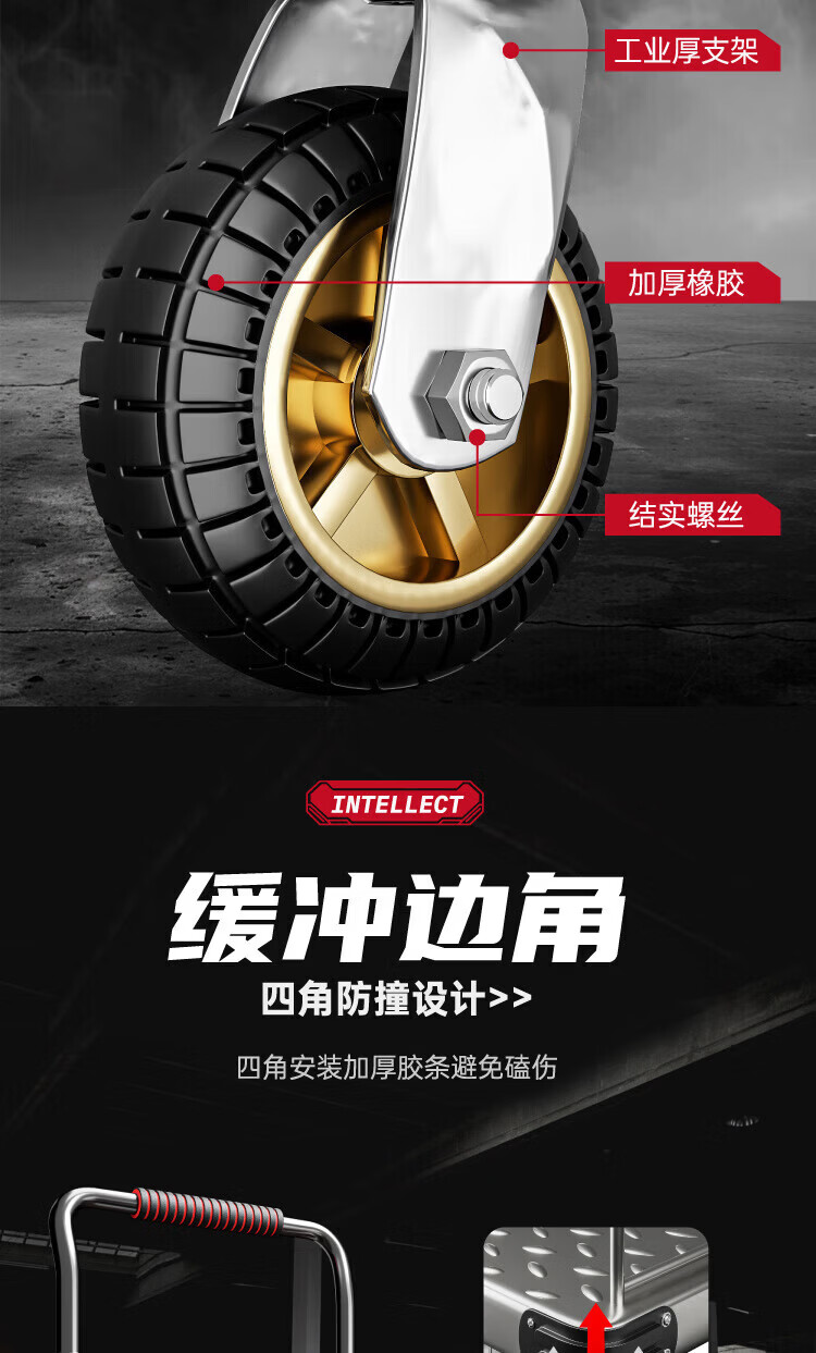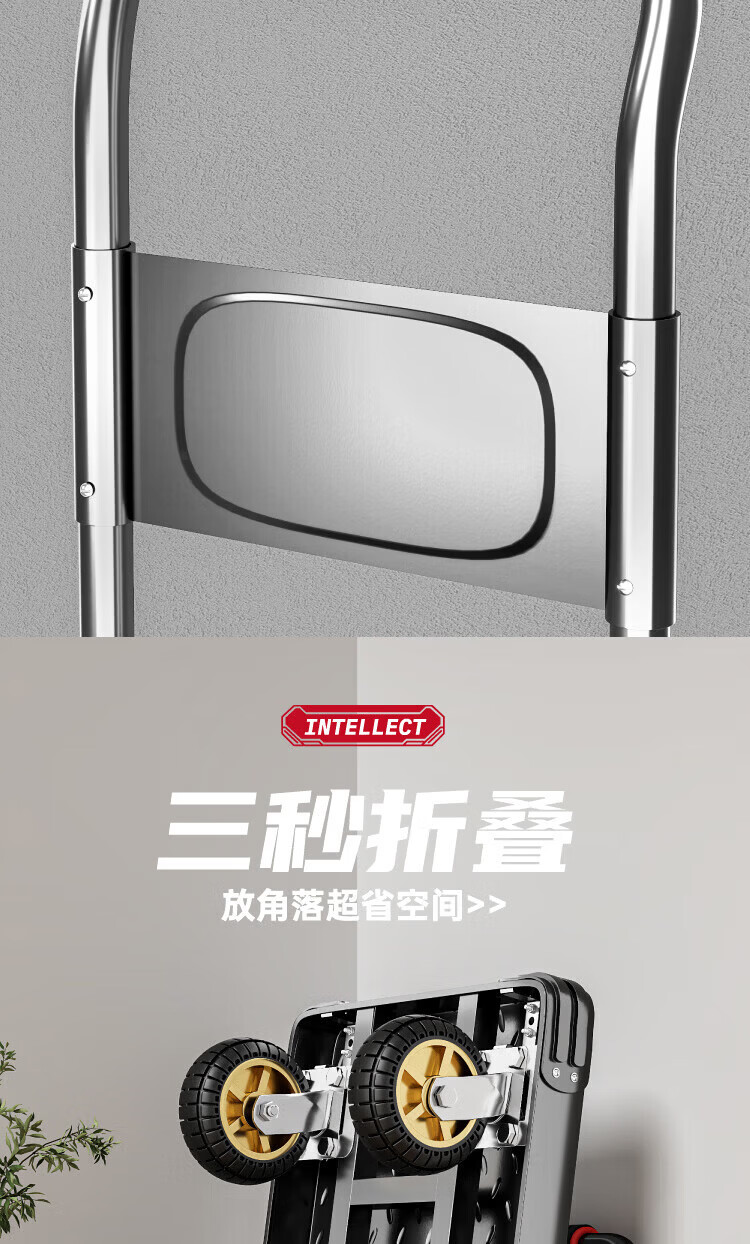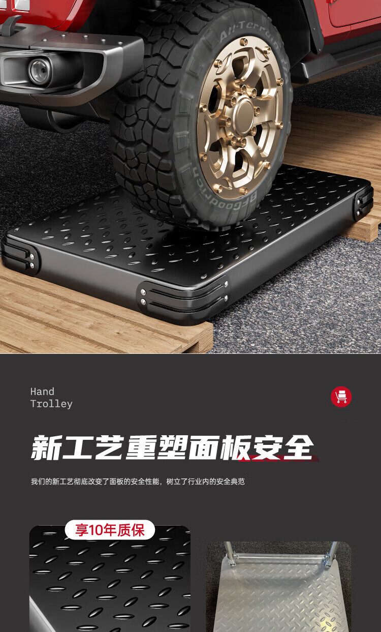 亚伦大力士小手推车平板车拉货家用搬运车折叠拖车仓库商用拉车快递搬运工具 加厚黑板【90*60】5寸烽火轮+承重1750斤