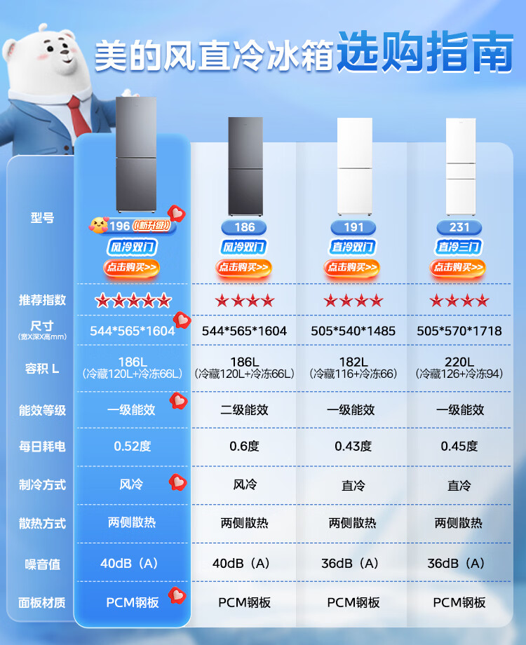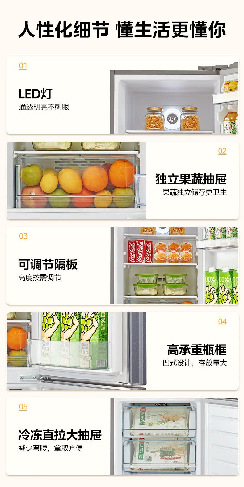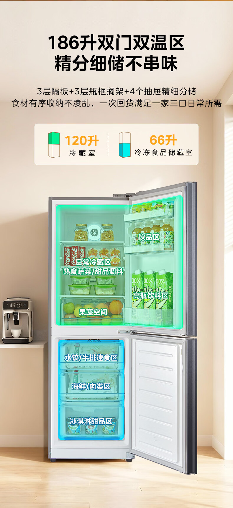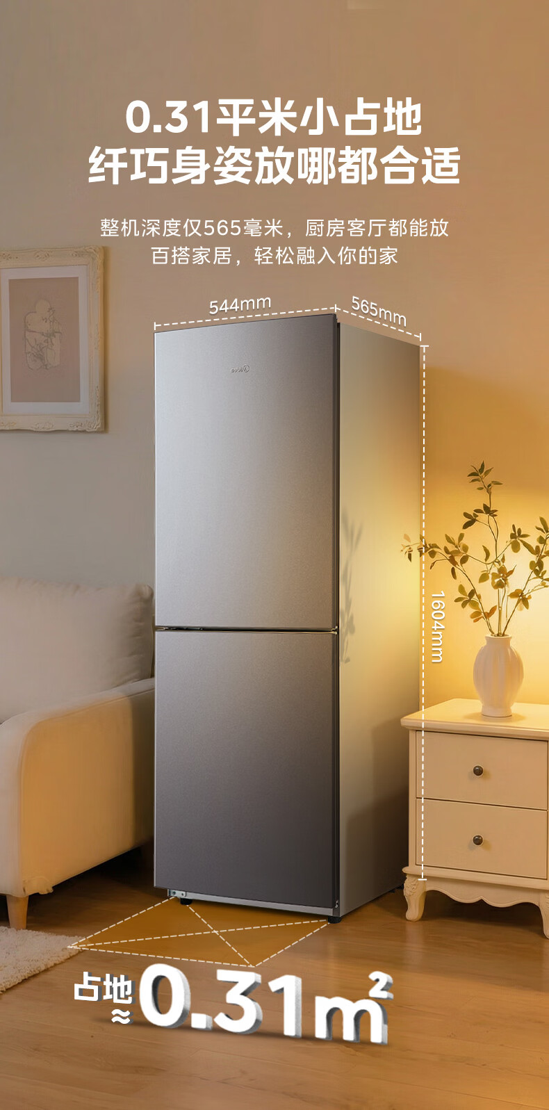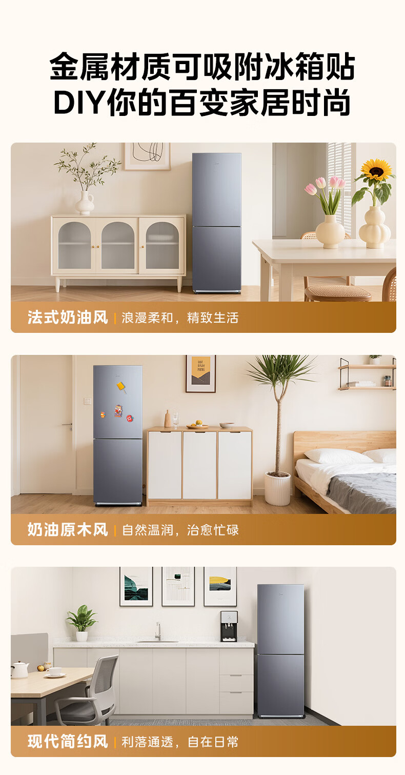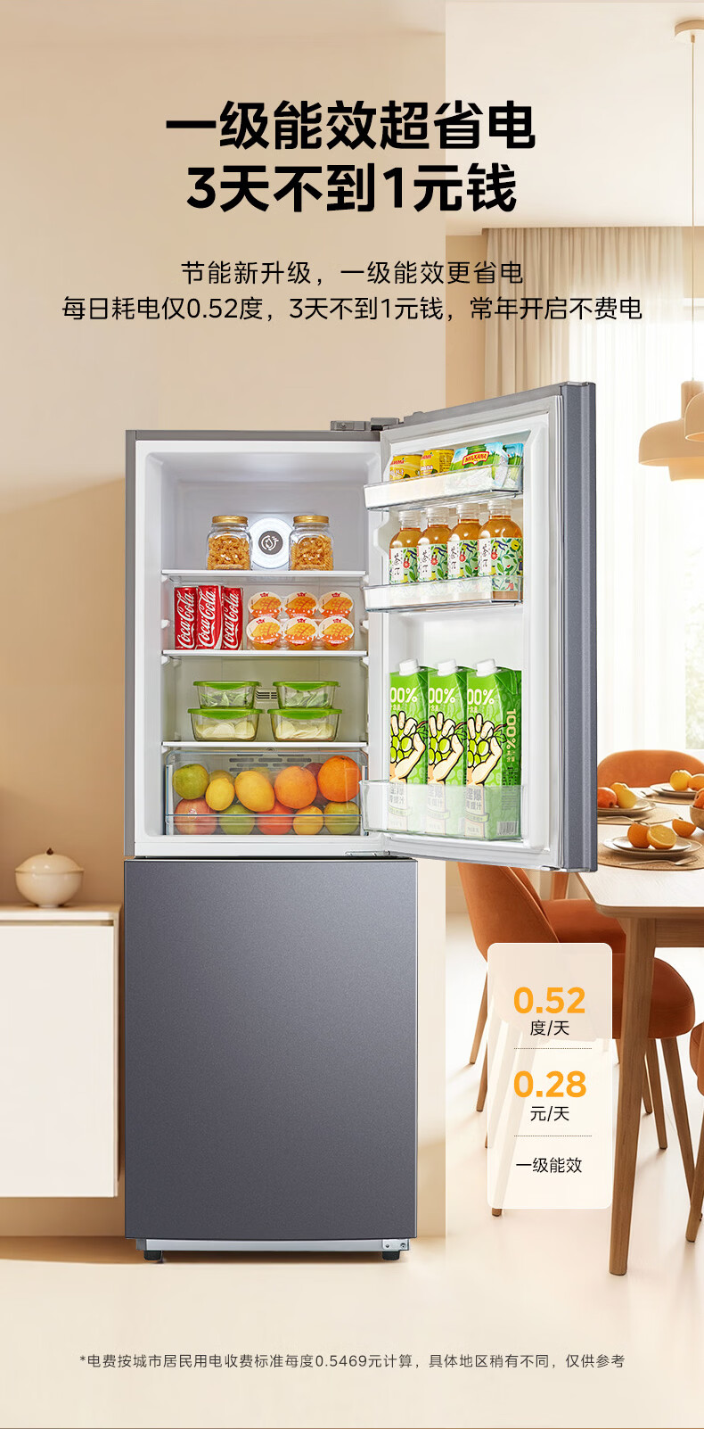 美的(Midea)「一级能效风冷无霜」186升两门冰箱小户型家用省电双门双系统不串味 钛钢灰MR-196W国家补贴