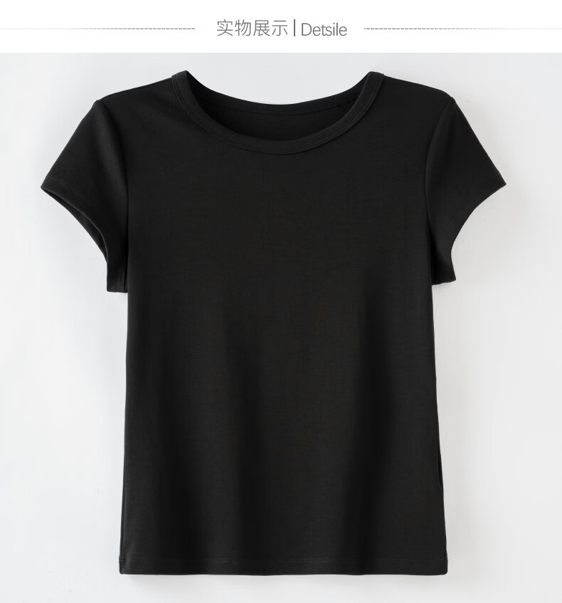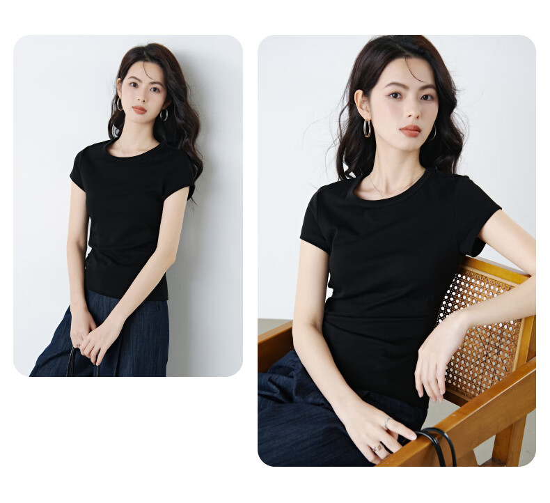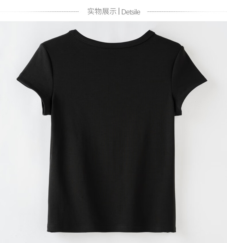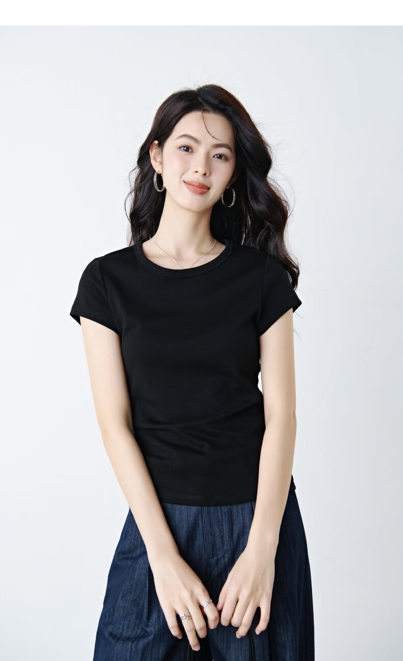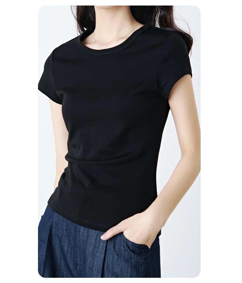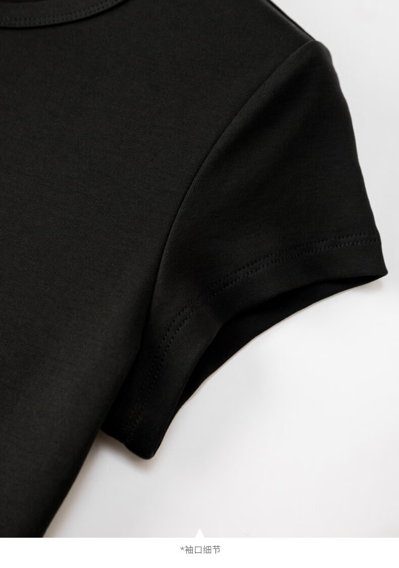 晚白【纸片人瘦瘦T】2026夏款洋气百搭正肩显瘦上衣黑色短袖棉t恤女 黑色 L