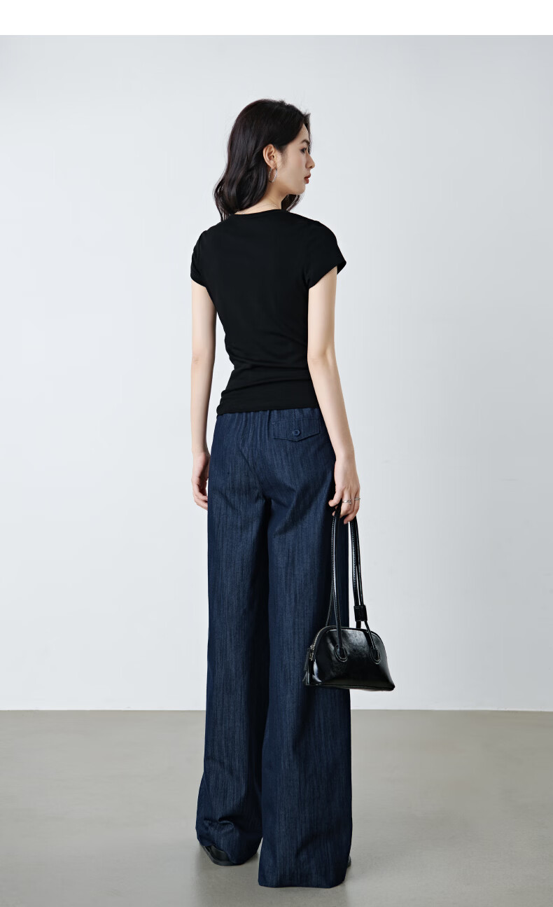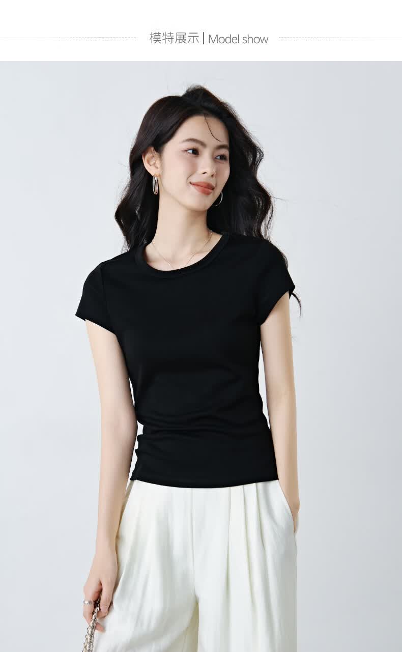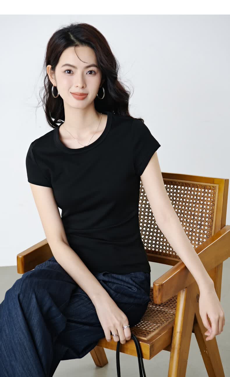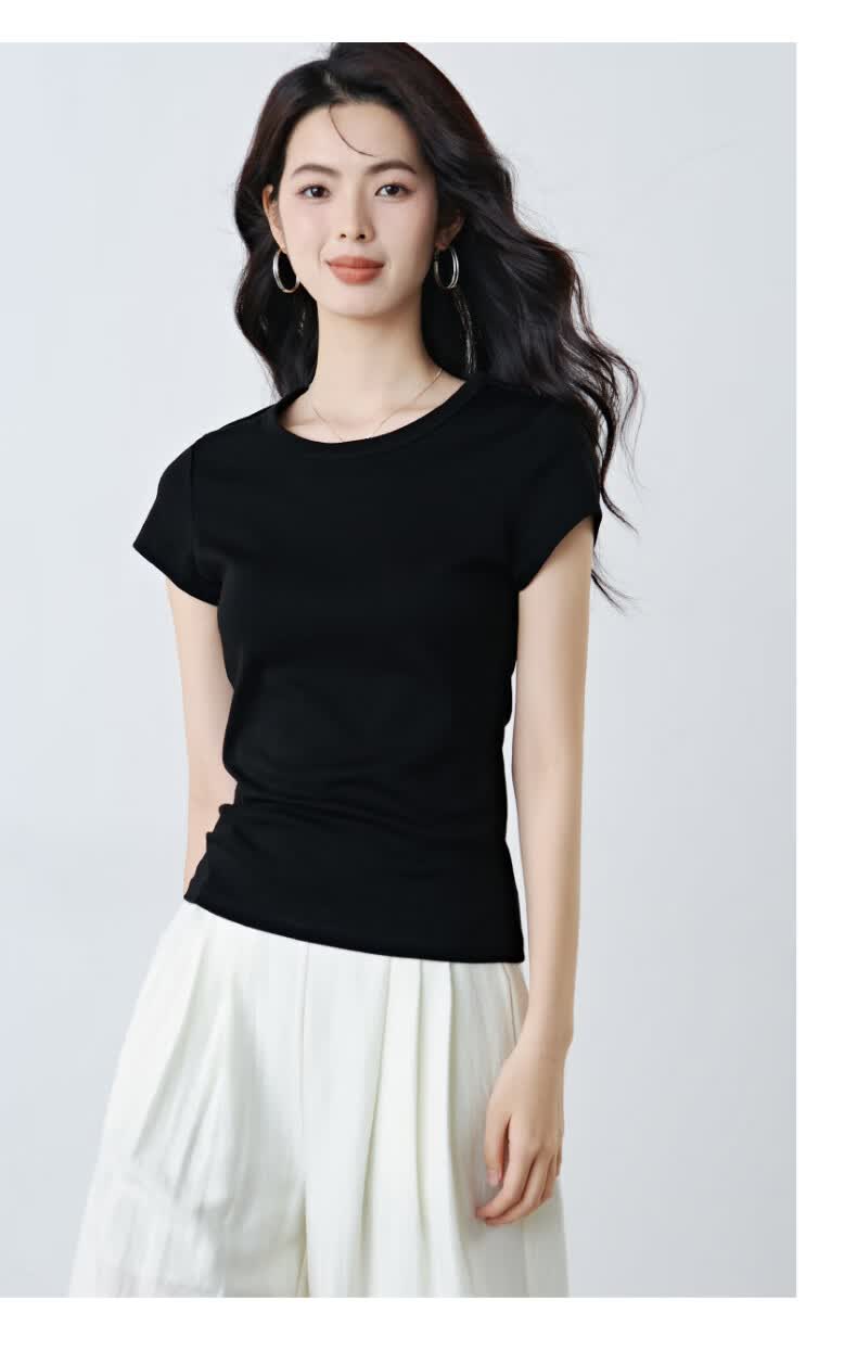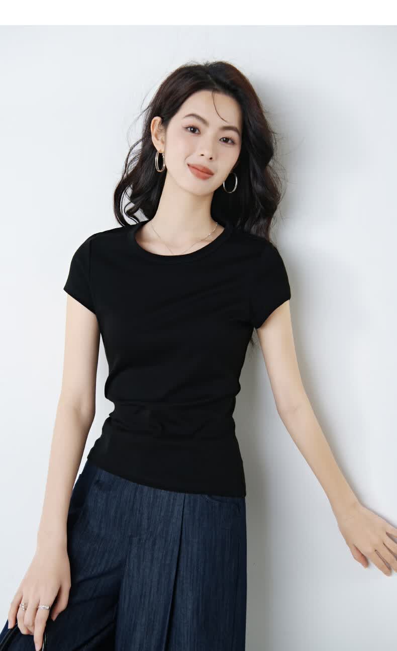 晚白【纸片人瘦瘦T】2026夏款洋气百搭正肩显瘦上衣黑色短袖棉t恤女 黑色 L