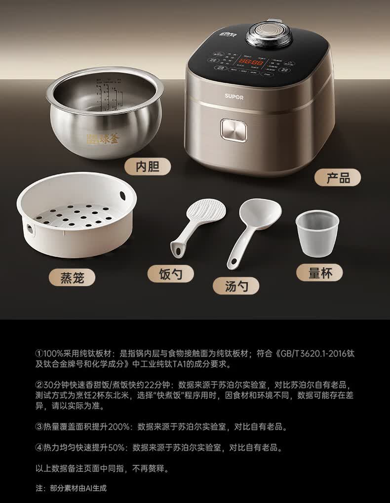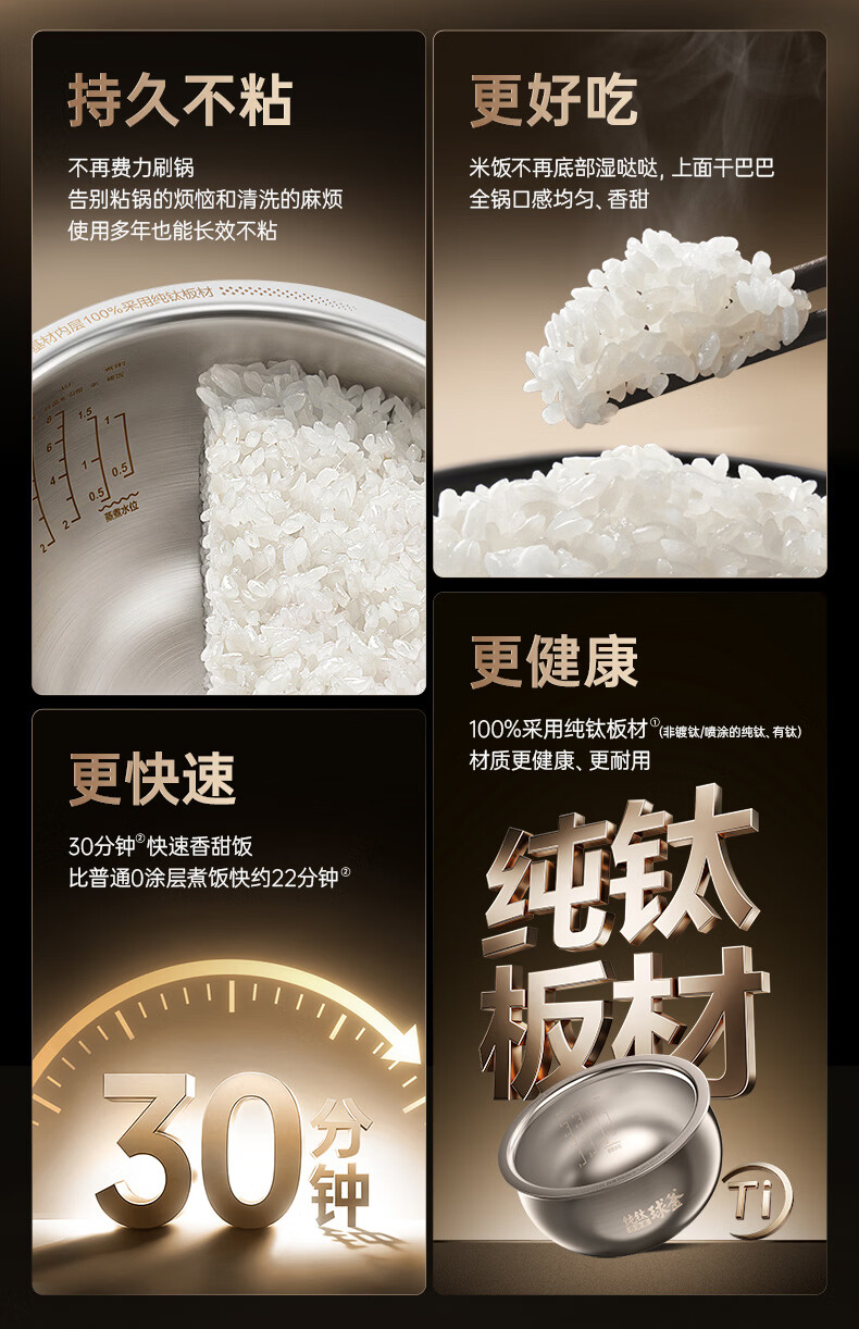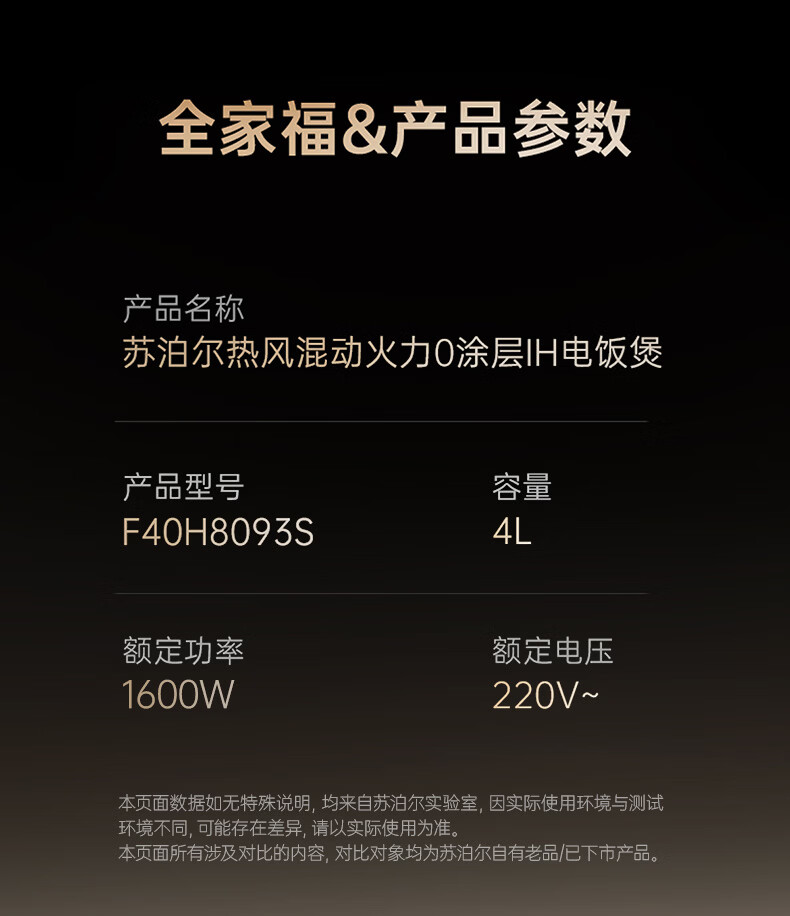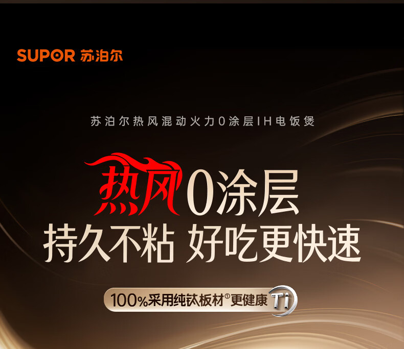 苏泊尔(SUPOR)电饭煲1-8人大容量4升IH热风球釜纯钛0涂层内胆不粘锅家用多功能煮饭煮粥智能预约电饭锅F40H8093