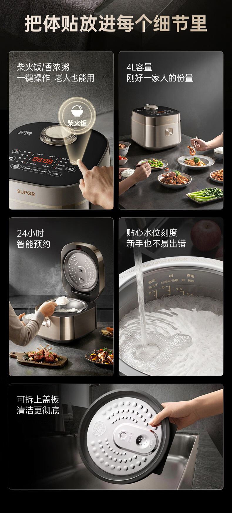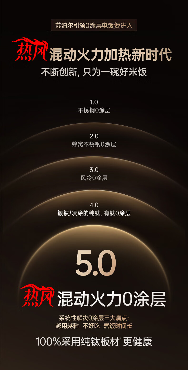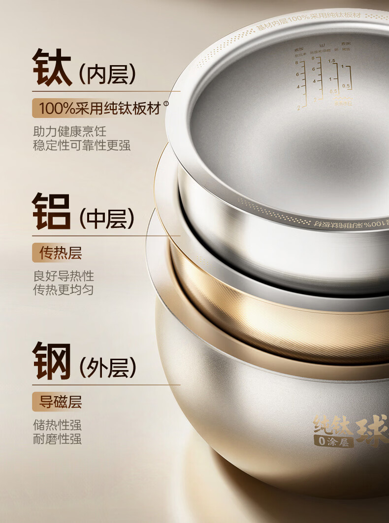 苏泊尔(SUPOR)电饭煲1-8人大容量4升IH热风球釜纯钛0涂层内胆不粘锅家用多功能煮饭煮粥智能预约电饭锅F40H8093