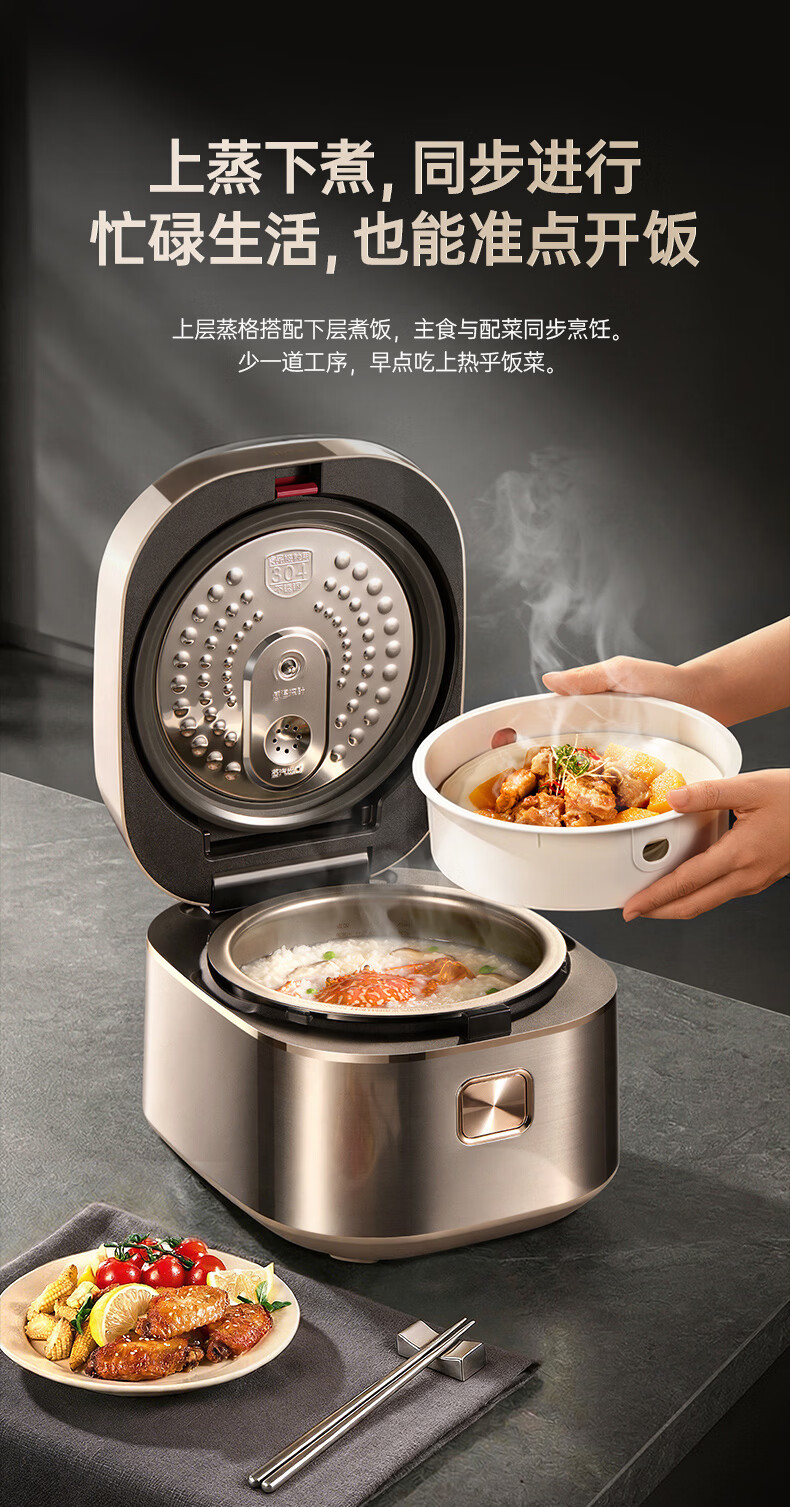 苏泊尔(SUPOR)0涂层有钛球釜电压力锅5L双胆全自动智能预约 触控SY-50YC5322Q电饭煲高压锅4-6人