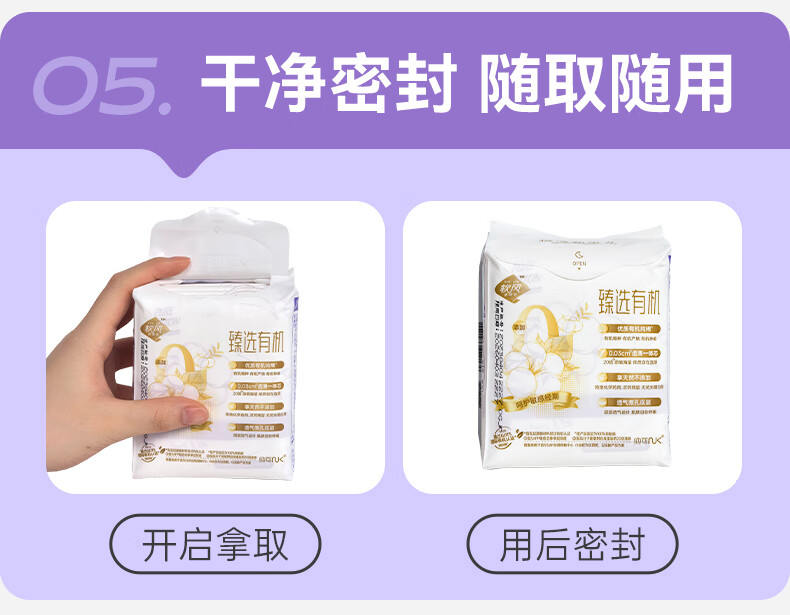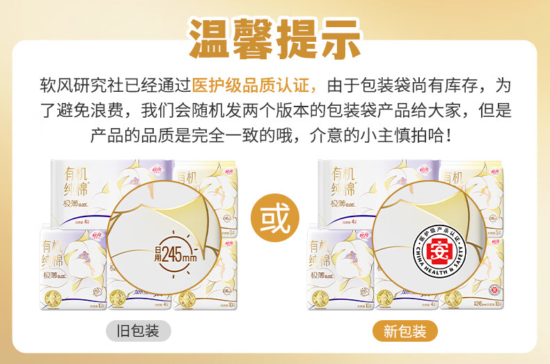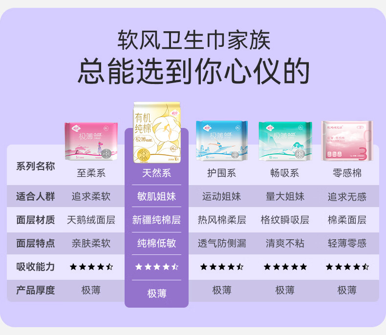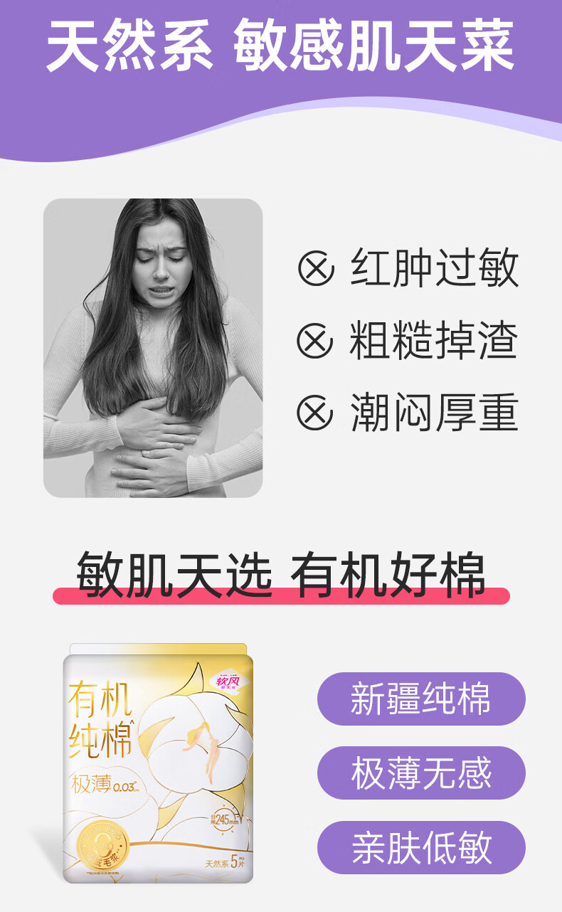 软风研究社透气防漏亲肤卫生巾有机纯棉无感日夜用组合姨妈巾超薄透气5片 纯棉 245mm 50片