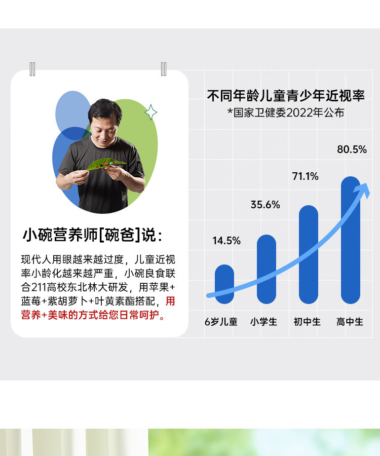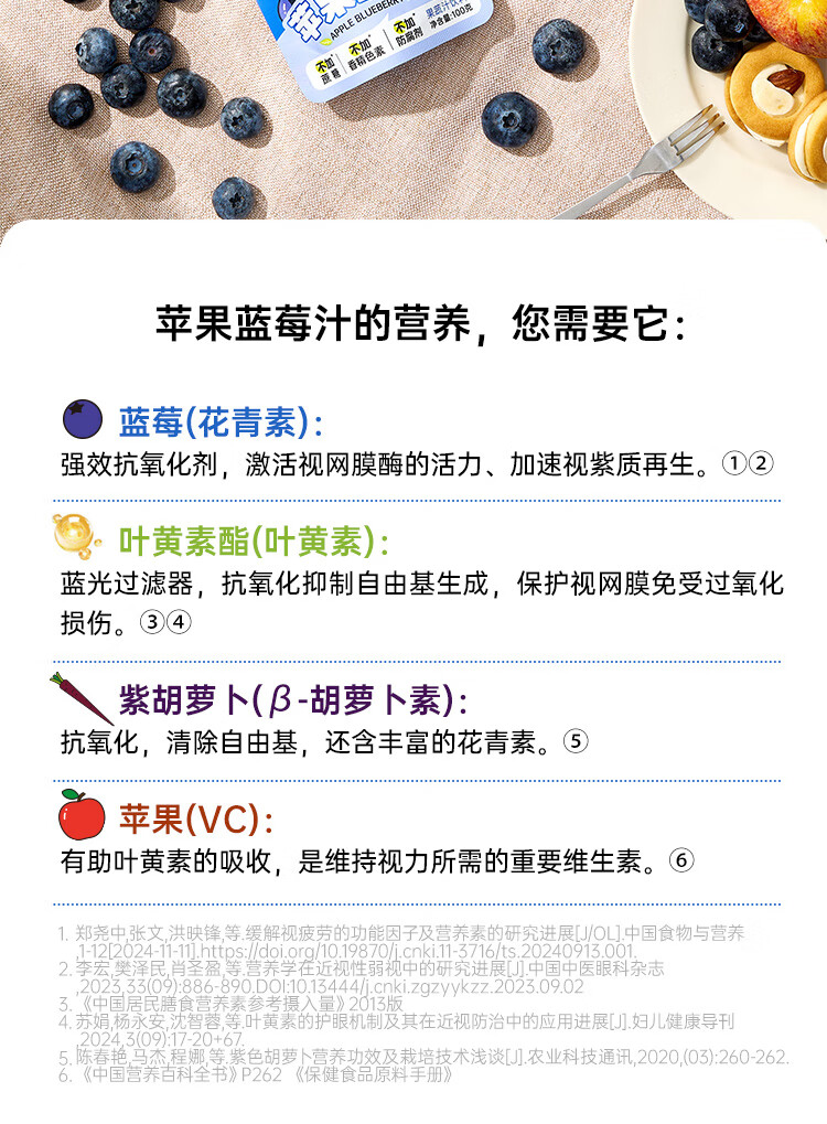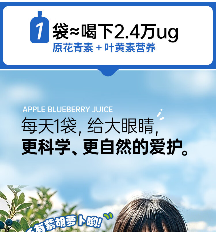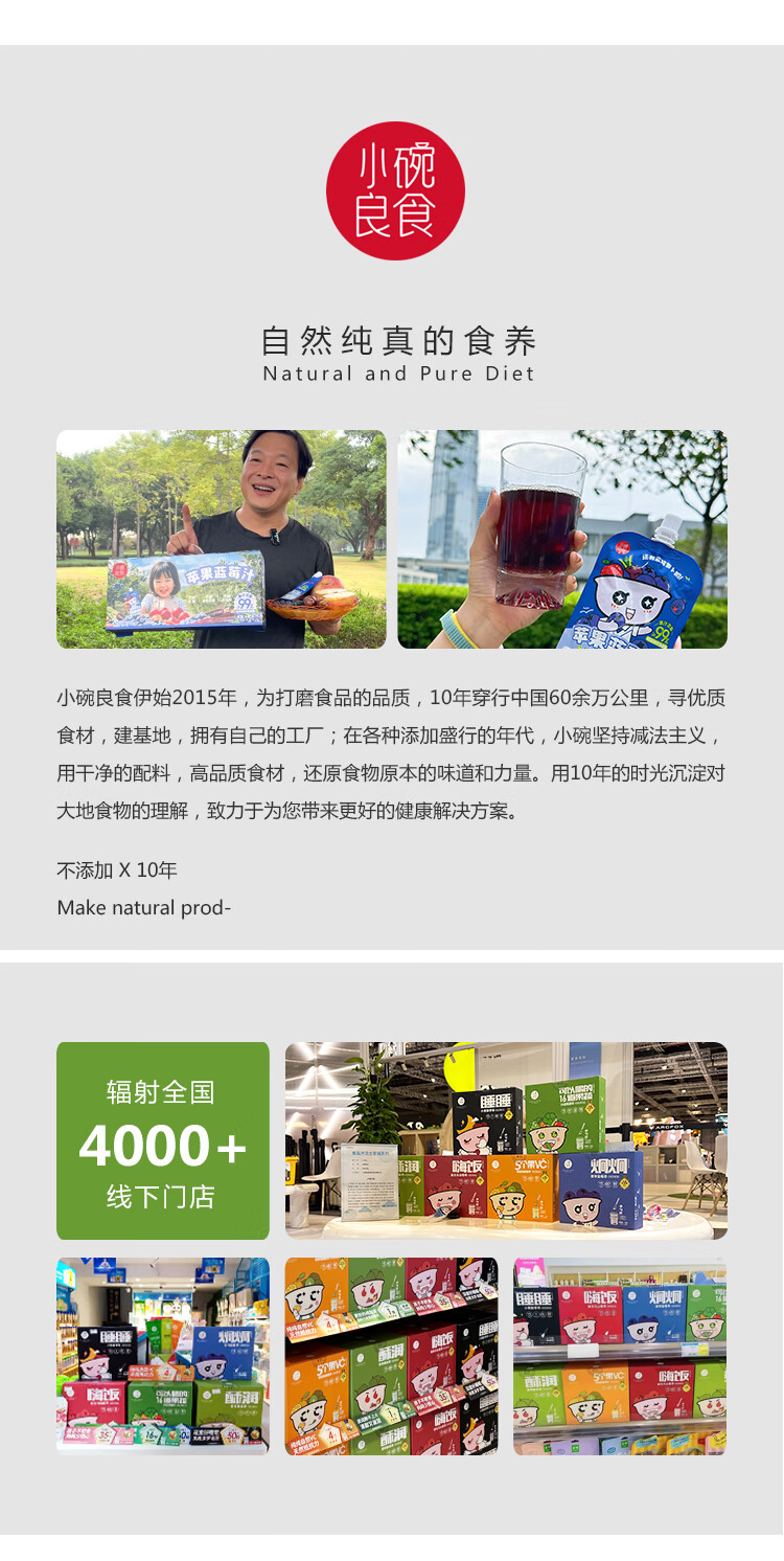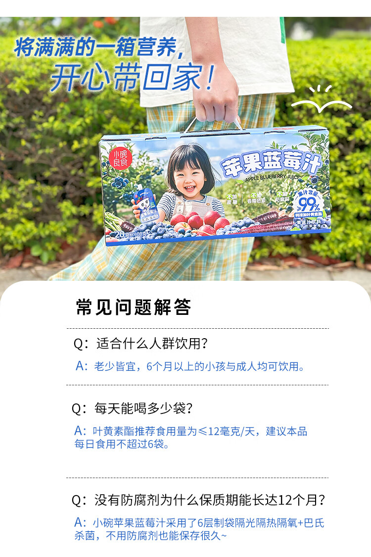 小碗良食果蔬汁饮料苹果蓝莓汁儿童无添加水果汁花青素叶黄素酯袋装整箱 100g*20袋(礼盒装)