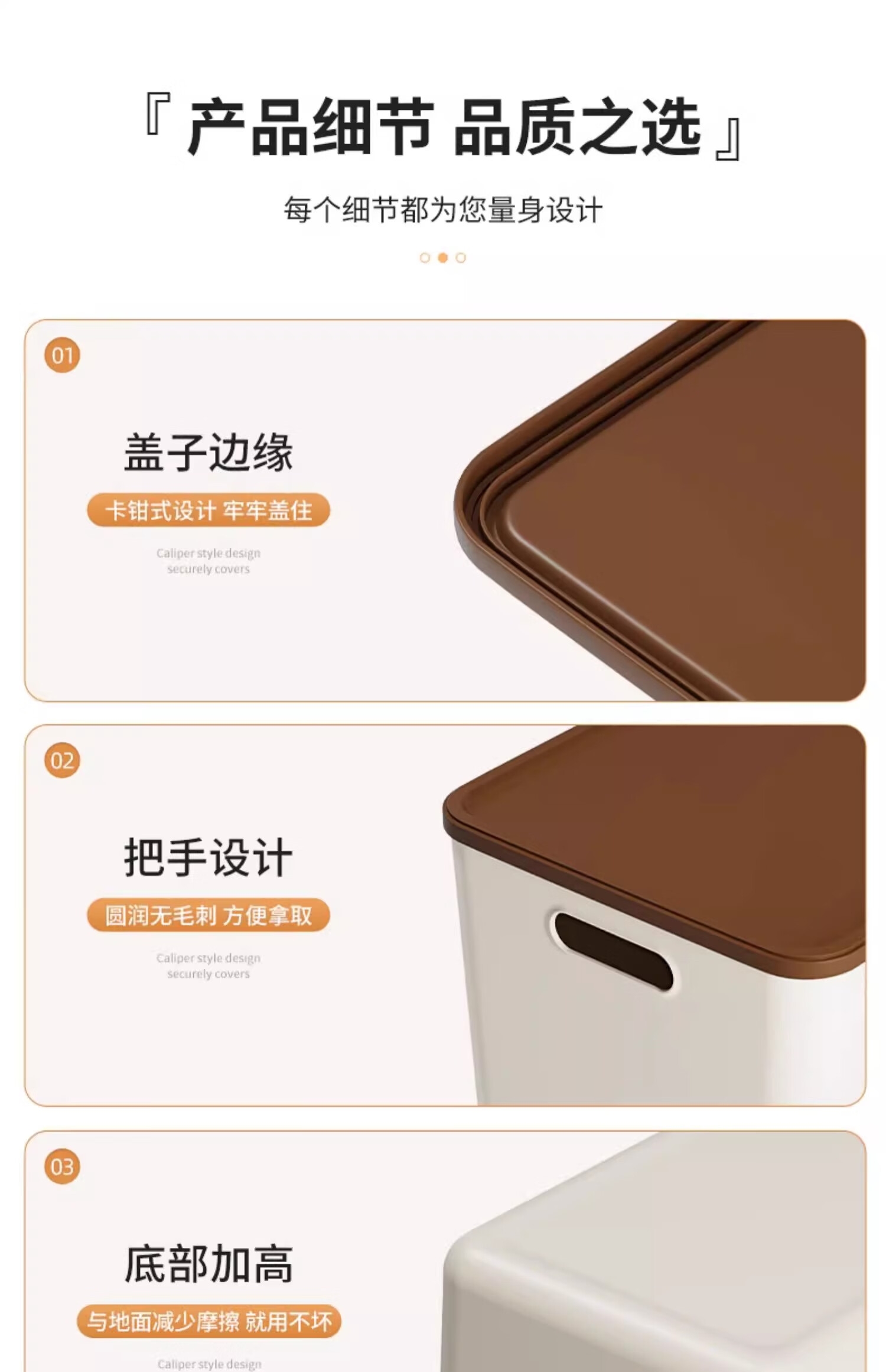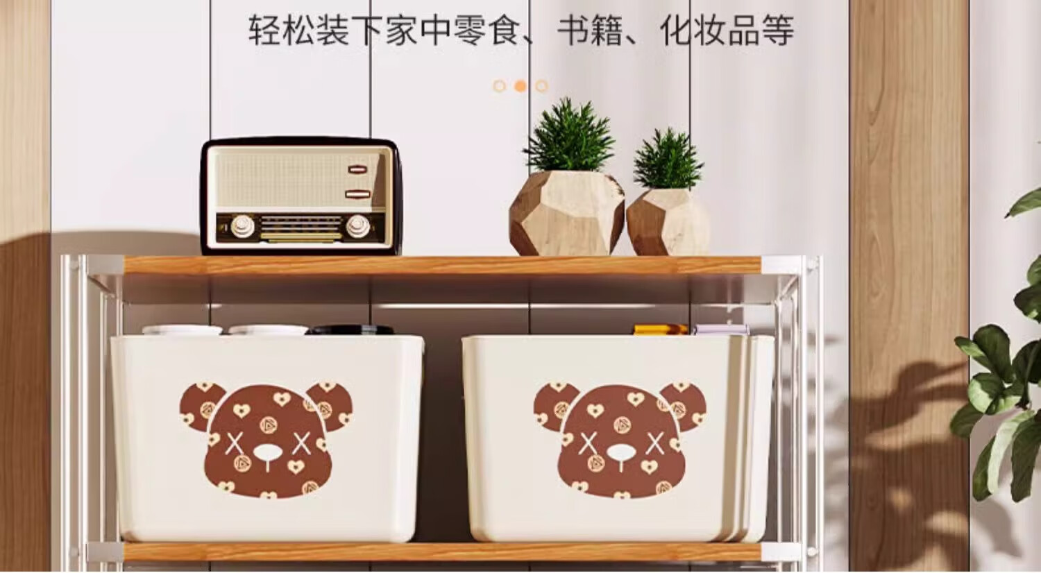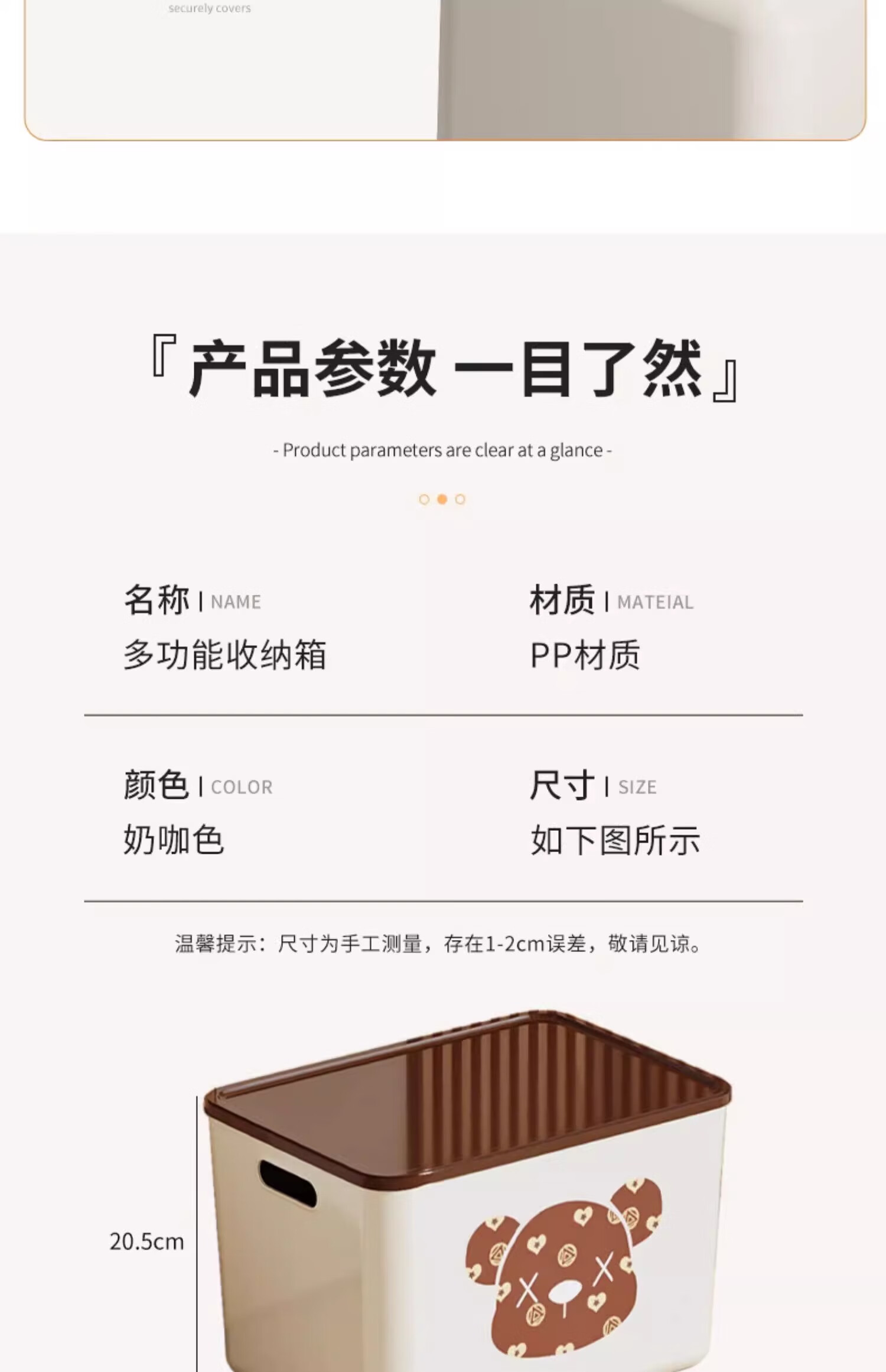 稻草熊桌面收纳盒长方形带盖整理盒杂物文具防尘储物盒零食工位整理神器 咖啡色带盖【三个装赠卡通贴纸】