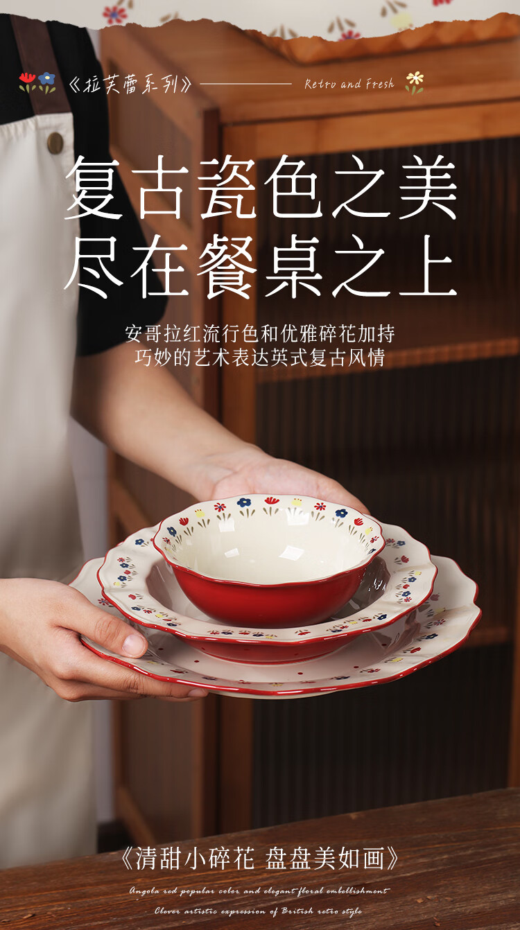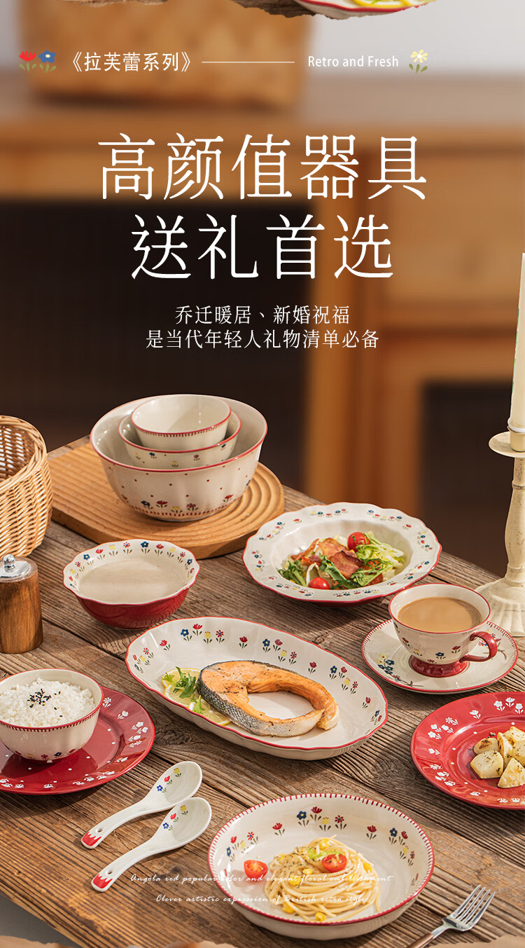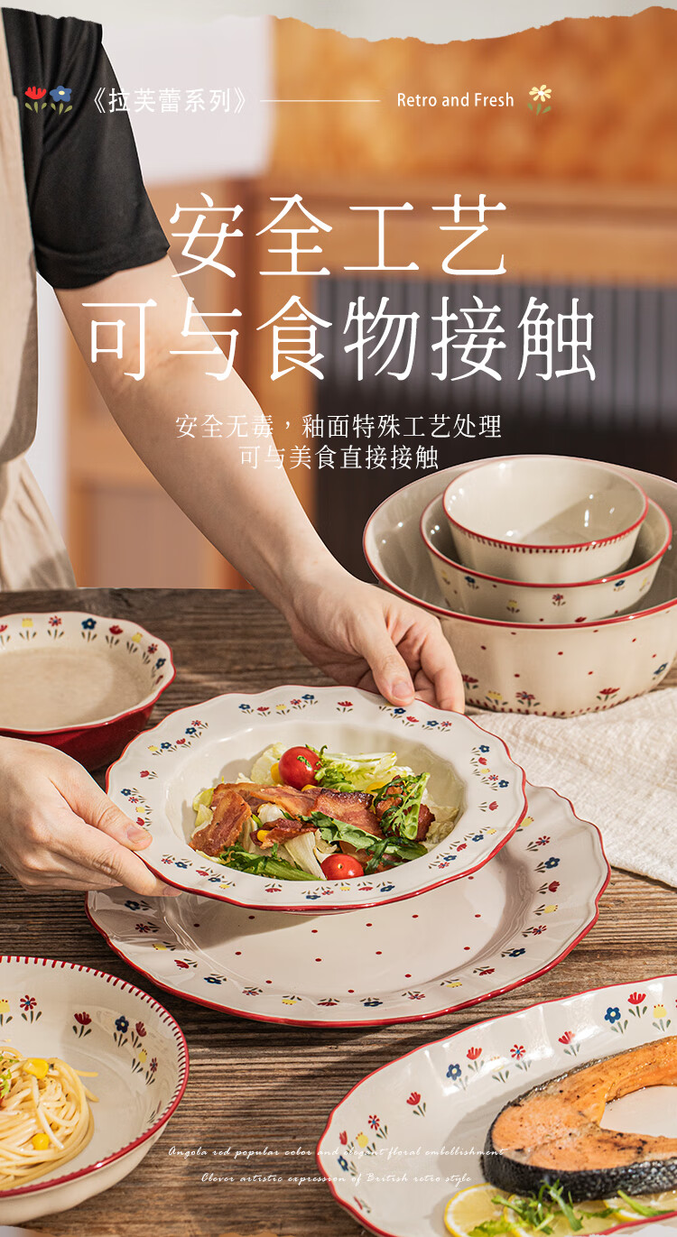 硕加拉芙蕾系列家用陶瓷餐具轻高级感微波炉适用碗盘组合汤碗饭盘套装 拉芙蕾-4人食12件套A(带礼盒)