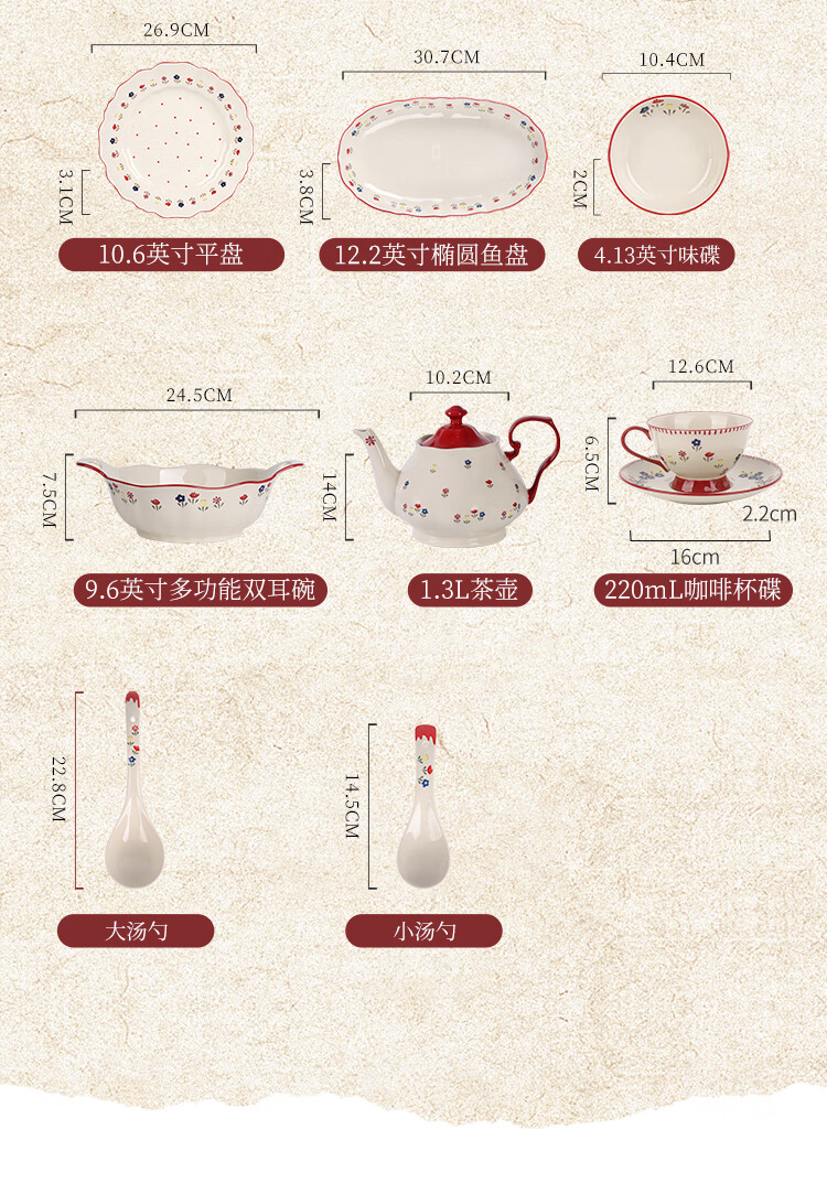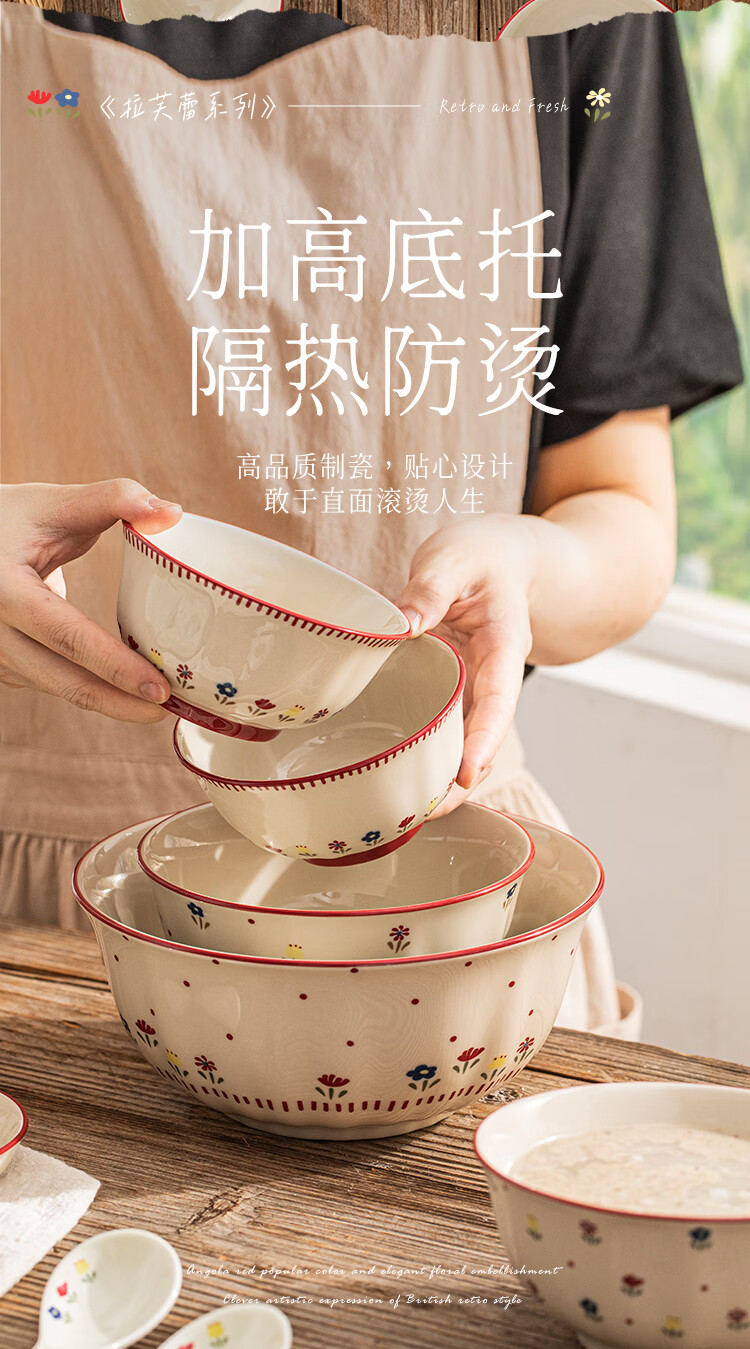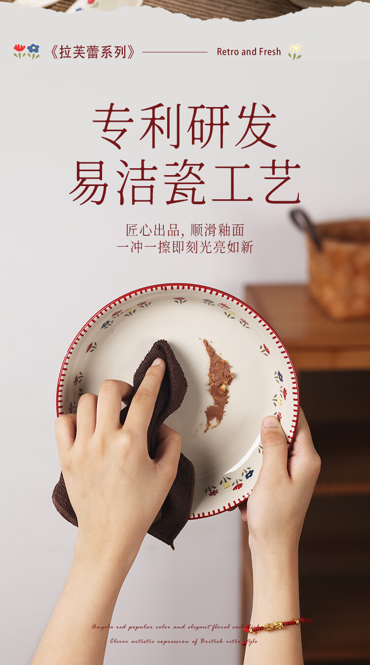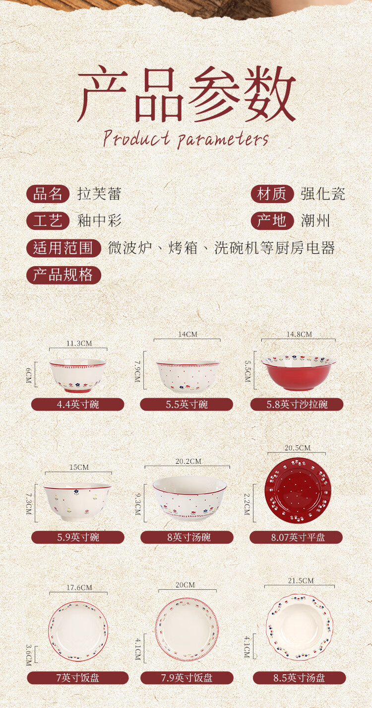 硕加拉芙蕾系列家用陶瓷餐具轻高级感微波炉适用碗盘组合汤碗饭盘套装 拉芙蕾-4人食12件套A(带礼盒)