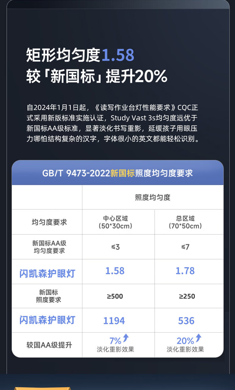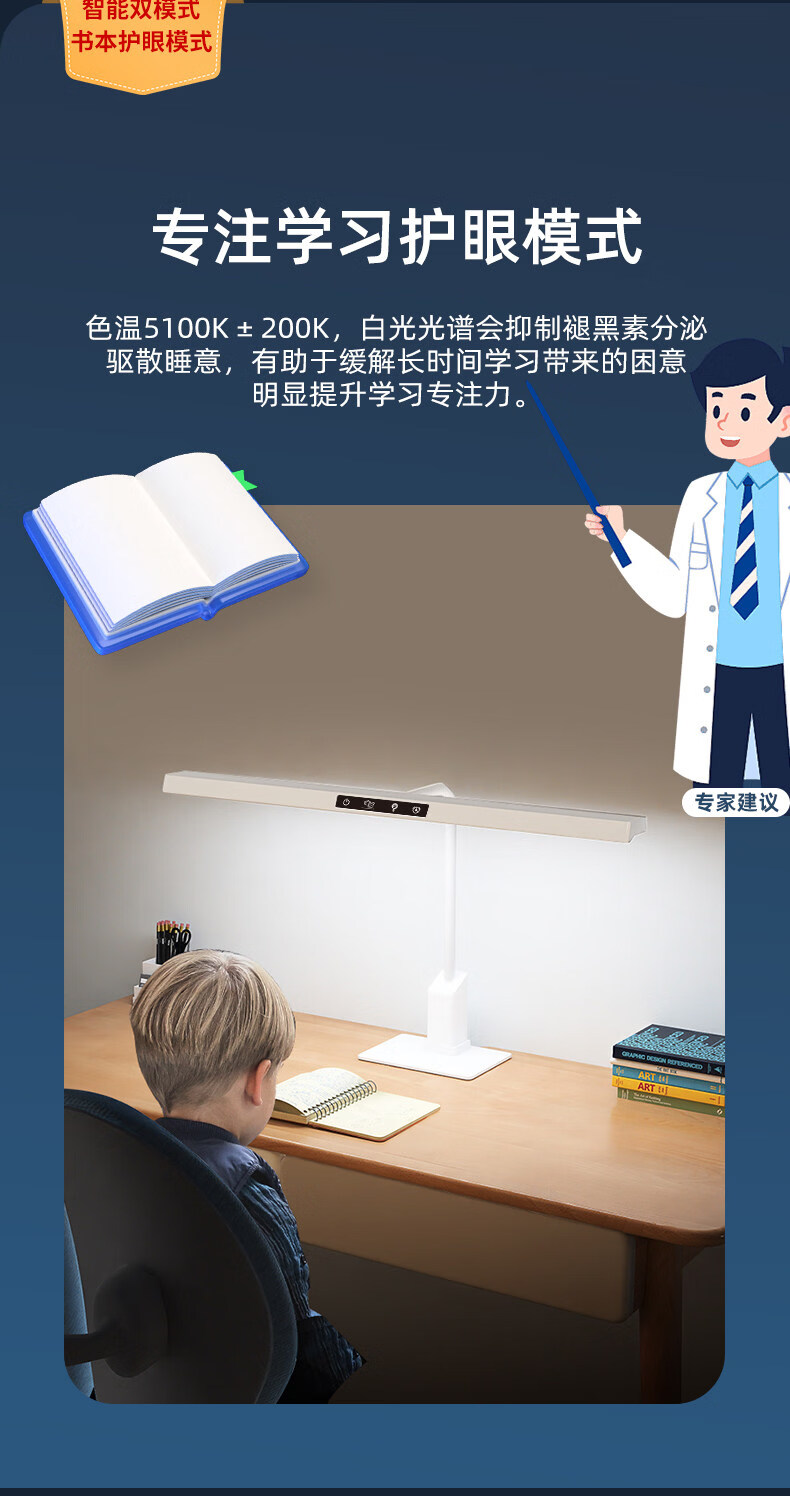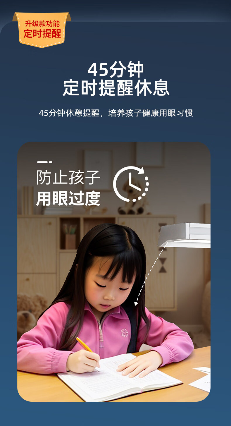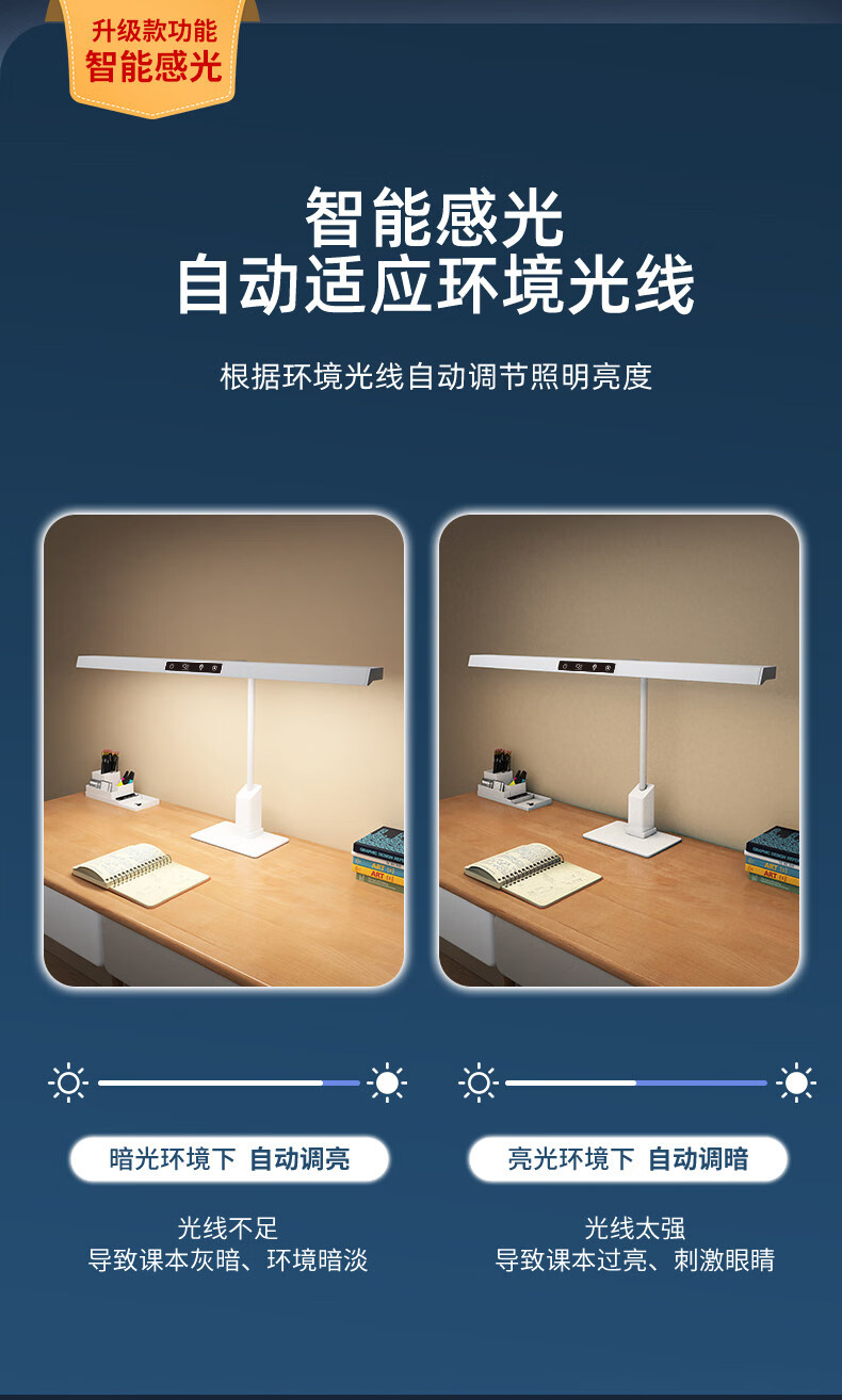 闪凯森防眩目学习专用护眼灯学生儿童卧室阅读台灯智能感光全光谱 防眩目【800mm】双护眼+智能感光+呼吸定时提醒