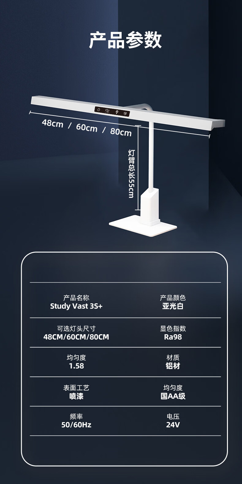 琪朗台式护眼大路灯 桌面立式工作学习灯 儿童家用书桌阅读台灯小夜灯 T4 Plus落地款
