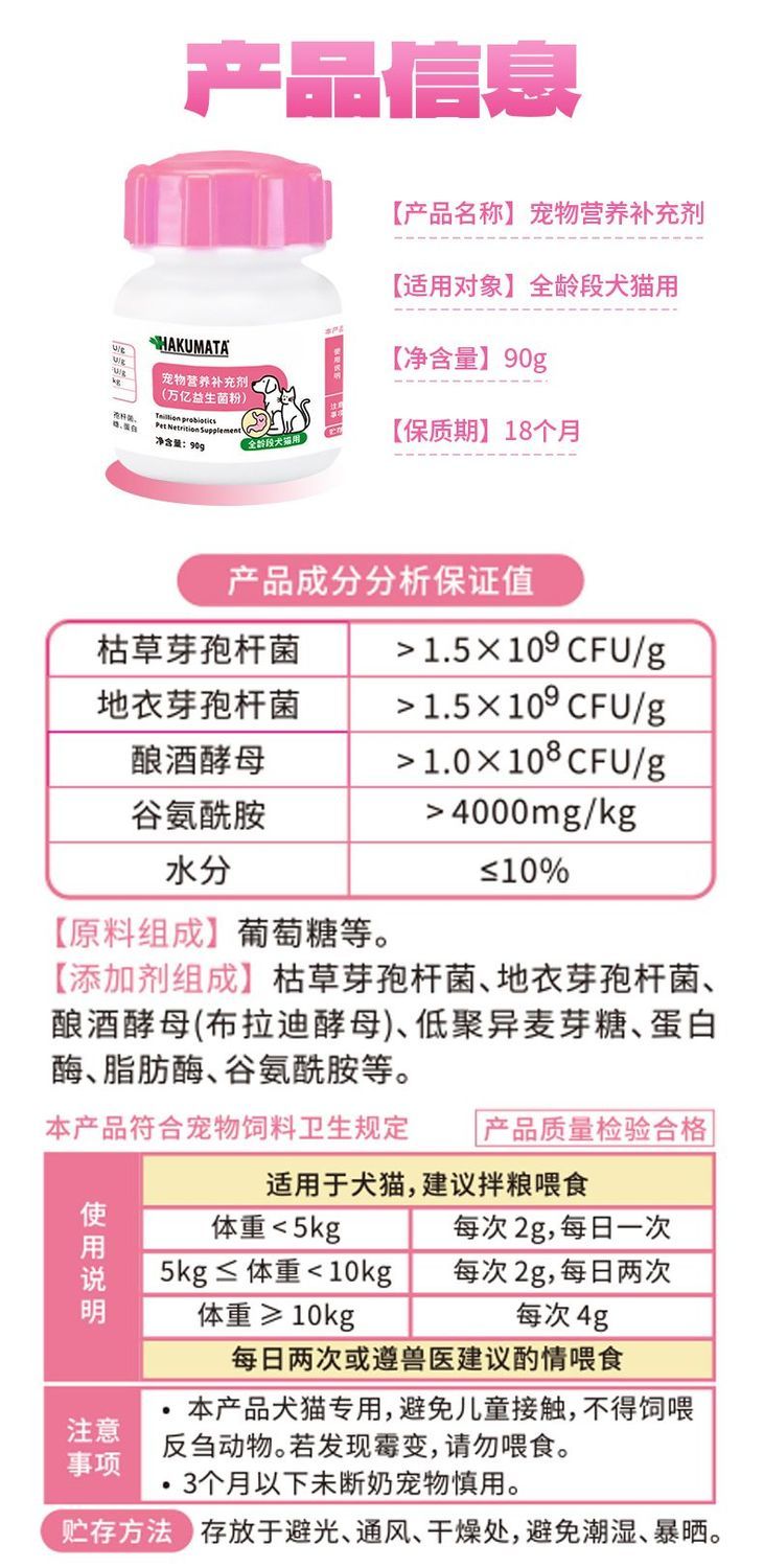 HAKUMATA万亿益生菌猫狗通用肠胃调理平衡消化改善便秘