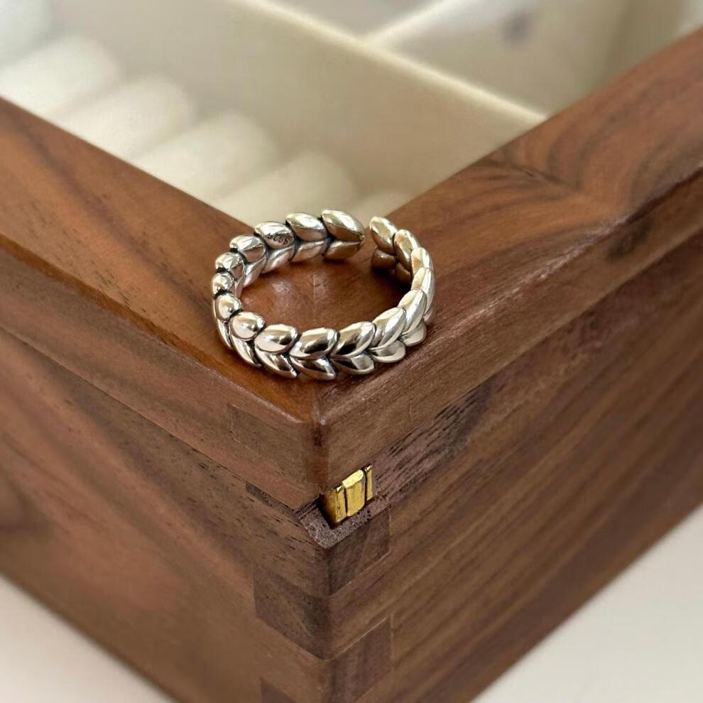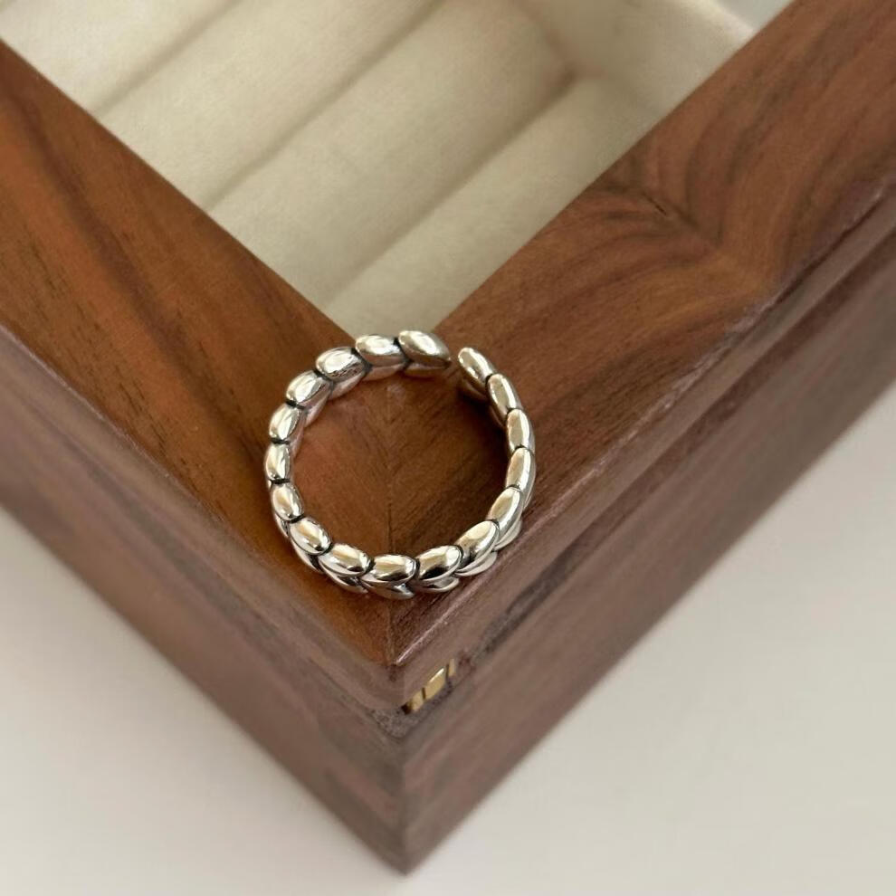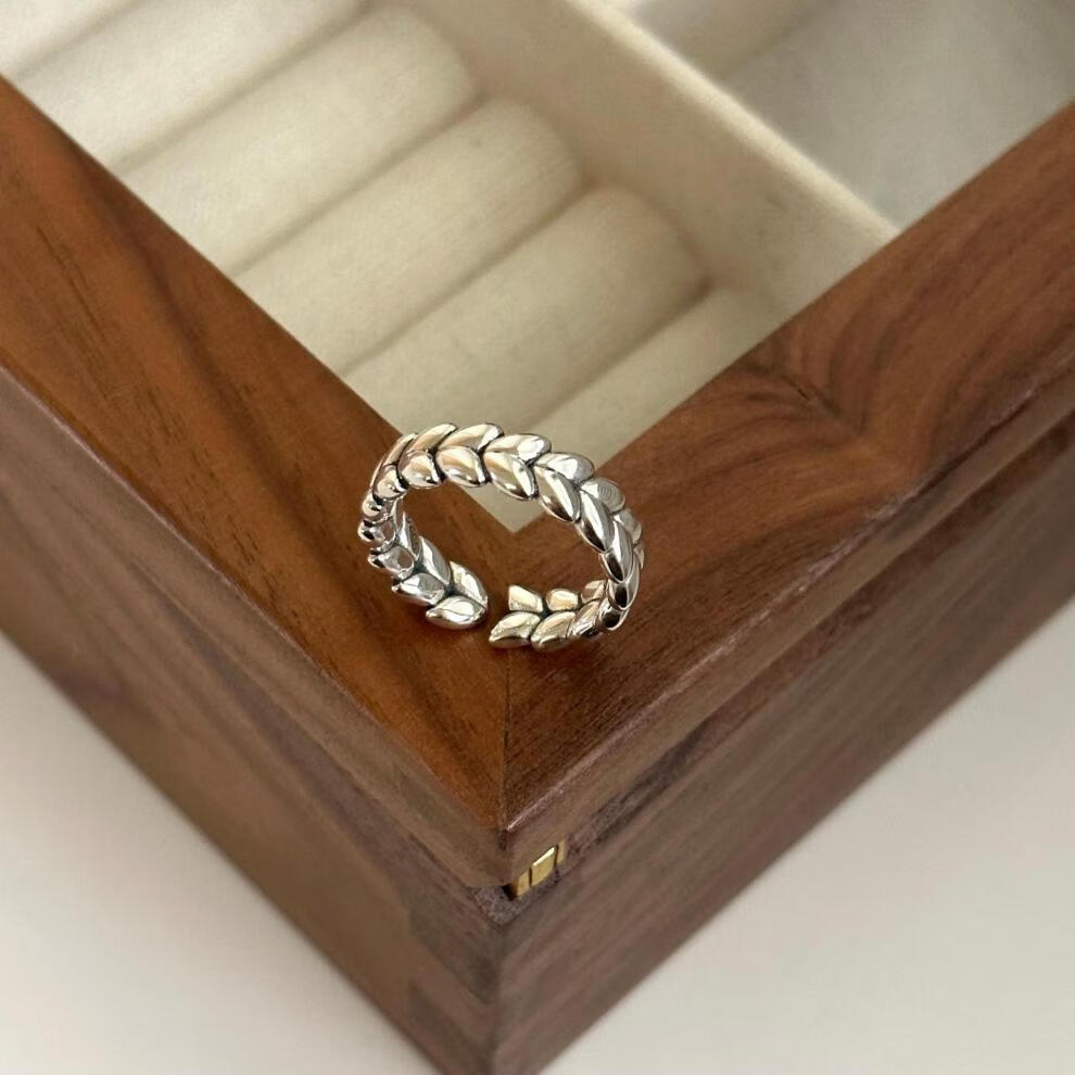 通体S925纯银小众INS风麦穗复古女生简约感气质戒指独特直播 做旧工艺 开口可调节