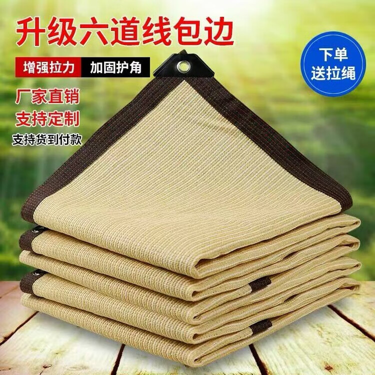 骏天米黄色遮阳网防晒网楼顶隔热阳光房阳台庭院加密加厚植绿植遮阴网 8米宽12米长全新料加厚遮阳率98%