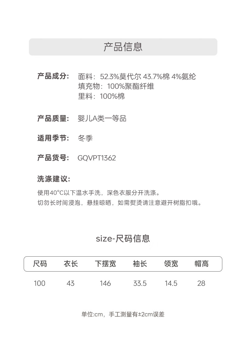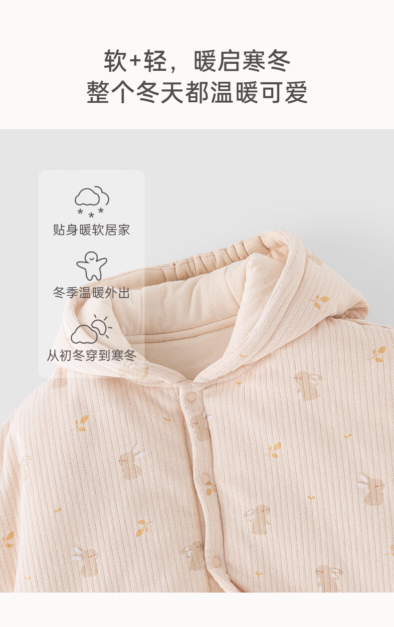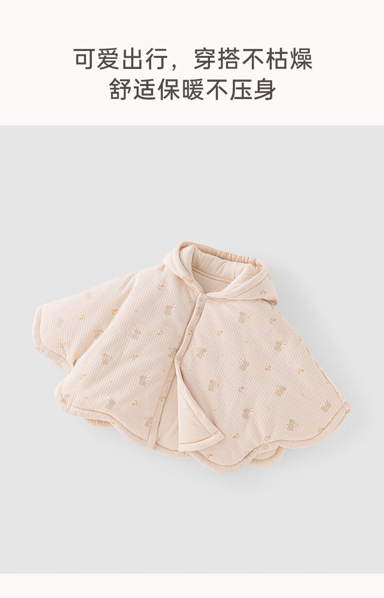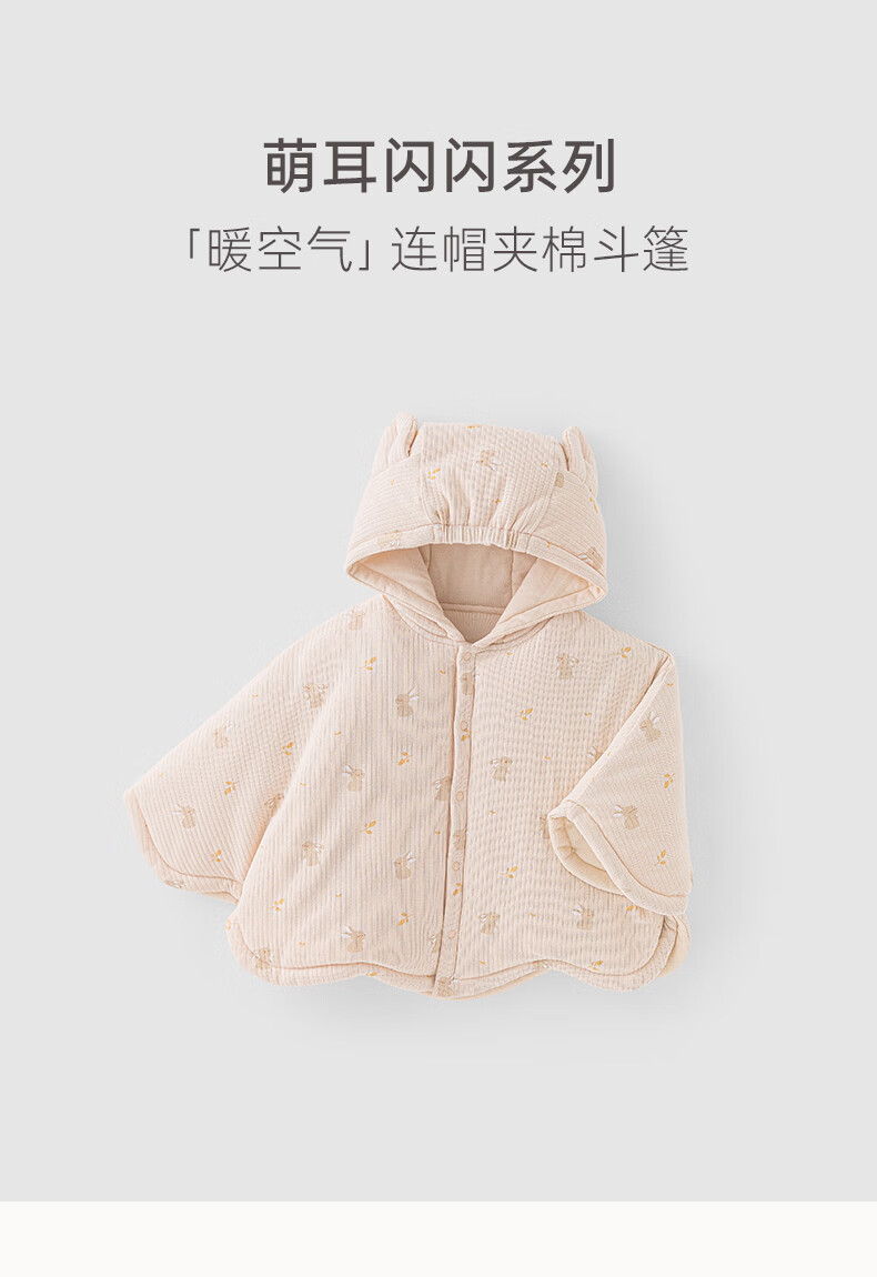 乖奇熊【暖护棉】女童夹棉斗篷秋冬季宝宝加厚抗菌外套婴幼外出保暖披风 藕荷粉萌耳闪闪 100