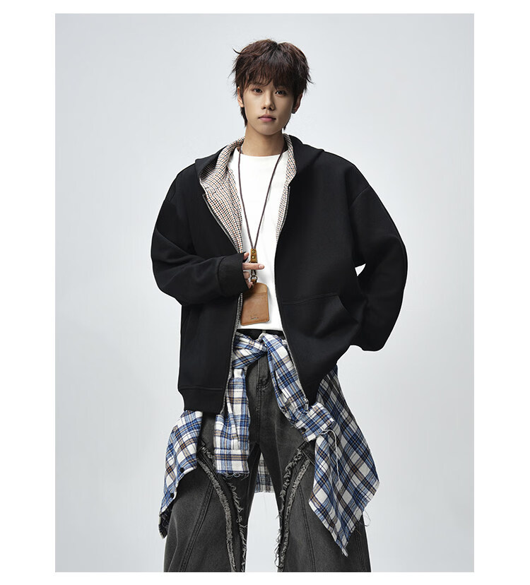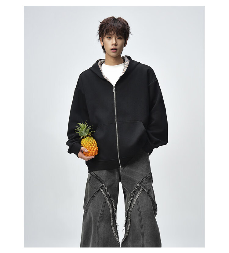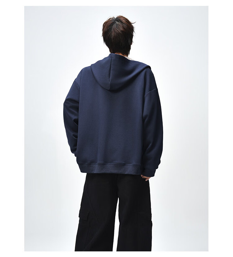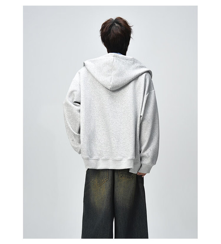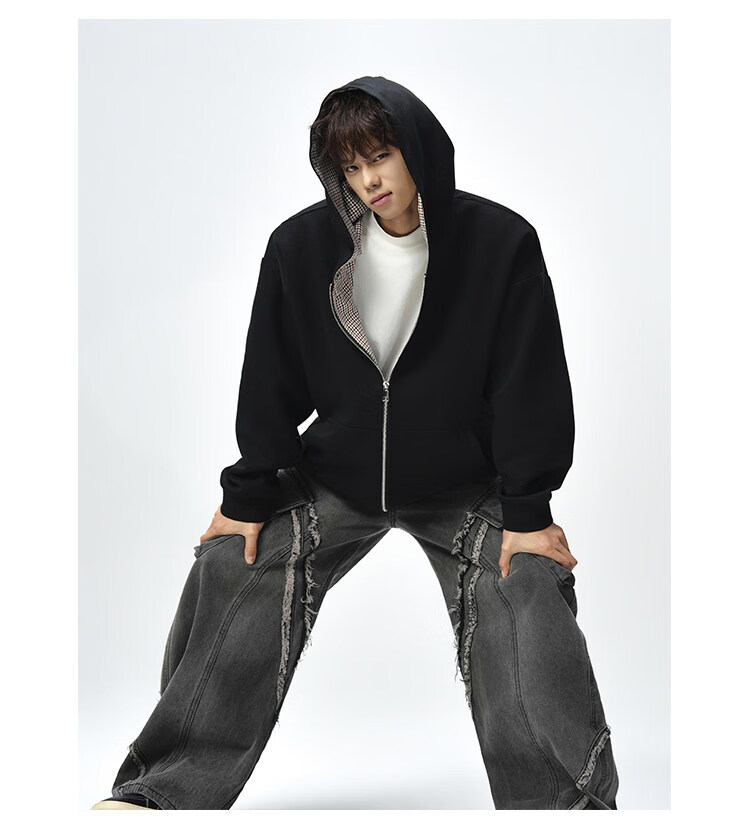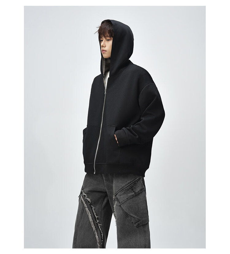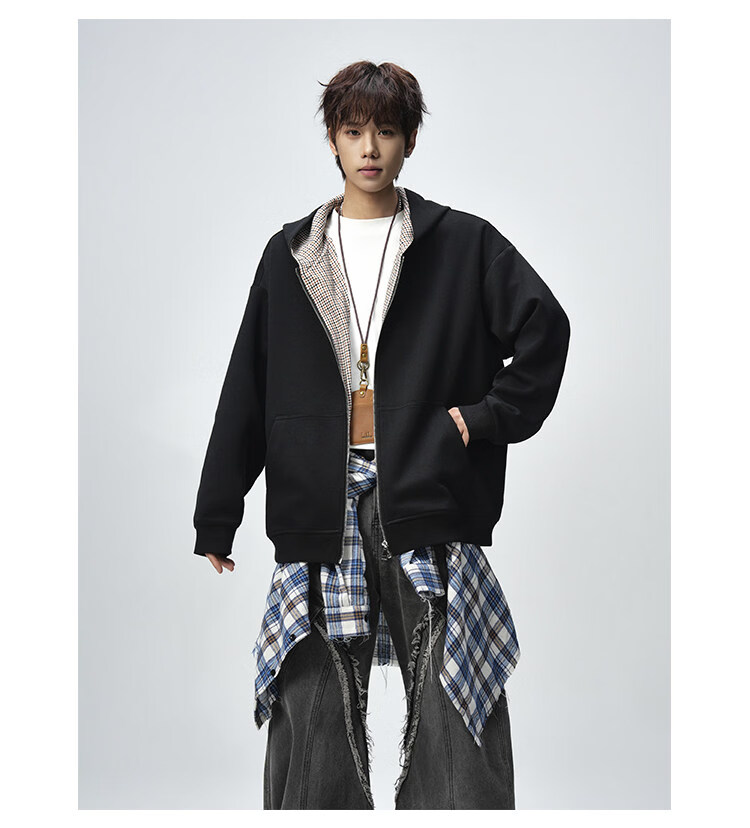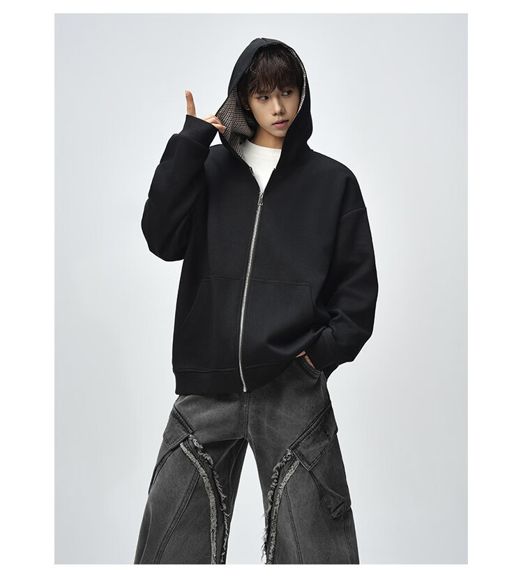 NEW OR MODE美式复古拼接连帽卫衣男春秋潮流重磅宽松休闲百搭情侣开衫外套 黑色【高品质】 M 【建议90-110斤】