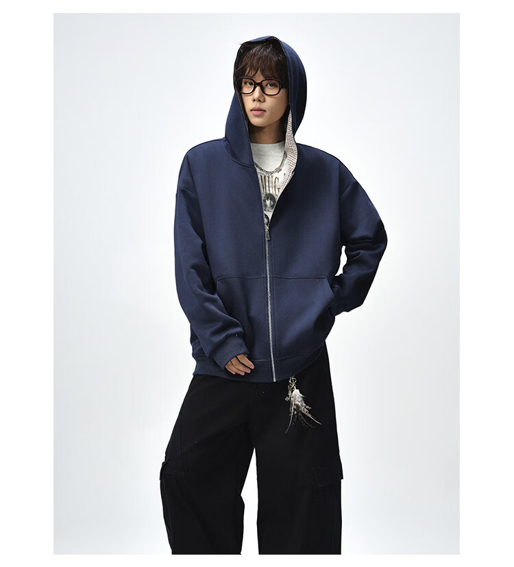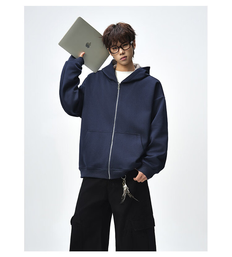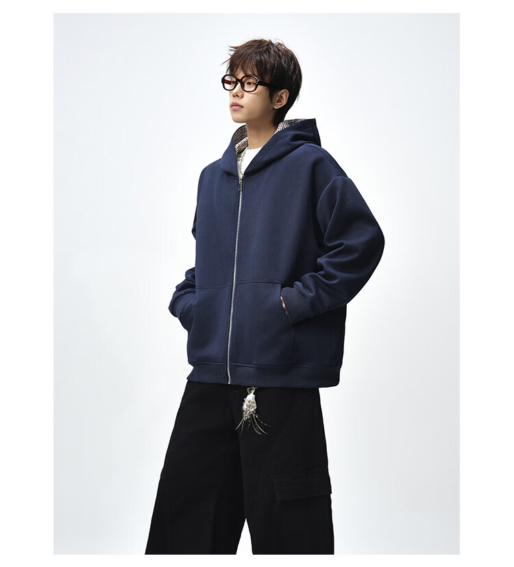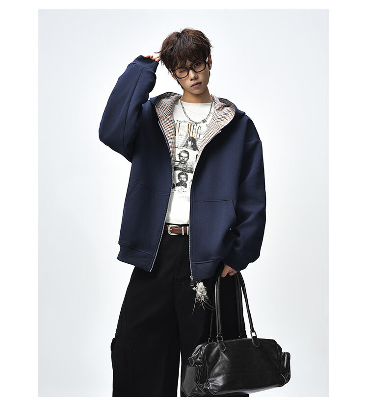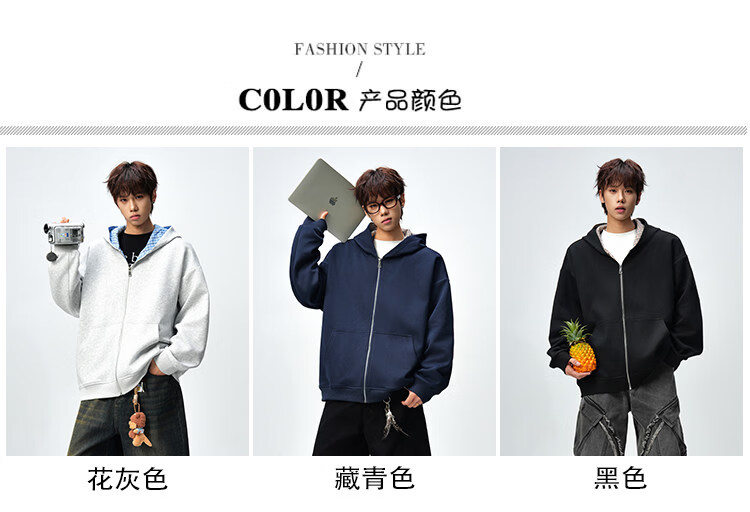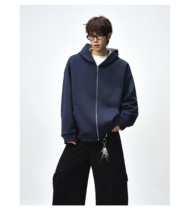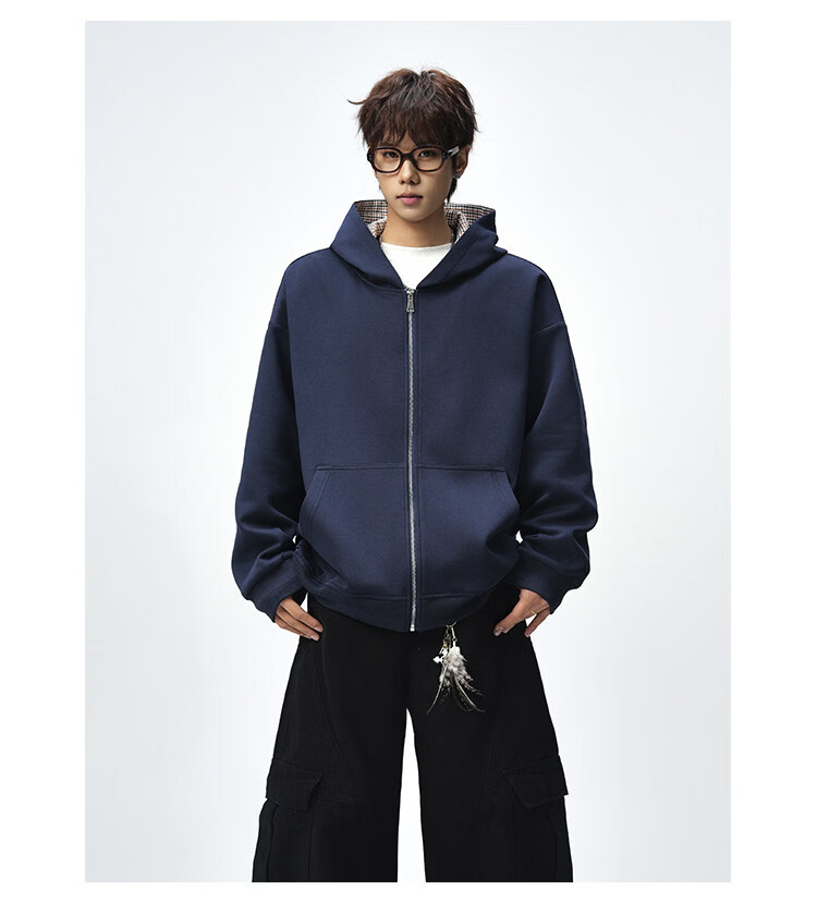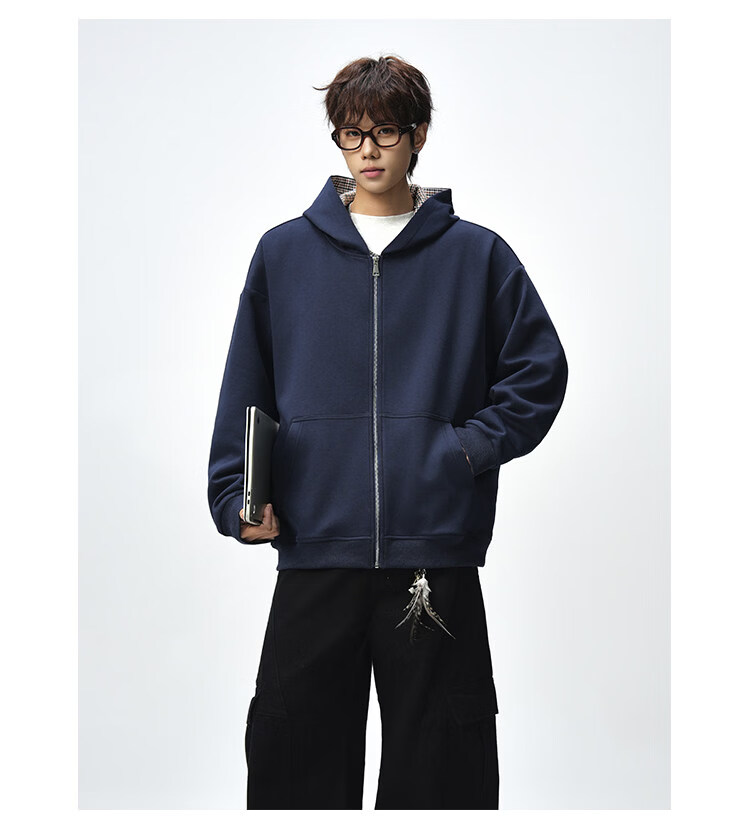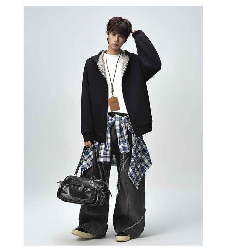 NEW OR MODE美式复古拼接连帽卫衣男春秋潮流重磅宽松休闲百搭情侣开衫外套 黑色【高品质】 M 【建议90-110斤】