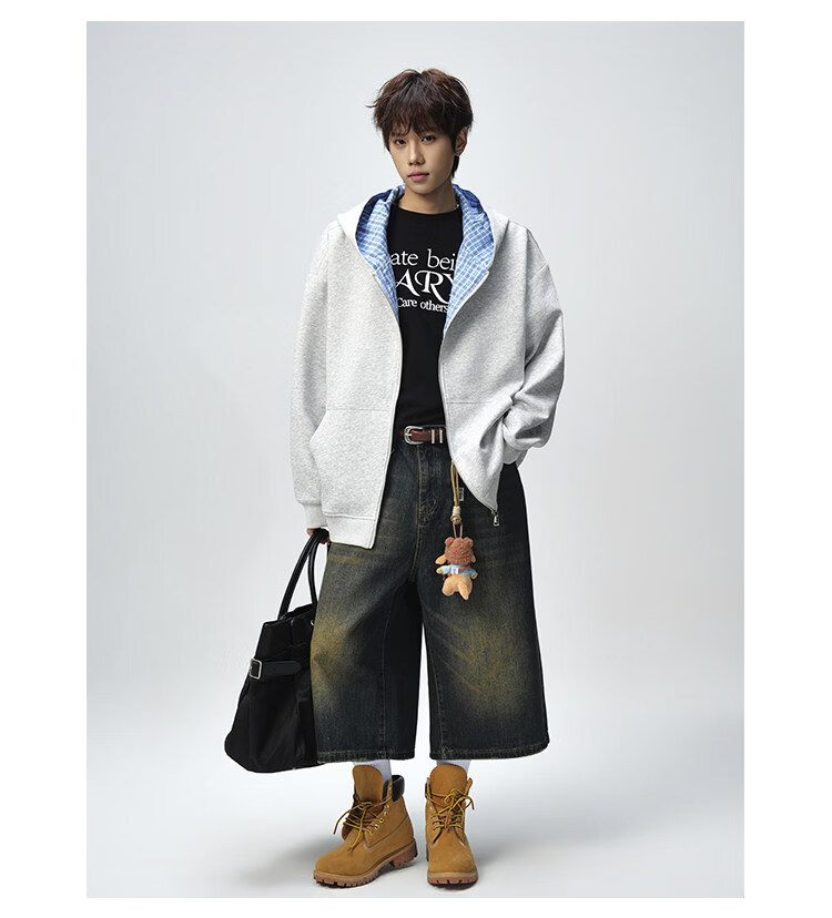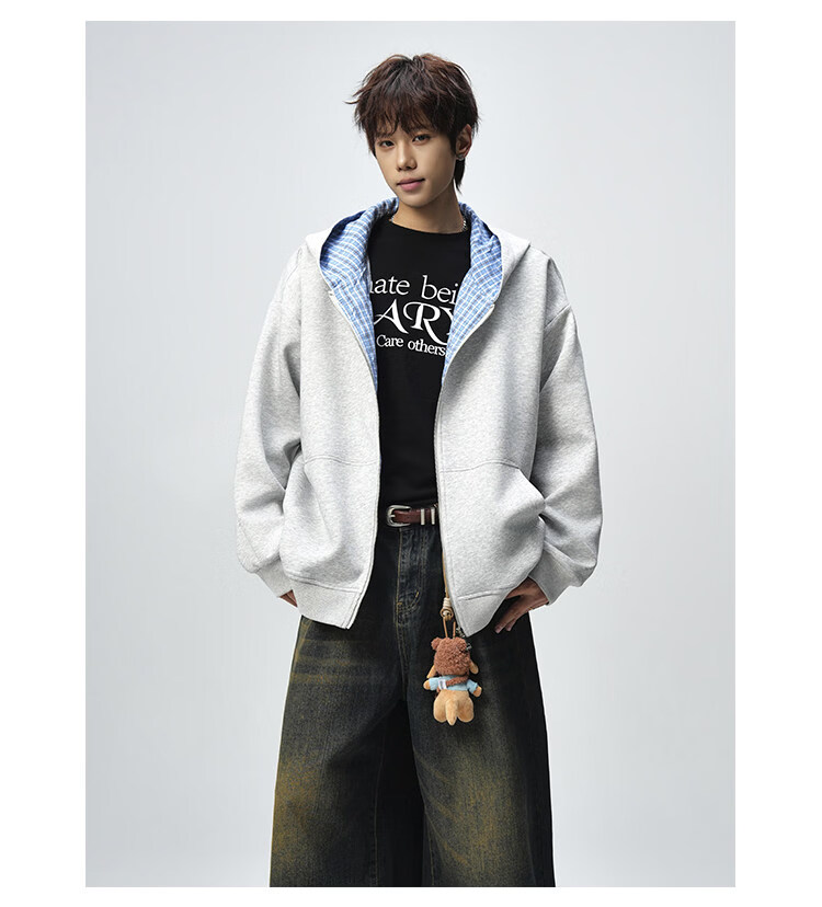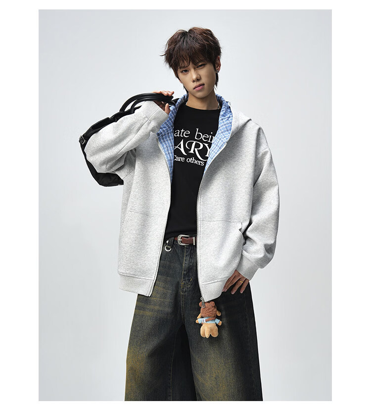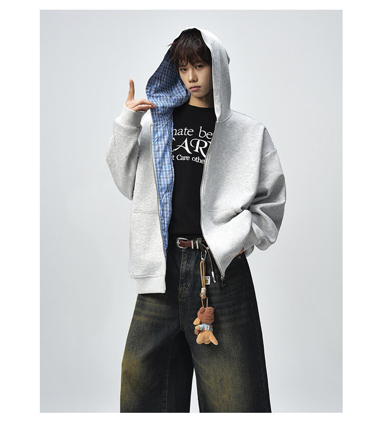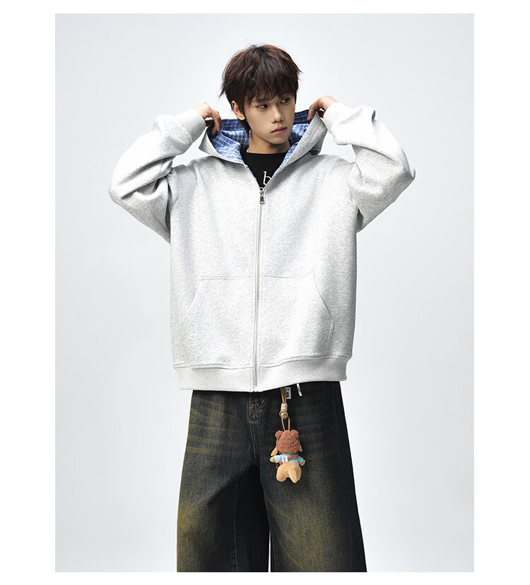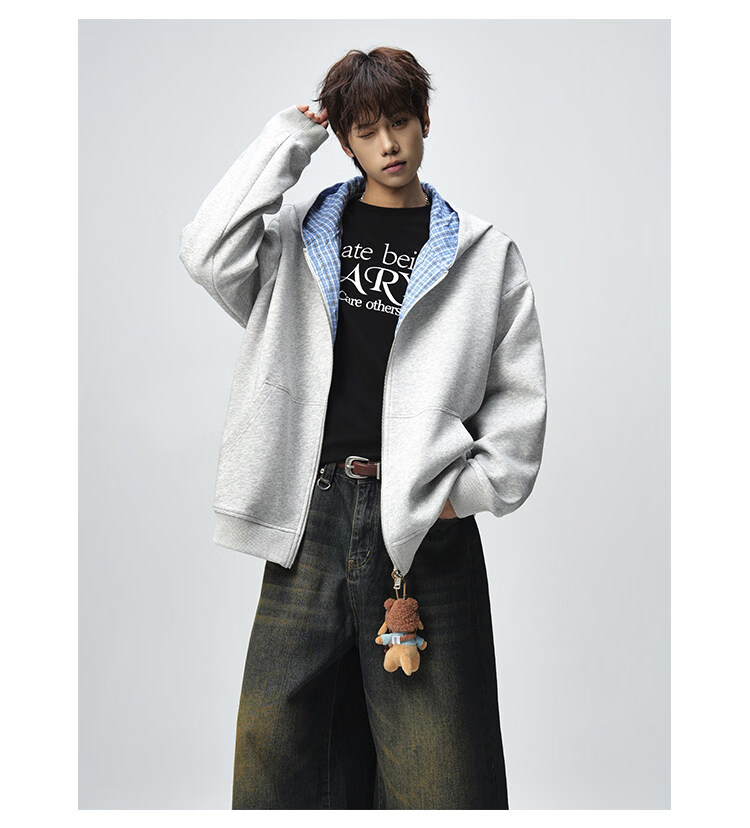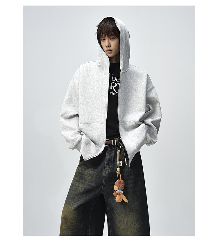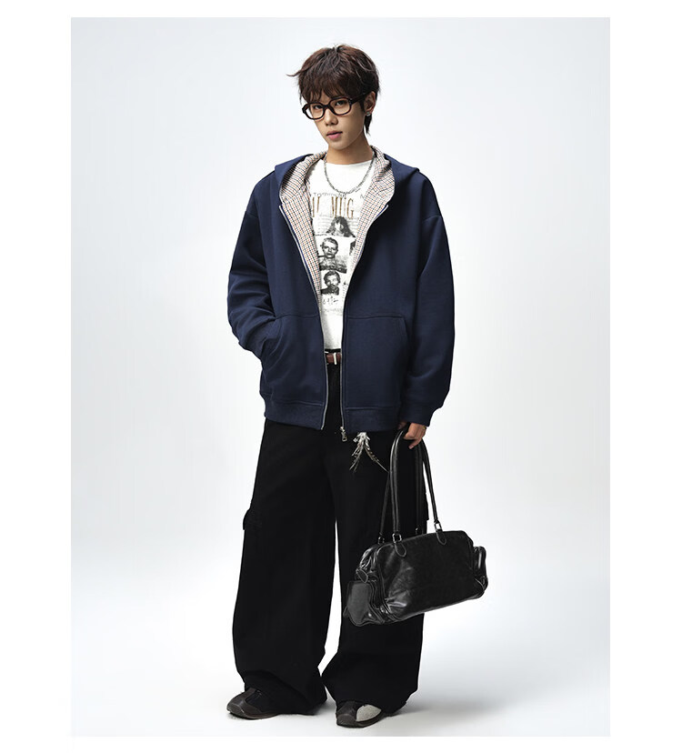 NEW OR MODE美式复古拼接连帽卫衣男春秋潮流重磅宽松休闲百搭情侣开衫外套 黑色【高品质】 M 【建议90-110斤】