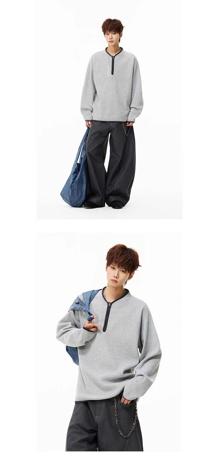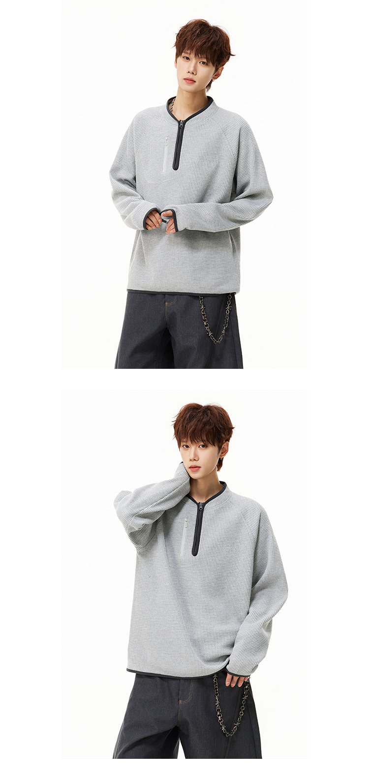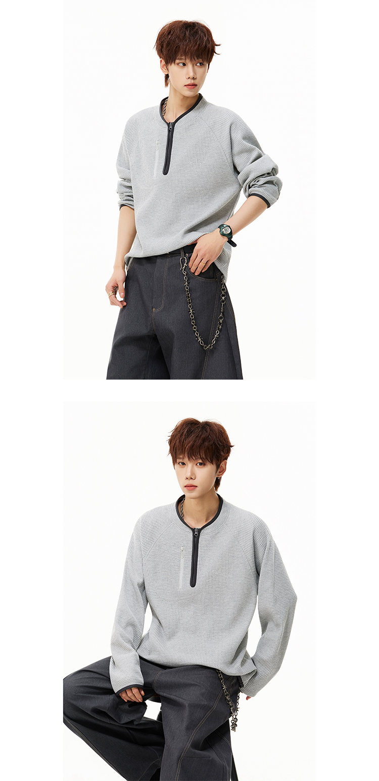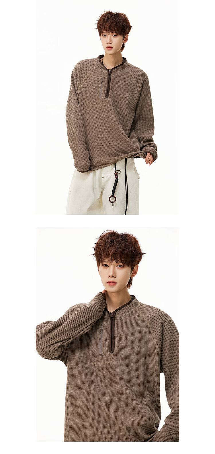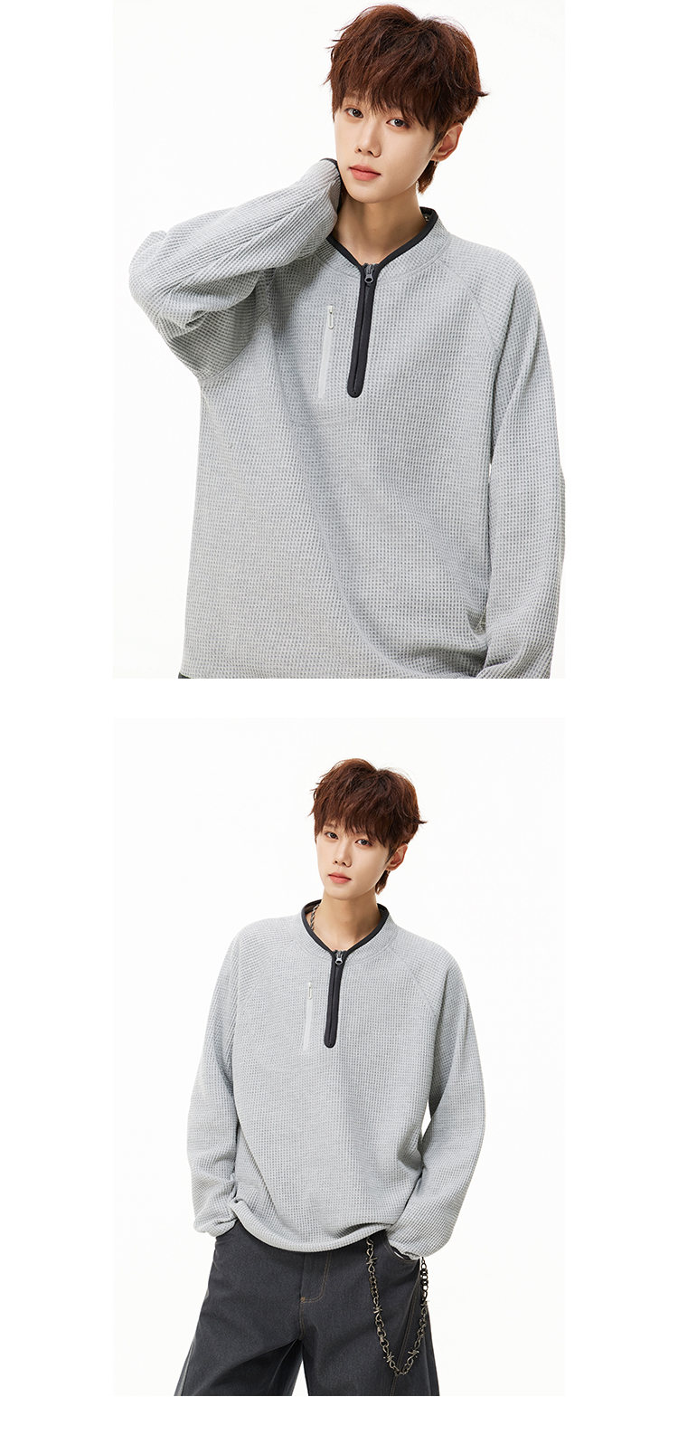 NEW OR MODE华夫格半拉链长袖t恤男士春夏季宽松休闲机能运动情侣上衣打底衫 灰色【高品质】 M 【建议90-110斤】