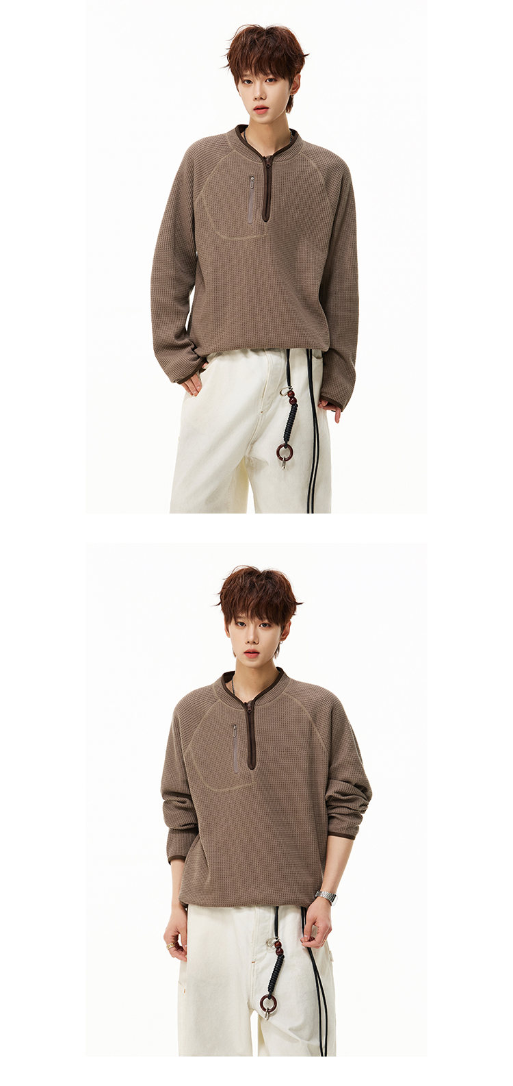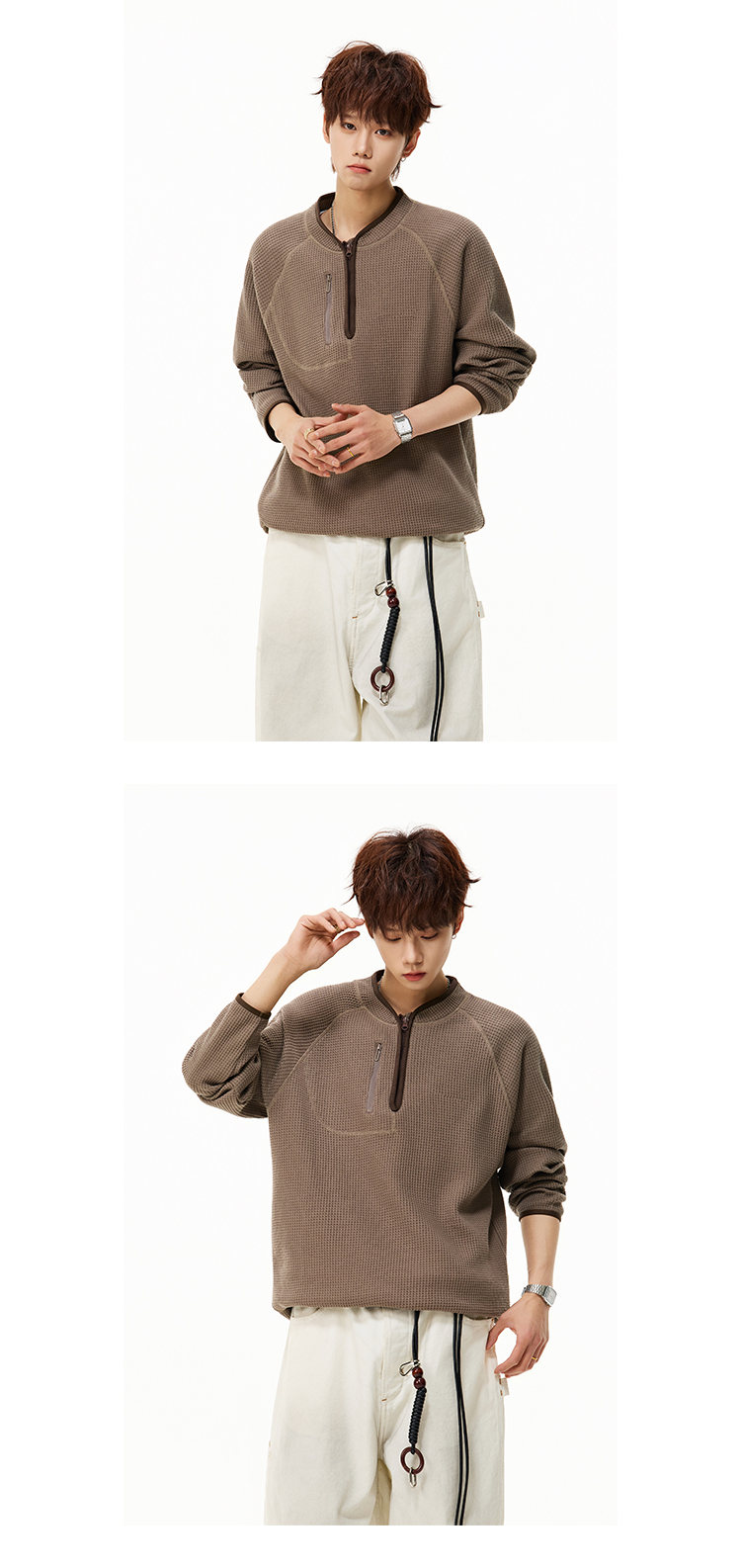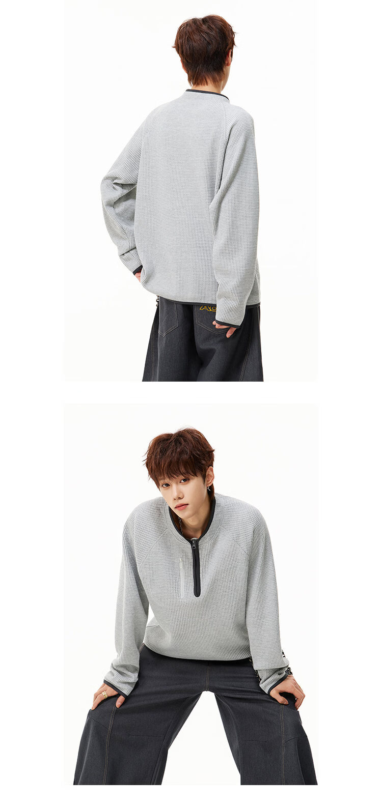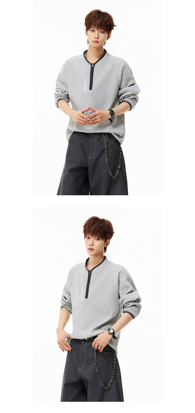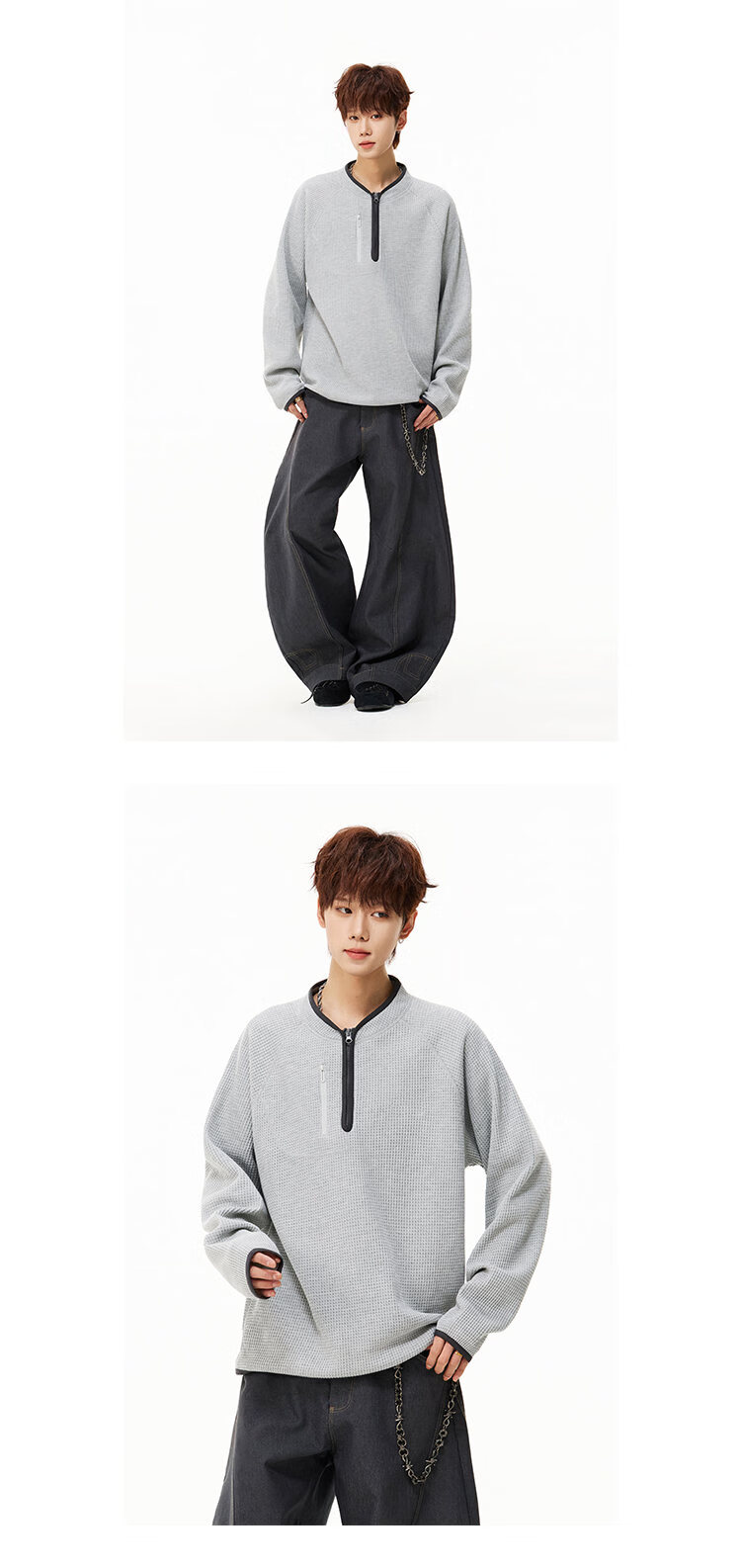 NEW OR MODE华夫格半拉链长袖t恤男士春夏季宽松休闲机能运动情侣上衣打底衫 灰色【高品质】 M 【建议90-110斤】