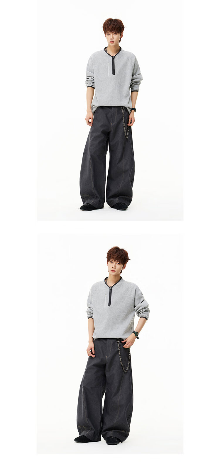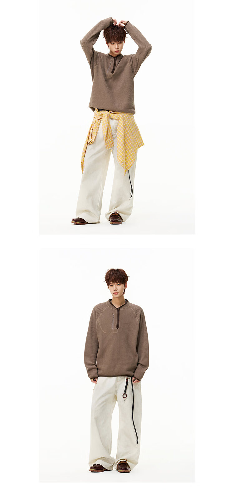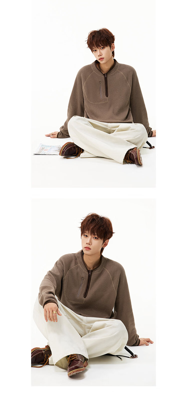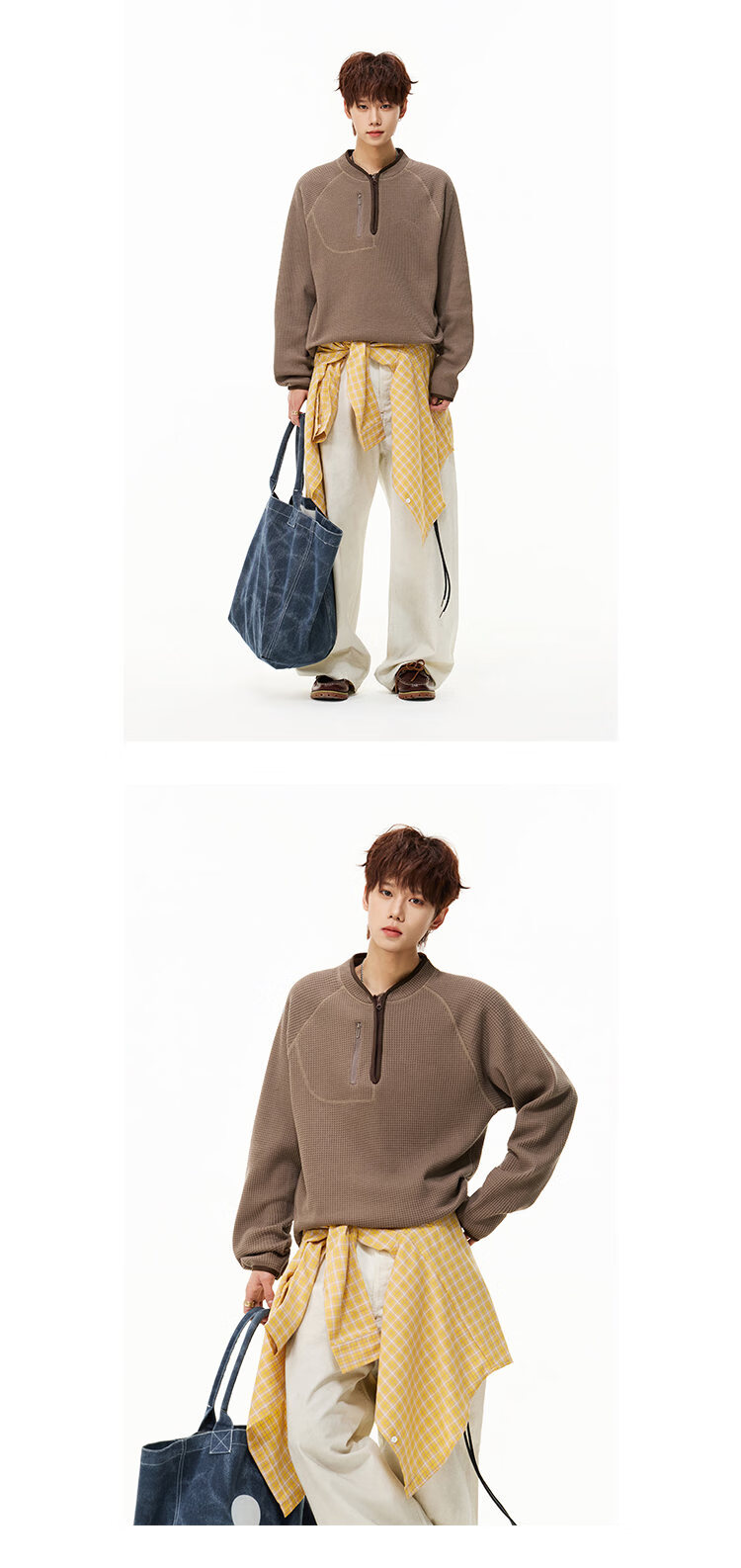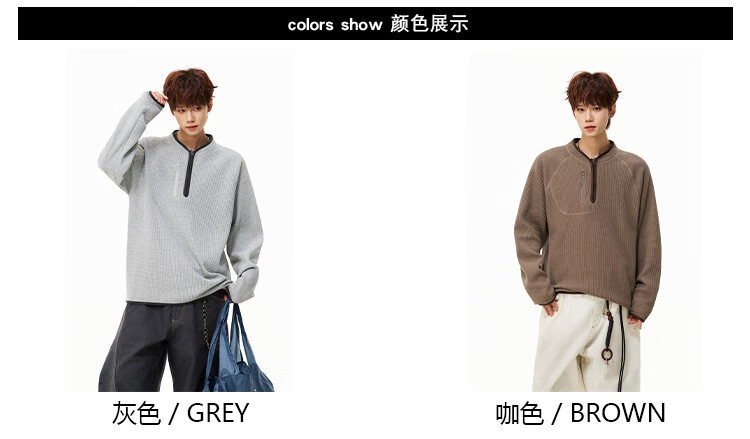 NEW OR MODE华夫格半拉链长袖t恤男士春夏季宽松休闲机能运动情侣上衣打底衫 灰色【高品质】 M 【建议90-110斤】