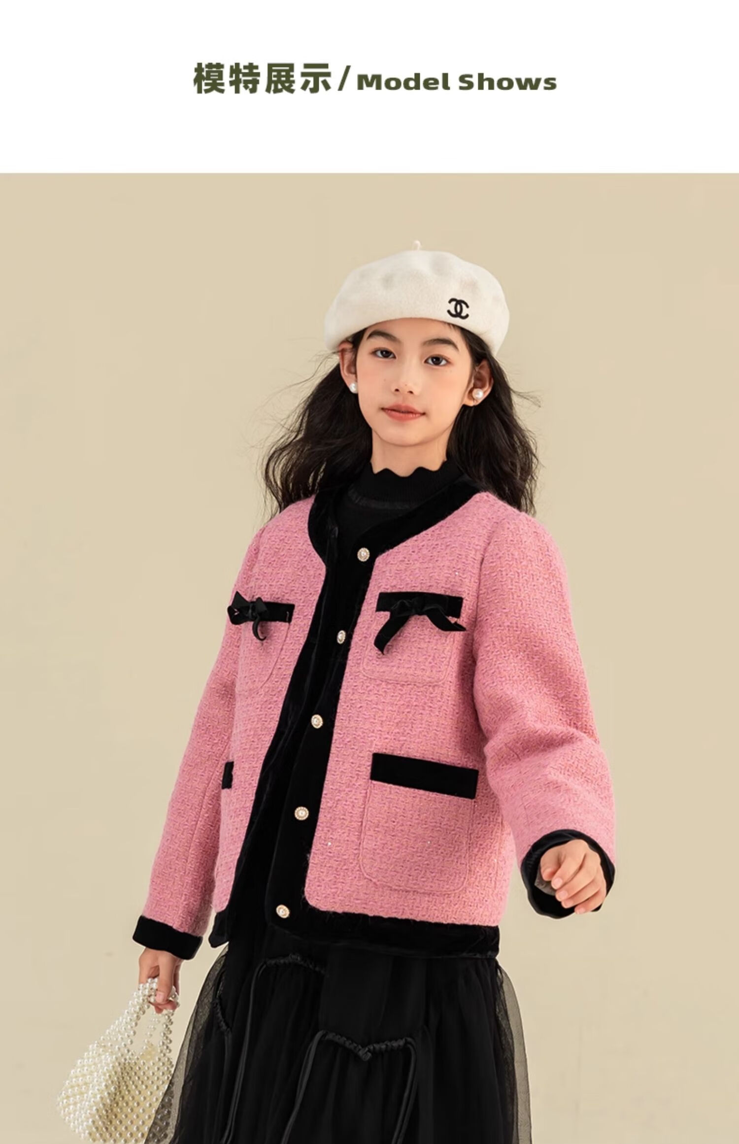 栀了成长记童装女童小香风套装2025冬季儿童蝴蝶结亮片夹棉两件套 粉色 套装 100 cm
