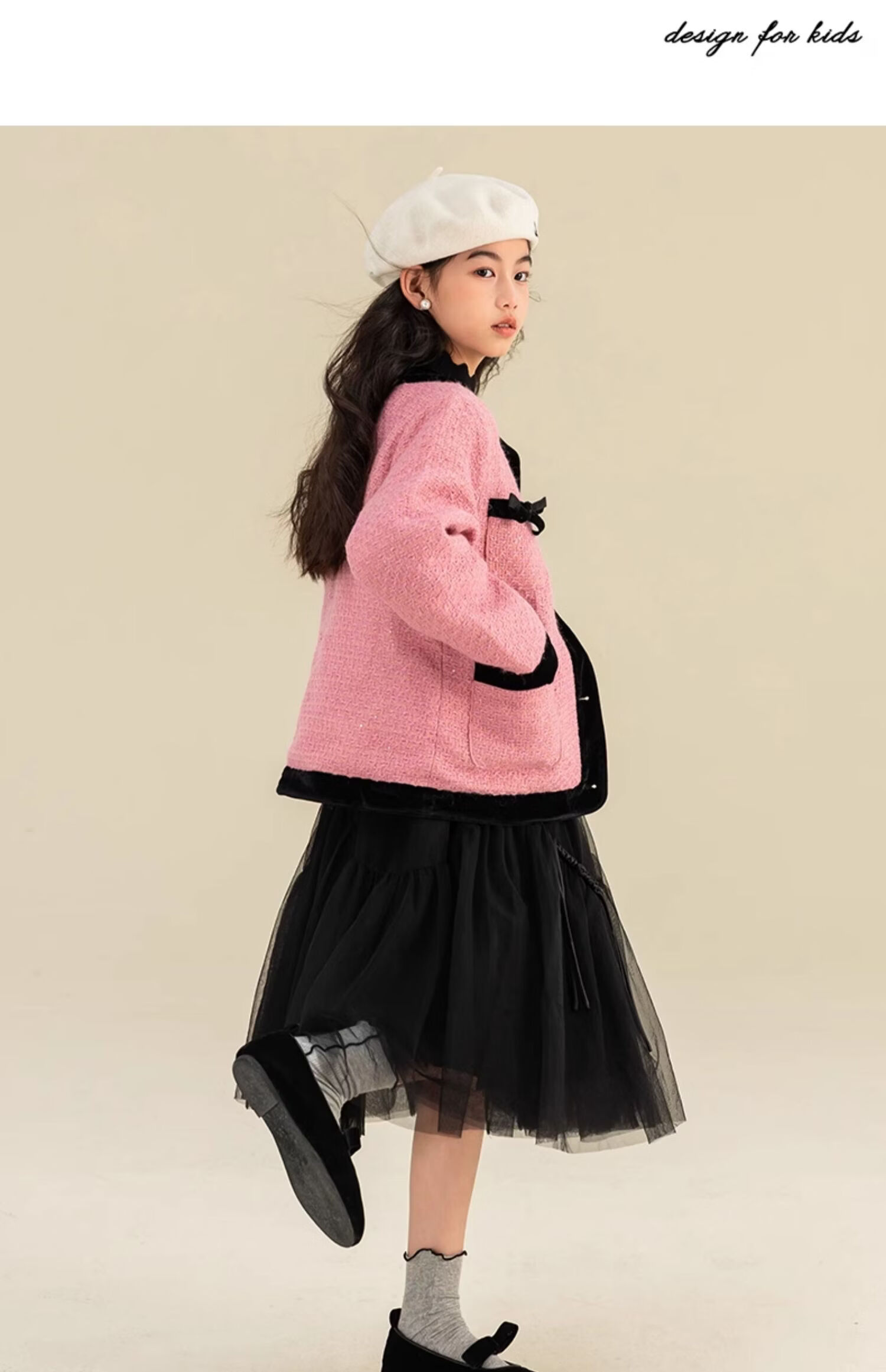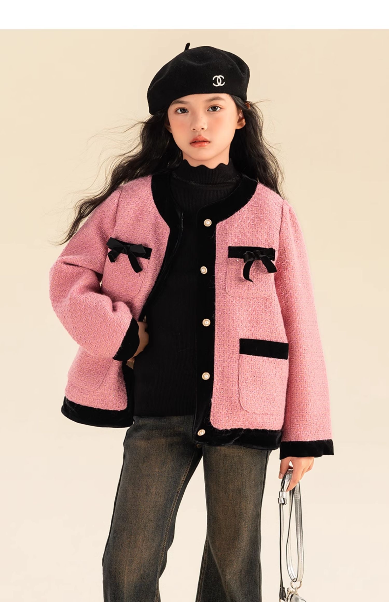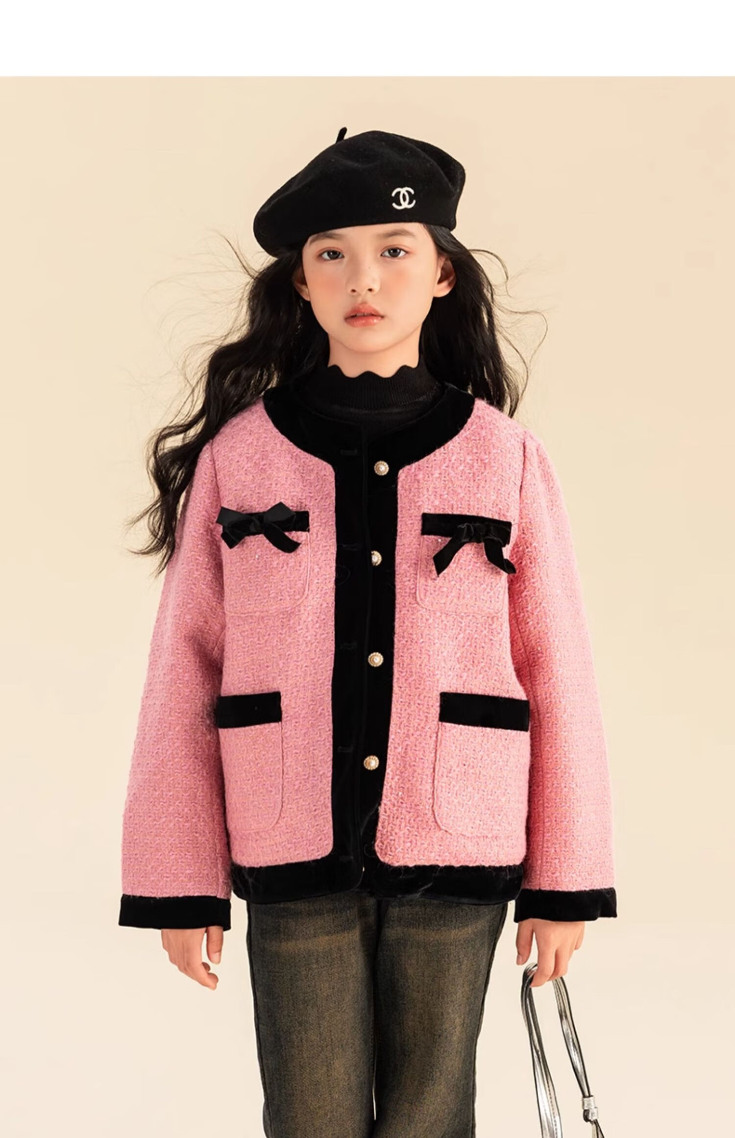栀了成长记童装女童小香风套装2025冬季儿童蝴蝶结亮片夹棉两件套 粉色 套装 110 cm