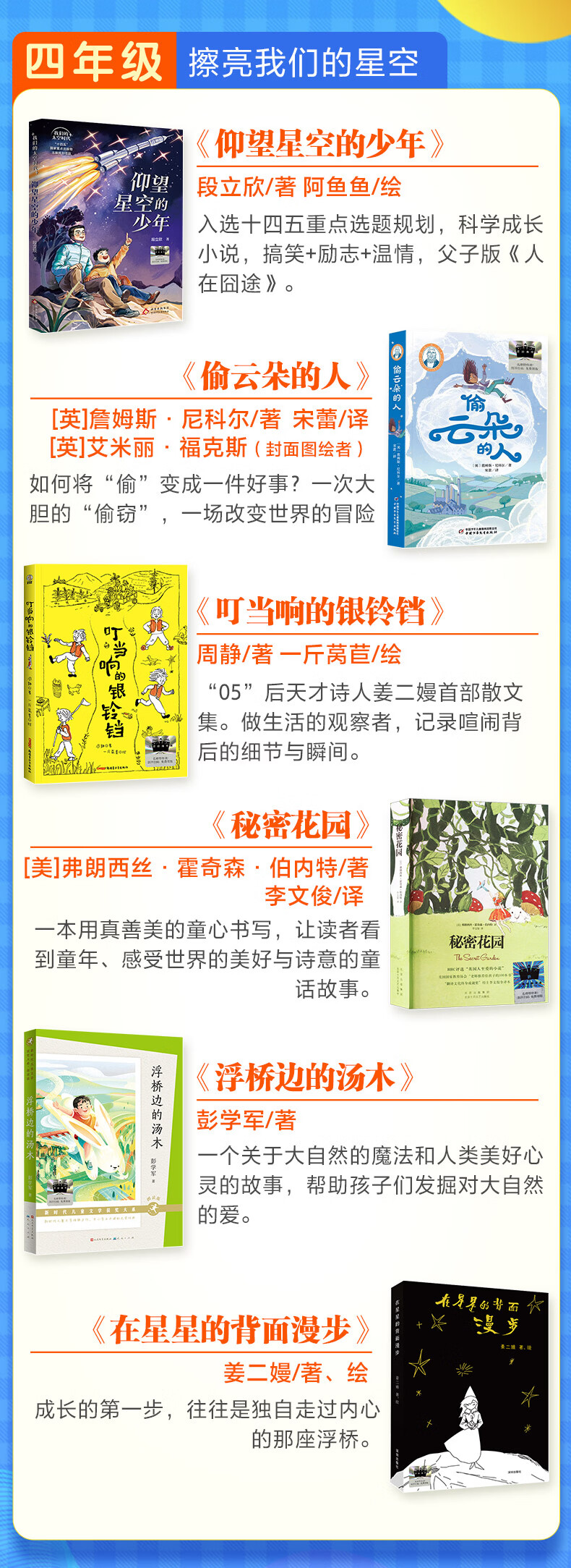 【书目任选】2026年祖庆说百班千人四年级 三升四 全国小学生寒暑假阅读课外书 百班千人书目 仰望星空的少年偷云朵的人叮当响的银铃铛秘密花园浮桥边的汤木在星星的背面漫步 【26年寒假】仰望星空的少年