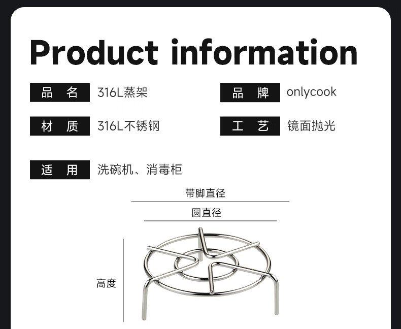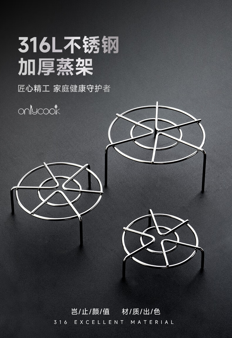 onlycook316不锈钢家用馒头菜蒸格篦子电饭煲隔水蒸片-316蒸架高脚16cm
