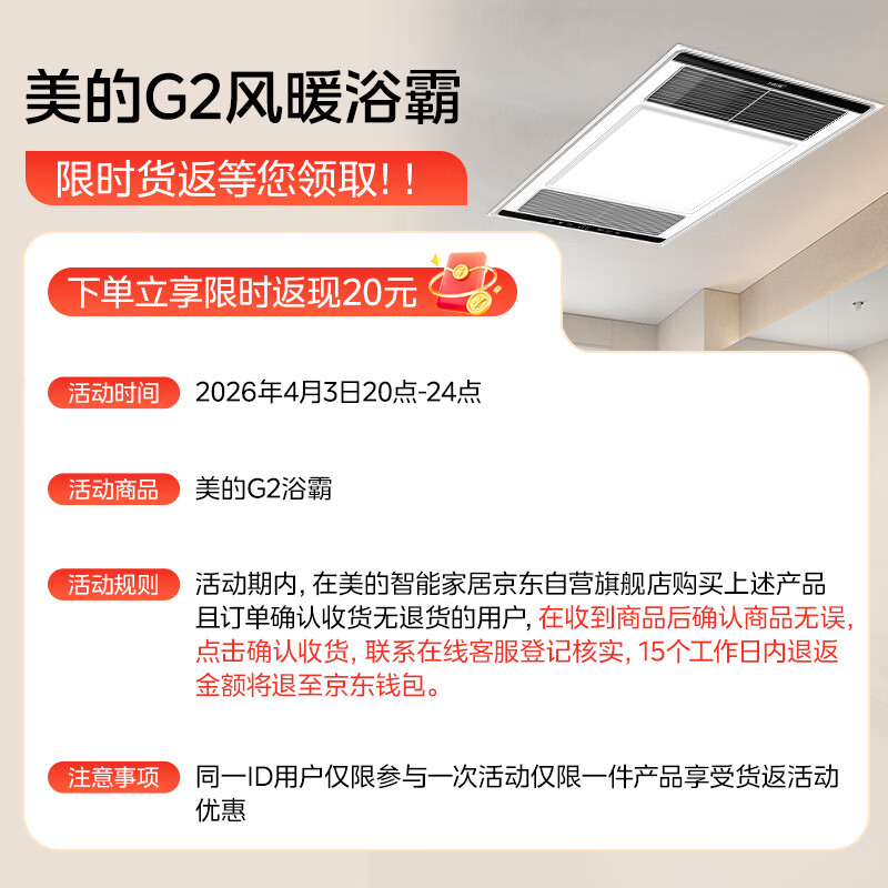 美的(Midea)风暖浴霸钢铁侠系列暖风照明排气一体换气暖风机G2