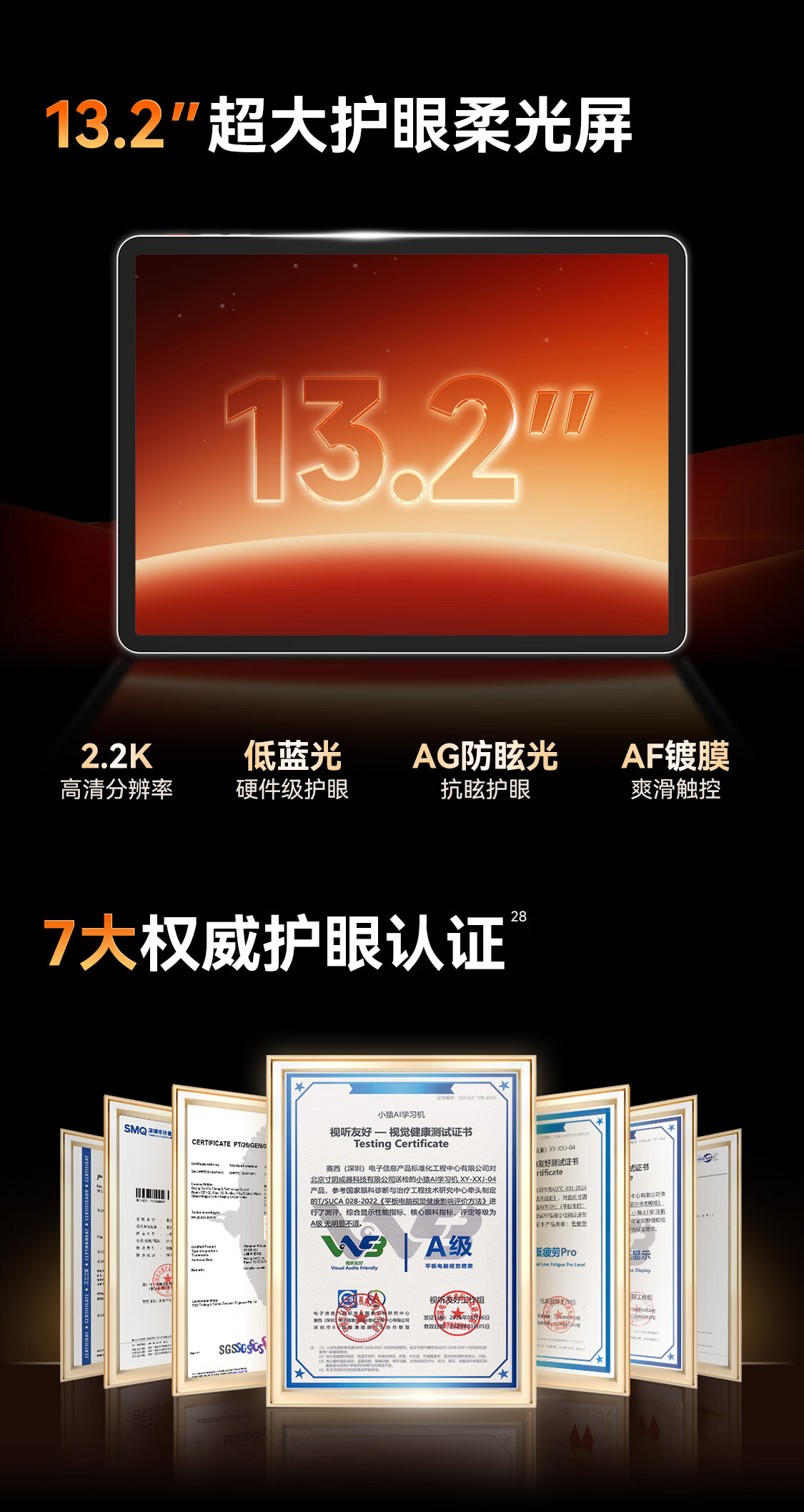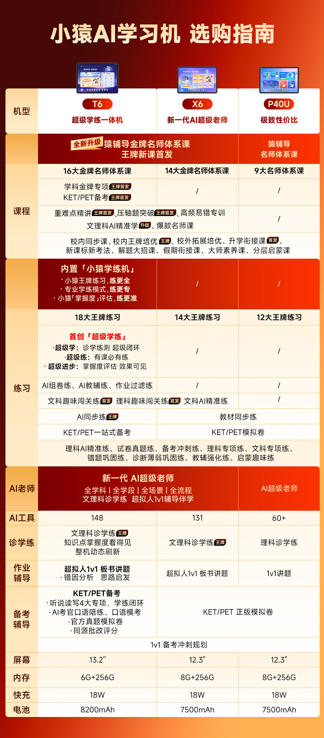 小猿AI学习机T6【重磅新品】超级学练一体机 学练机猿辅导体系课 学生学习平板电脑13.2英寸 8+256G